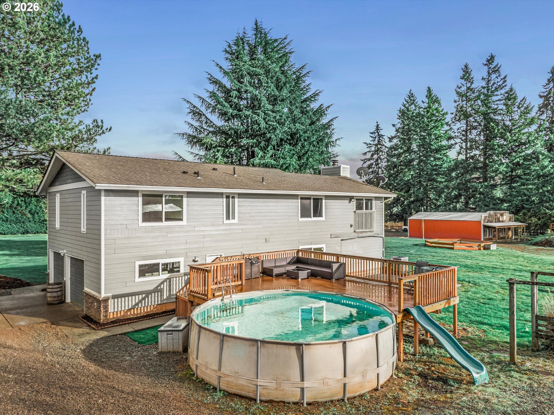 OPEN HOUSE SATURDAY 3/14 from 11:00am - 1:00pm!!! Rare opportunity to own a beautifully maintained acreage property in Oregon City offering space, versatility, and incredible lifestyle amenities. Situated on 2.37 flat usable acres, this 2,327 sq ft split-level home features 4 bedrooms and 3 full bathrooms and has been meticulously cared for. The property includes multiple outbuildings, including a large shop, barn, and a fully equipped detached ADU (non-conforming) perfect for multigenerational living, guest quarters, or private workspace. The ADU features two bedrooms, 2 bathrooms, and a stunning custom kitchen with stainless steel appliances, creating a comfortable and stylish independent living space. Outdoor living shines here with a brand new deck, expansive open land, and plenty of room for animals, hobbies, or recreation. Enjoy the spacious yard, sledding and/or slip n' slide hill, in-ground trampoline, built-in Gaga ball pit, creating the perfect setting for year-round fun and unforgettable memories. The home itself is in impeccable condition, offering a rare combination of privacy, usability, and flexibility while still being conveniently located near all that Oregon City has to offer. Properties like this — flat acreage with multiple structures and move-in ready condition — rarely come available.
