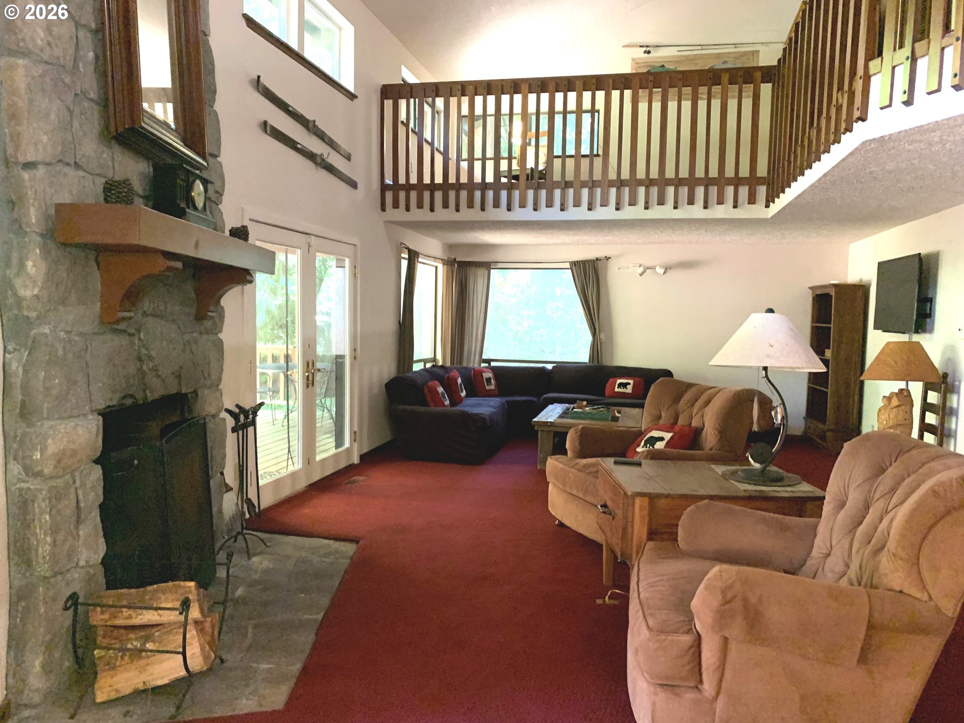 Discover a rare gem mountain retreat lifestyle in this beautiful 2.12 level acre setting along the Sandy River. The light-filled open floor plan with vaulted ceilings is anchored by a magnificent rock fireplace, creating an inviting ambiance perfect for gatherings. Newly remodeled down to studs kitchen with quartz countertop, new cabinetry, and stainless steel appliances. A spacious wraparound deck offers abundant room for outdoor living and soaking up the sun, an ideal space for entertaining or simply unwinding while watching the river and sounds of nature. This desirable location offers the best of both worlds: a peaceful, natural setting with quick access to golf, skiing, shopping, and dining. The Owner/LLC Member is a Trust, the Trustee is a licensed Oregon Principal Broker, the Listing Broker of this property, & the Owner of the Listing Brokerage. Property is 2 seperate Lots that total 2.12 acres: Tax ID #00739838 = 0.87 acres (38,178 sqft) & #01684261 = 1.25 acres (54,482 sqft).