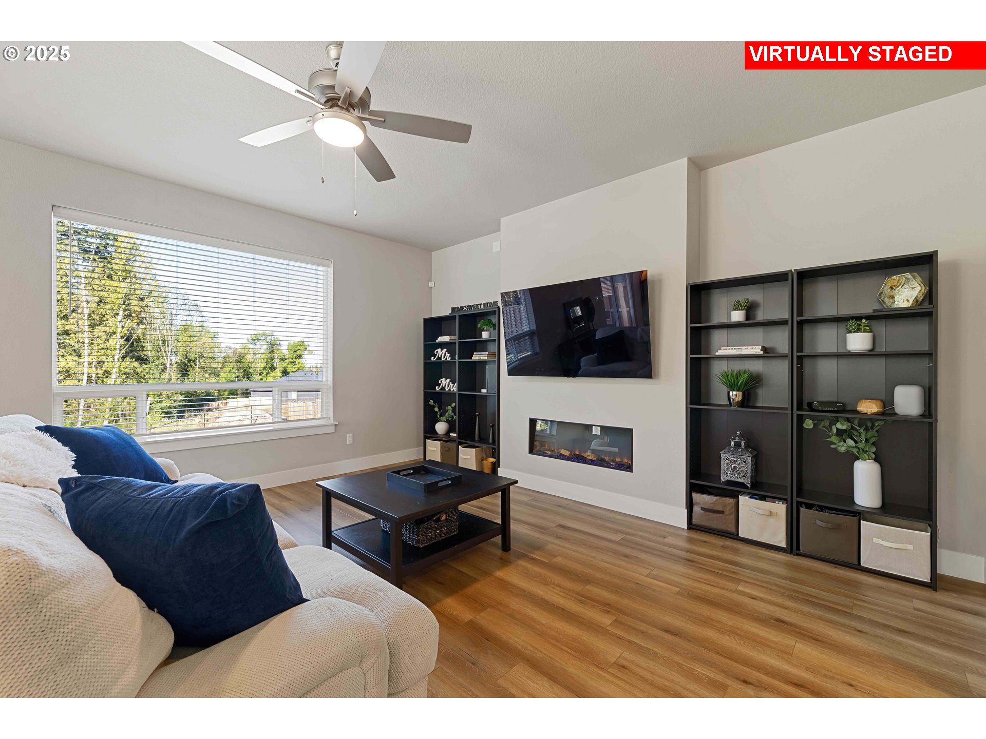 Welcome home to this inviting 4-bedroom, 2.5-bath on a large corner lot. Completed in 2024, the open and bright floor plan is designed for effortless living, with a spacious great room featuring a cozy fireplace and durable laminate flooring that flows into the dining area and kitchen. The kitchen is a fantastic space for cooking and gathering with stainless steel appliances, a large island, slab countertops, and a convenient pantry. Retreat to the vaulted primary suite, a peaceful haven with a walk-in closet and a stylish ensuite with double vanity for a serene start to your day. You'll love watching beautiful sunsets from your covered patio, which overlooks a fully fenced backyard that backs to a serene greenspace. With no home across the street, you'll love the sense of privacy this location offers. The extra deep driveway and 2-car garage provide ample room for parking and storage. This home is also tech-ready, with whole-home ethernet wiring and a centralized hub to keep you connected. With no HOA, you have the freedom to truly make this home your own. Located in Estacada, you're just a short drive from a wide variety of outdoor adventures, from skiing and hiking to fishing and camping. Plus, with the home still under warranty, you'll have extra peace of mind. Come and discover all that Estacada has to offer!