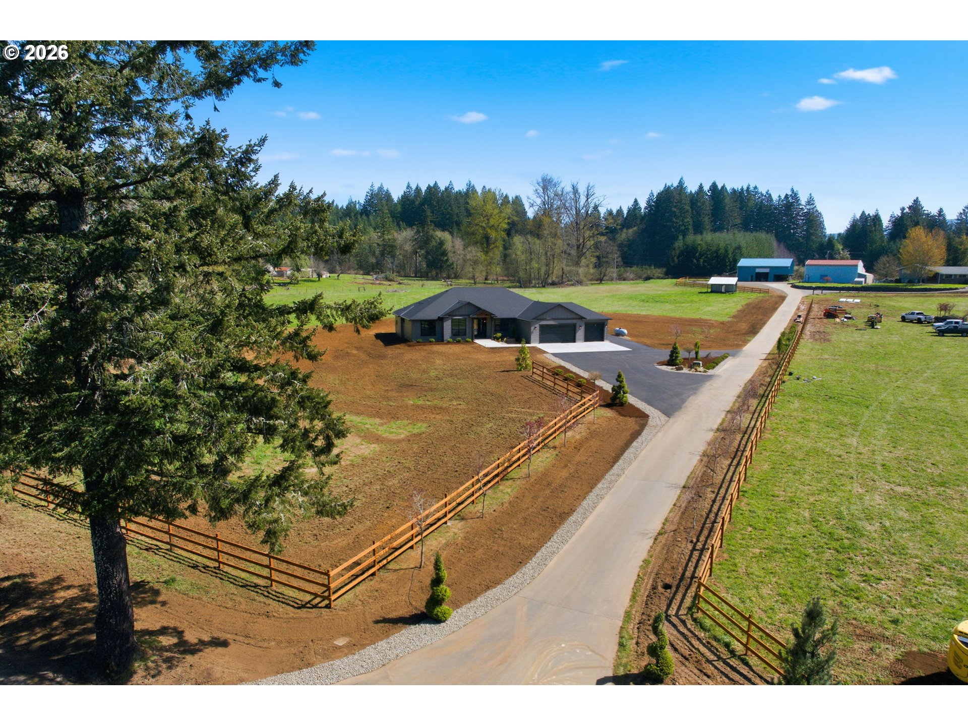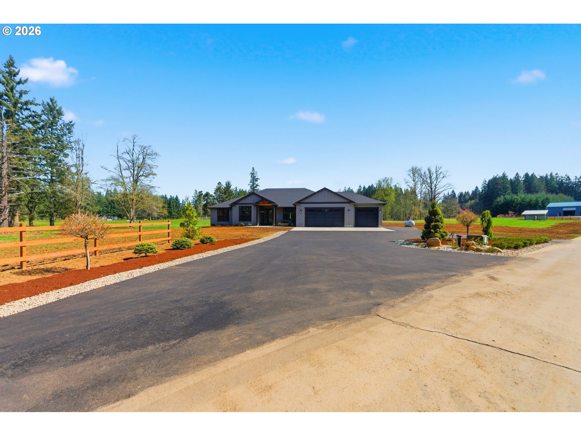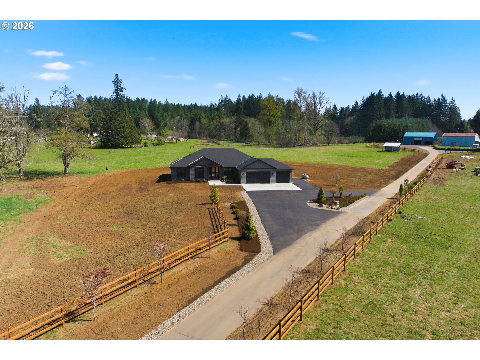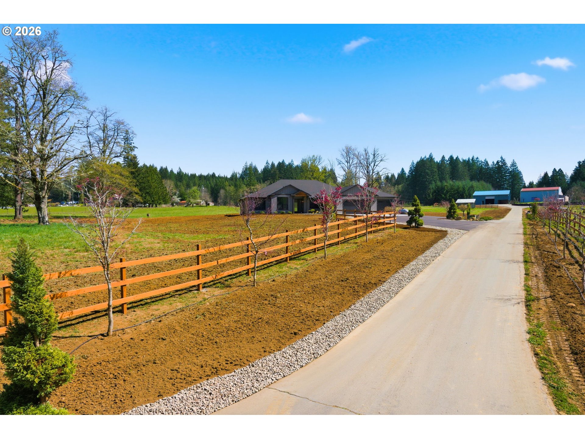 (503) 893-8874Absolutely stunning 7.06ac with new 2775sf 3 bdrm 3 baths and den. Modern ranch with high end finishes; custom hickory cabinets, heated tile floors, central vac, stainless Kitchenaid appliances incl ice maker, master closet plumbed for additl washer/dryer, slab quartz countertops, engin hardwoods, on demand hot water etc. Existing 4 stall barn with cattle area and upper storage, new 3 rail fencing, asphalt paved driveway, on demand hot water, 320A power, wired for generator. Approved outright for 900sf future ADU. Room for future shop etc. Owner is lic RE Broker. Turnkey and Ready to move in.