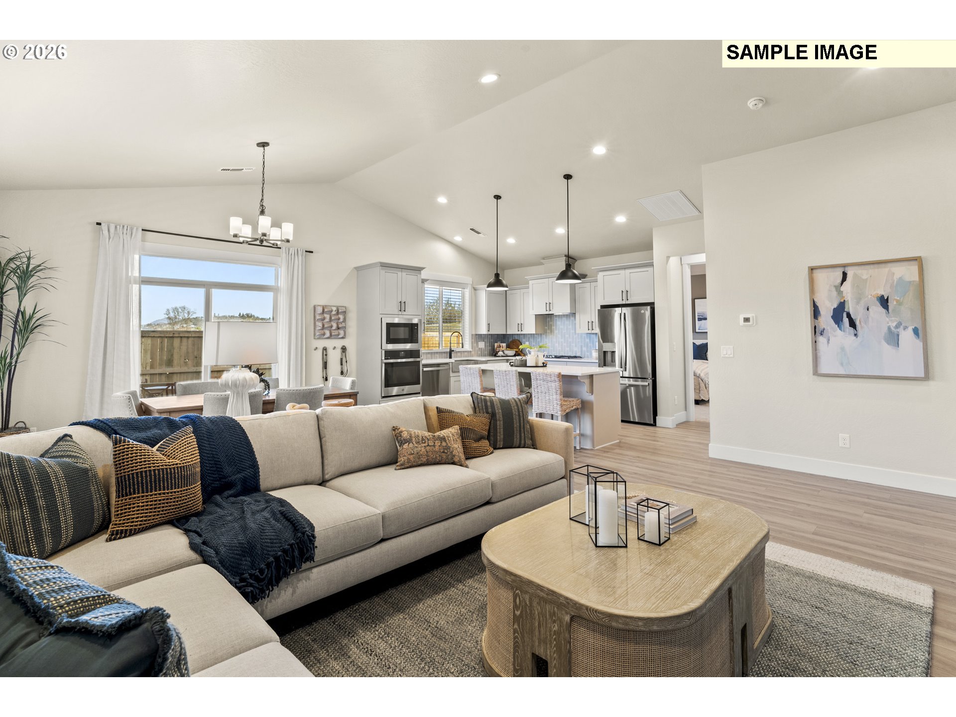 Welcome to your dream home in Faraday Hills, Estacada! This brand-new 1,594 sq. ft. single-level Craftsman offers 3 bedrooms, 2 bathrooms, and a spacious 3-car garage designed for comfortable, modern living. The open-concept great room features vaulted ceilings and flows seamlessly into a stylish kitchen complete with an island, pantry, dishwasher, and energy-efficient appliances—perfect for everyday living and entertaining. Situated on a fully fenced 12,081 sq. ft. lot, the home includes front yard landscaping with irrigation and a covered deck for year-round enjoyment. Also enjoy access to 17 acres of community greenspace with walking trails. Additional highlights include an energy-efficient heat pump, double-pane windows, and thoughtful finishes throughout. This home will be completed in July. Sample images are shown this home offers the perfect blend of comfort, efficiency, and Northwest lifestyle. Sales Office located at 3675 NE Claire Rd, open daily from 11 to 6.