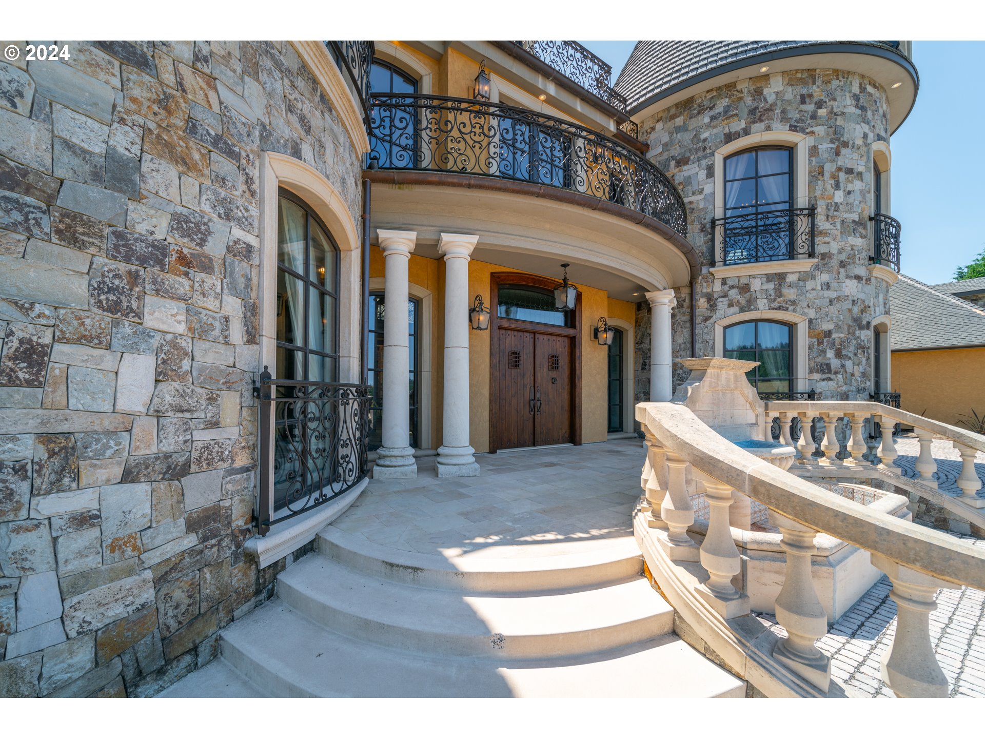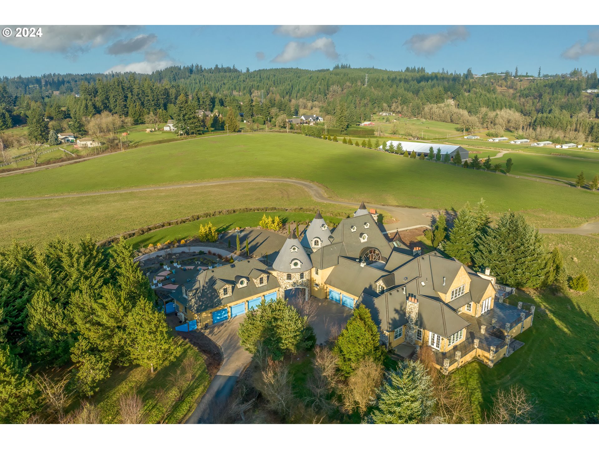 (503) 893-8874Sited on 68 acres in the rolling hills of West Linn, this incomparable contemporary chateau strikes an artful balance between historical grandeur and modern convenience. Completely custom-built, the home boasts a fusion of salvaged materials, local metalwork and antique elements sourced from global artisans, like French limestone floors and antique doors from Morocco and Germany. Artistic custom pieces and singular spaces include a stunning floor-to-ceiling half-moon window in the entrance hall, a striking glass elevator, a spiral staircase boasting intricate ironwork, and circular turret rooms with French plaster walls and soaring domed ceilings. The gourmet kitchen features a wood-fired pizza oven, marble countertops, commercial-grade refrigerator and freezer, La Cornue range with custom hood, two hammered copper sinks, two dishwashers and a walk-in butler's pantry. One of two primary suites boasts a sitting room with reclaimed ceiling beams, copper wall accents and an antique fireplace, along with a walk-in marble shower and domed rotunda with clawfoot tub. Unique lifestyle spaces include a rooftop balcony perfect for starlit entertaining and a wine room with a 1,000-bottle capacity. A connected 4-bedroom guest house with separate entrance features a full kitchen, formal dining room, library, family room, media room, sun room and expansive veranda overlooking acres of pasture. The primary suite offers a double-sided fireplace and dual walk-in closets. Captivating grounds ideally suited for hosting events, weddings, and corporate retreats. Multiple exterior gathering spaces to take in picturesque country views. An oversized 4-bay garage converts easily into an entertaining space and opens to a beautiful courtyard, while a 3-car attached garage provides parking and storage. Property has an approved event permit. Possibilities include a vineyard, working farm, or simply an extraordinary place to host family and friends, just a 30 min drive from downtown Portland.