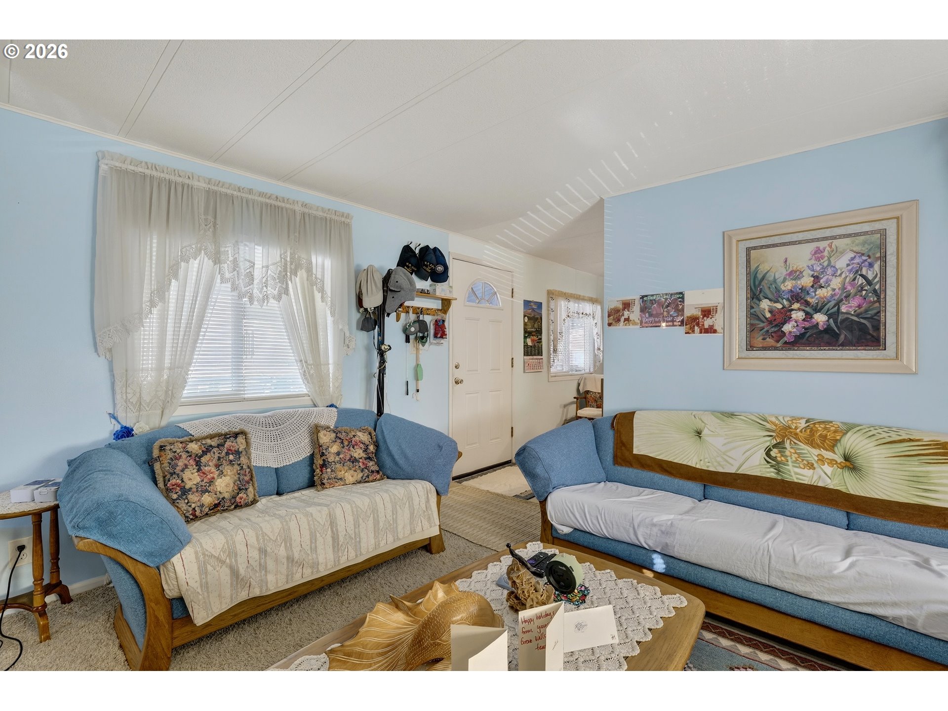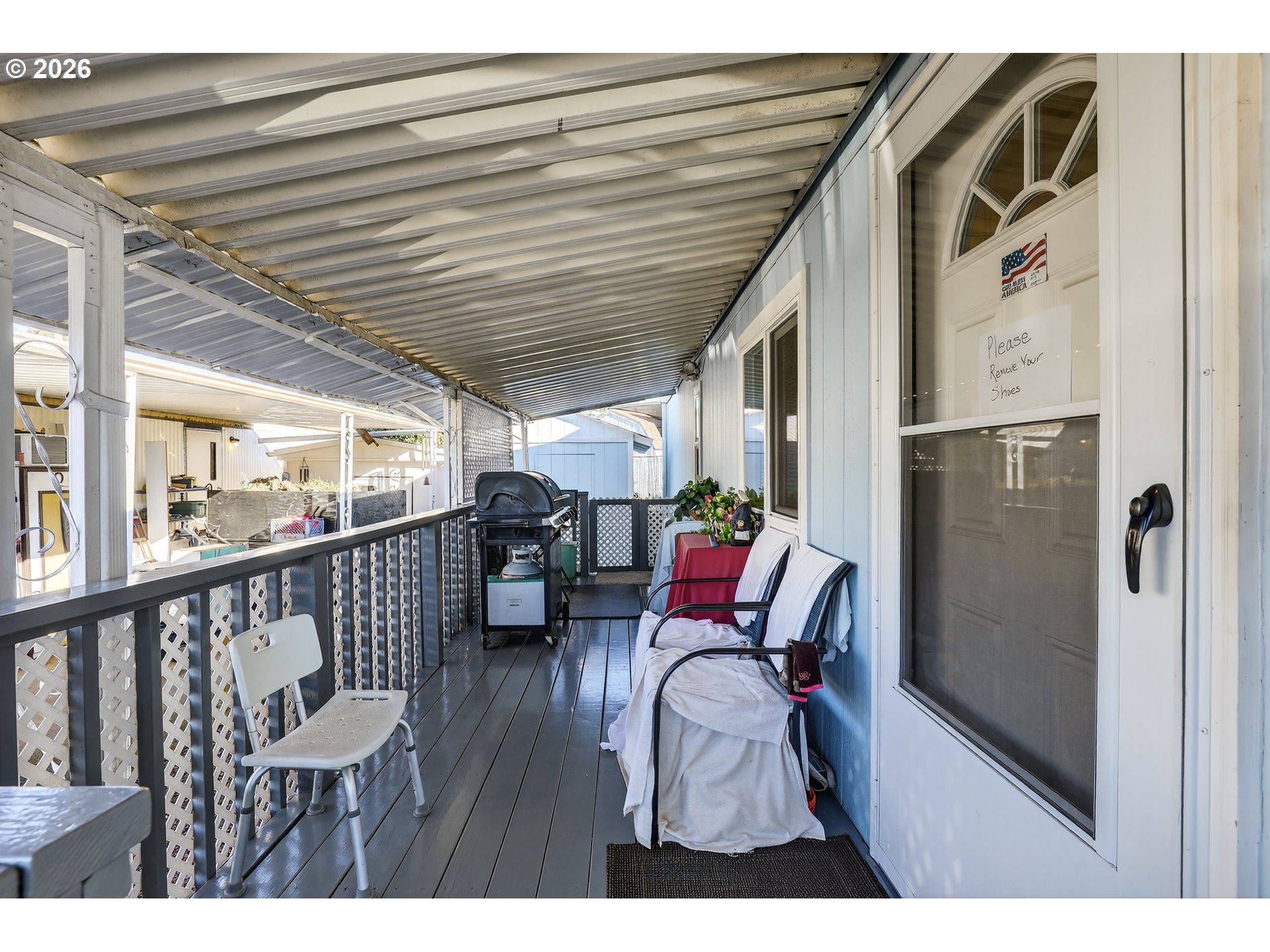 Well-maintained 2-bedroom, 1-bath manufactured home located in Flamingo Park Manor, a quiet 55+ community. This single-wide home offers a functional 600 sq ft layout with bright living spaces, a practical kitchen with ample cabinetry, and a dedicated laundry area. Features include a covered carport, covered entry, deck, and exterior storage for added convenience. Forced air heat, vinyl windows, and public utilities add to everyday comfort. Park approval required; space rent applies.