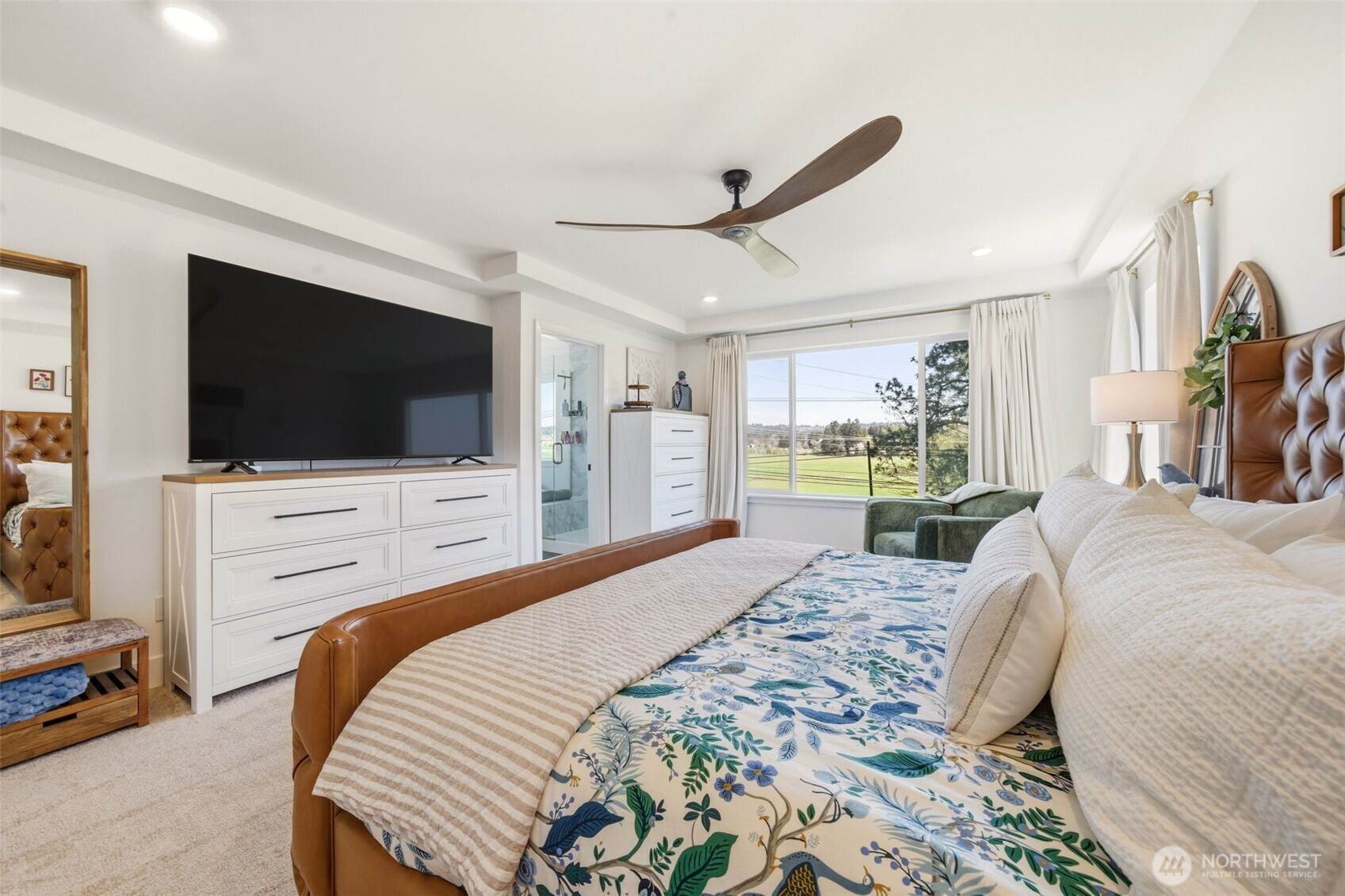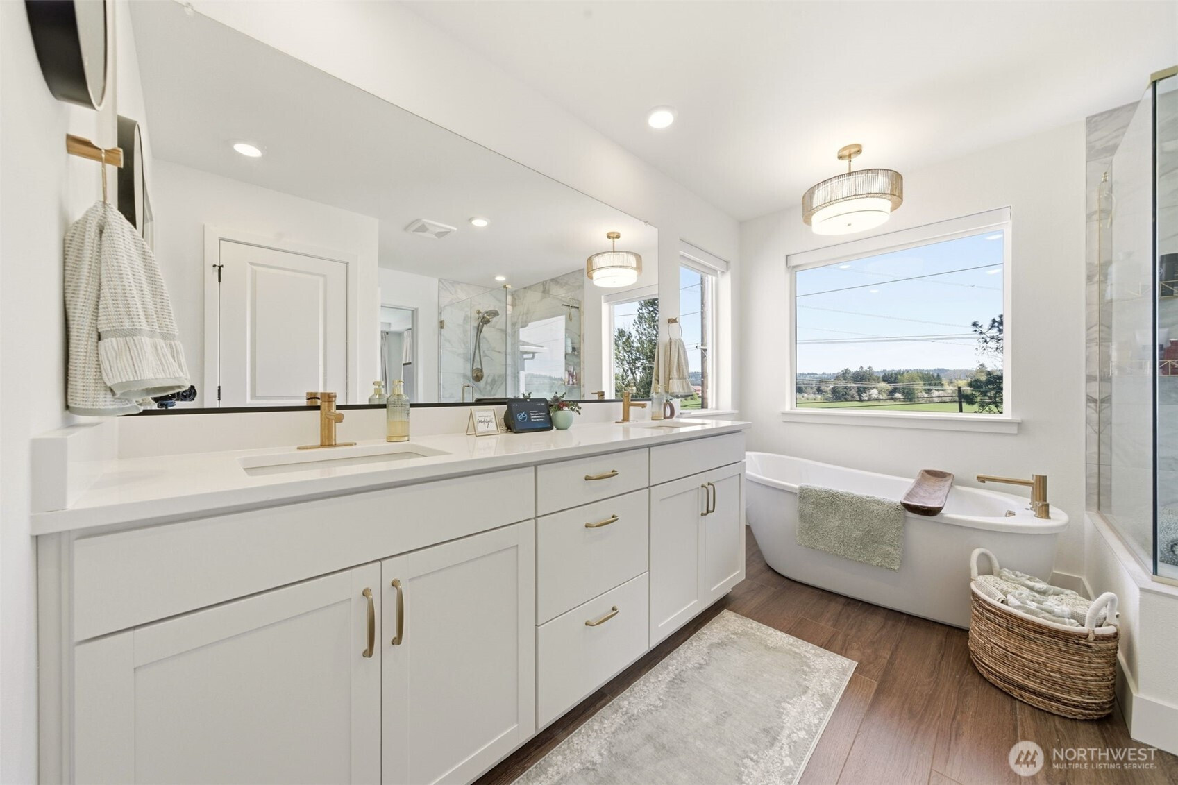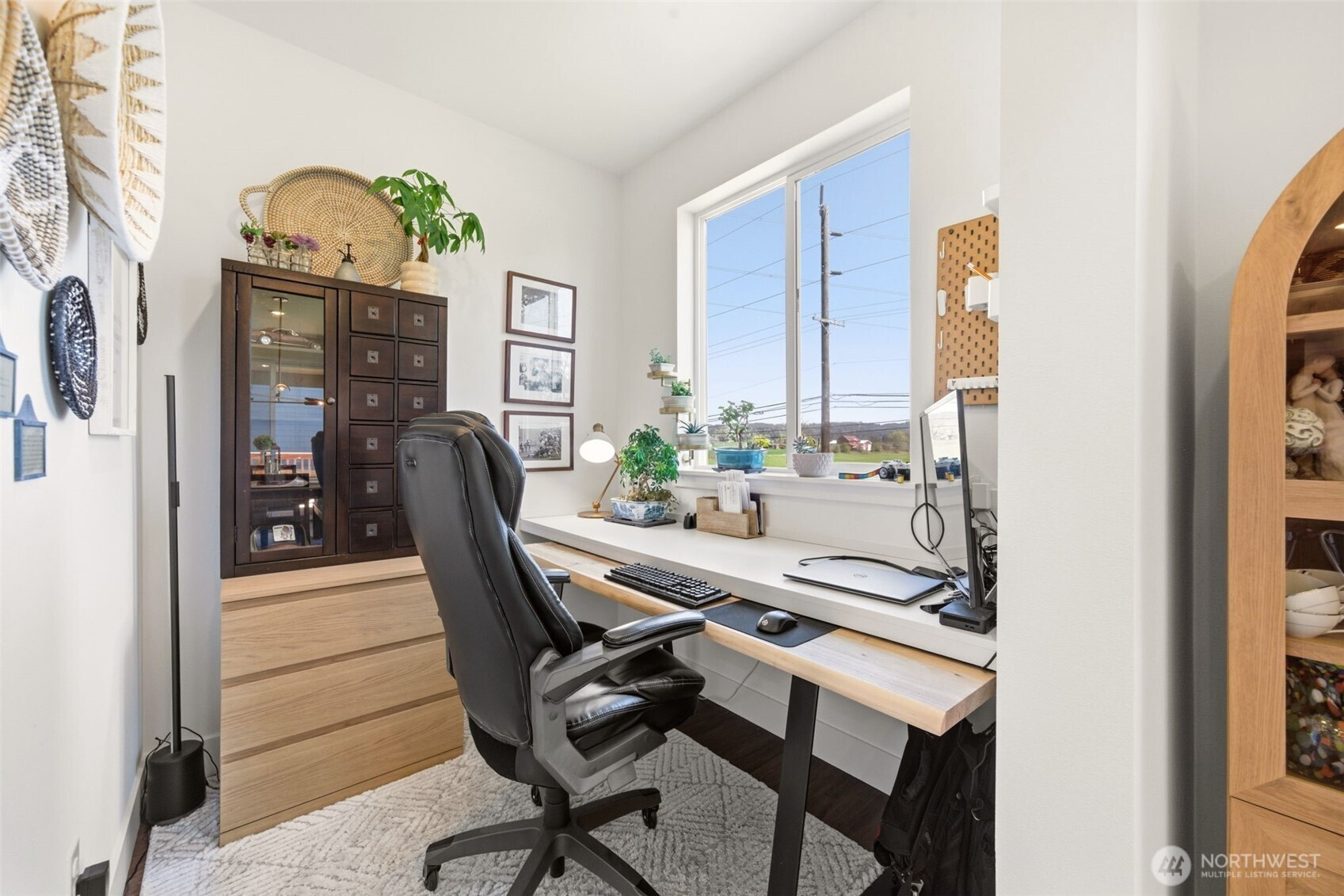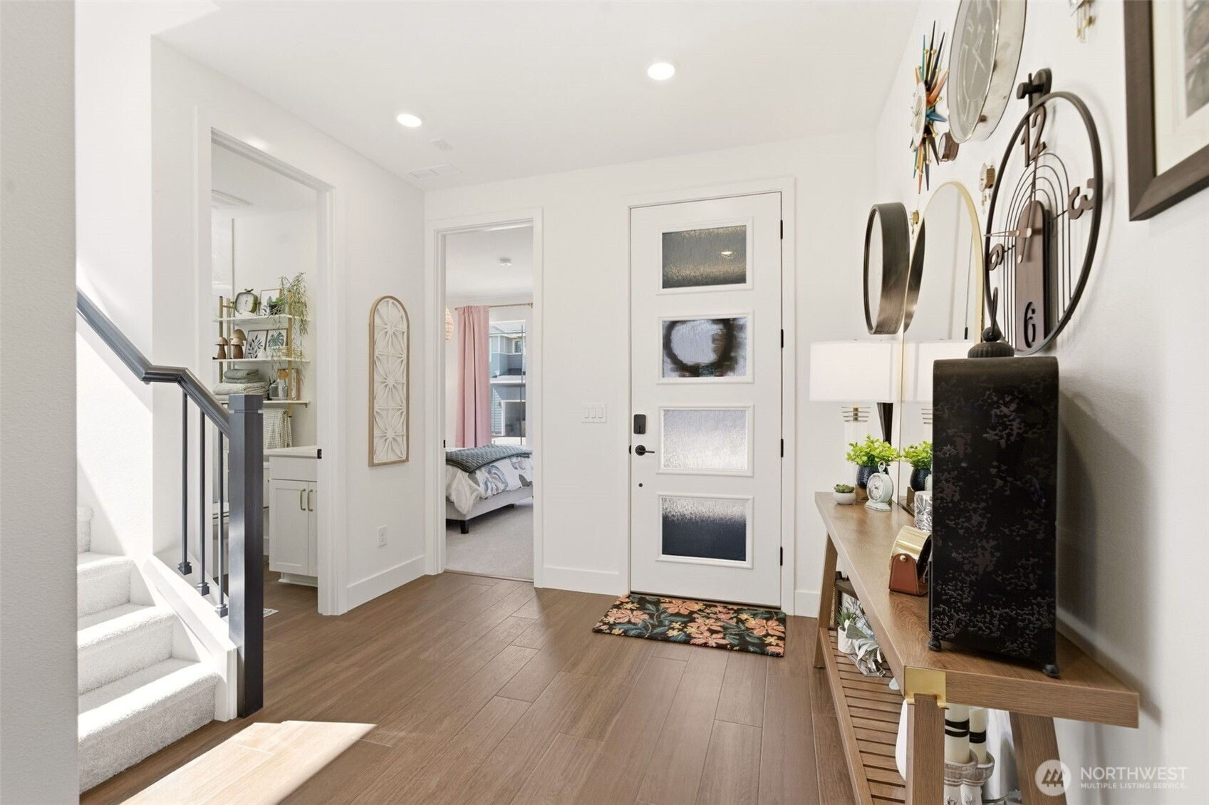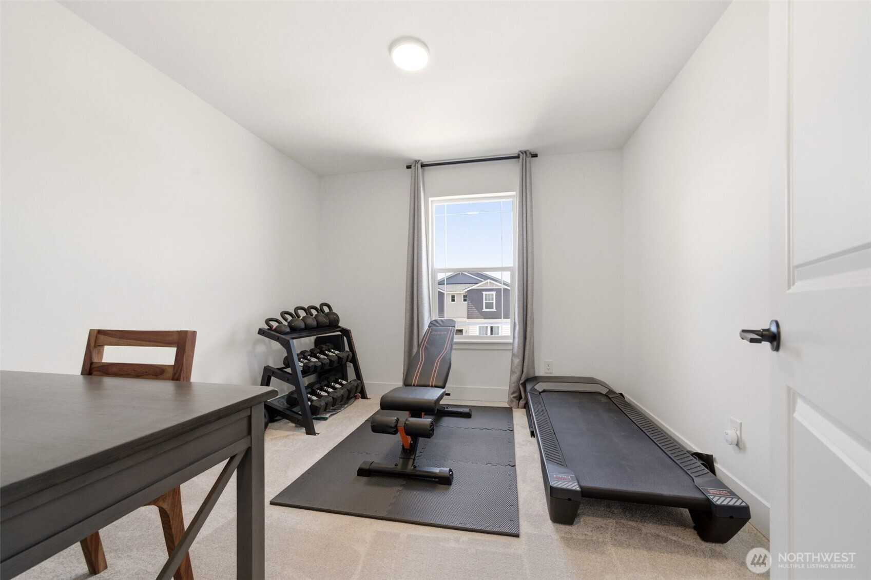 This upgraded Quincy floorplan, built by Pulte Homes, offers a fantastic design with 5 bedrooms, an office and bonus/media room, as well as 3 full baths and approx. 2,842 sqft. of living space. A spacious entry opens to a Greatroom living area that is perfect for entertaining while being connected to the dining area and kitchen. The kitchen has beautiful quartz countertops, stainless steel appliances, a large island, and an expanded walk-in pantry for added storage; the main level includes a full bedroom and full bath with a tiled shower, providing flexible living options for guests or multi-generational needs, while upstairs you’ll find a private owner’s suite with soaking tub, walk-in closet, and custom tile work, along with three additional bedrooms—each with walk-in closets—a versatile media/game room, and a convenient laundry room; interior finishes include luxury vinyl plank flooring, 5" baseboards, soft-close dovetailed construction cabinets and drawers, high 9'ceilings on the main, and designer details throughout, plus power blinds and curtains included; exterior features include a covered deck, fenced yard, fully landscaped yard with front and back outdoor sprinkler systems, with a 2-car attached garage enhanced by a durable epoxy floor; built in 2025 with modern systems such as central air, high-efficiency forced air heating, and tankless hot water, this home also includes a transferable builder warranty and is located in the desirable Frog Pond Crossing community.