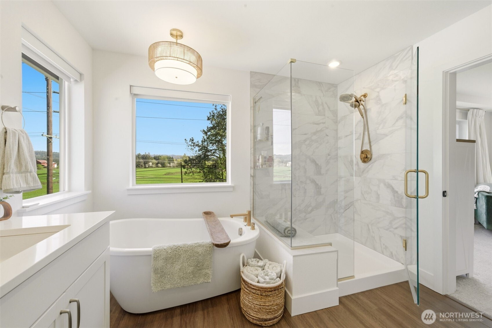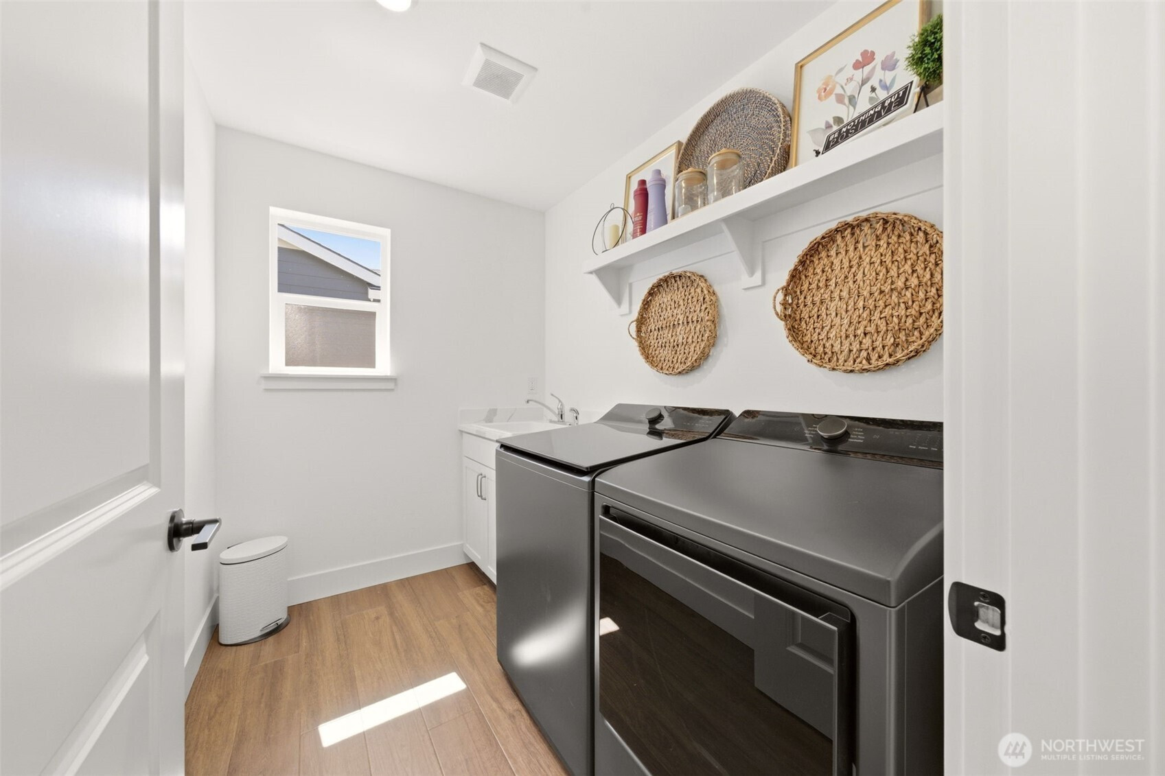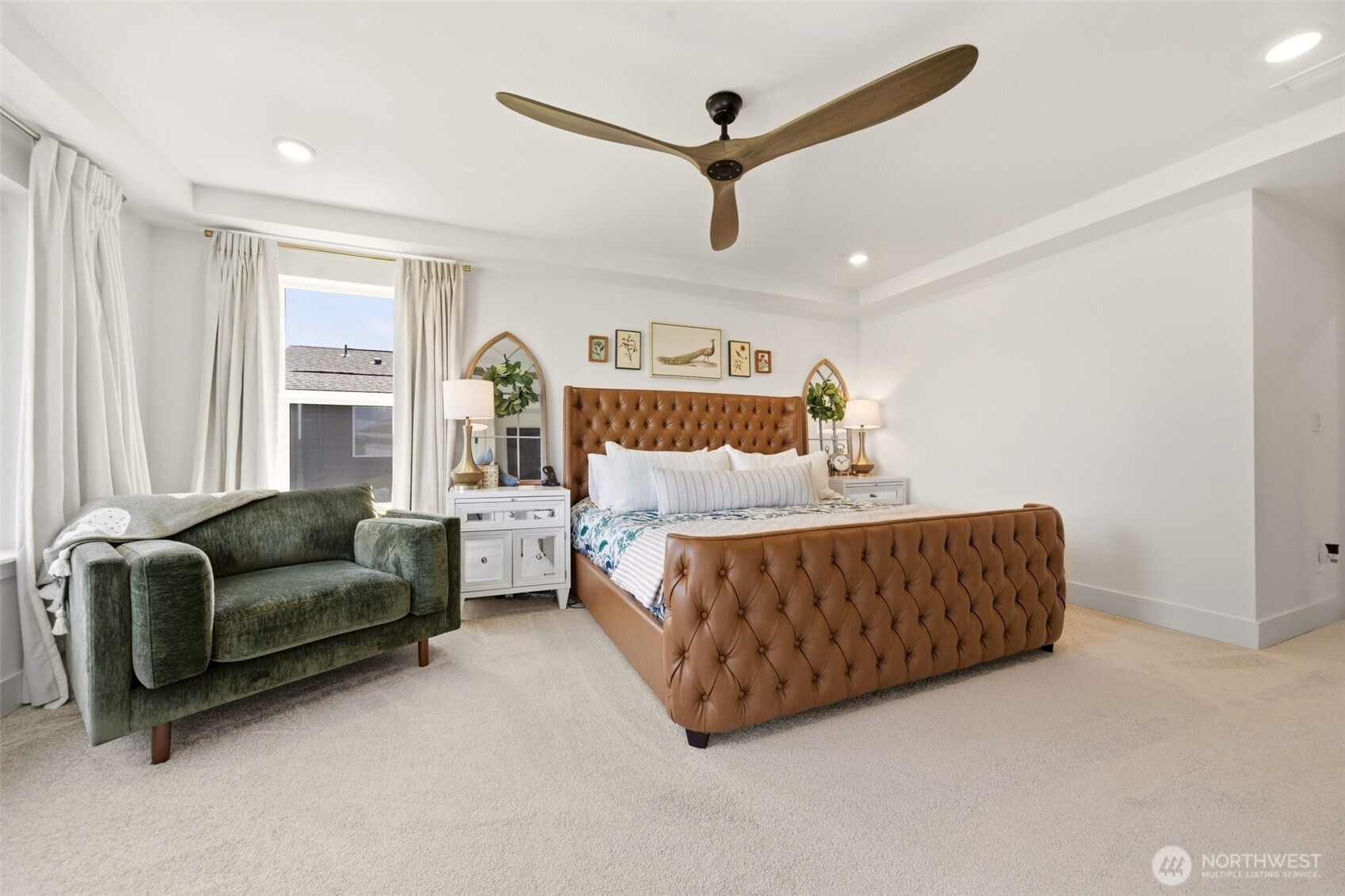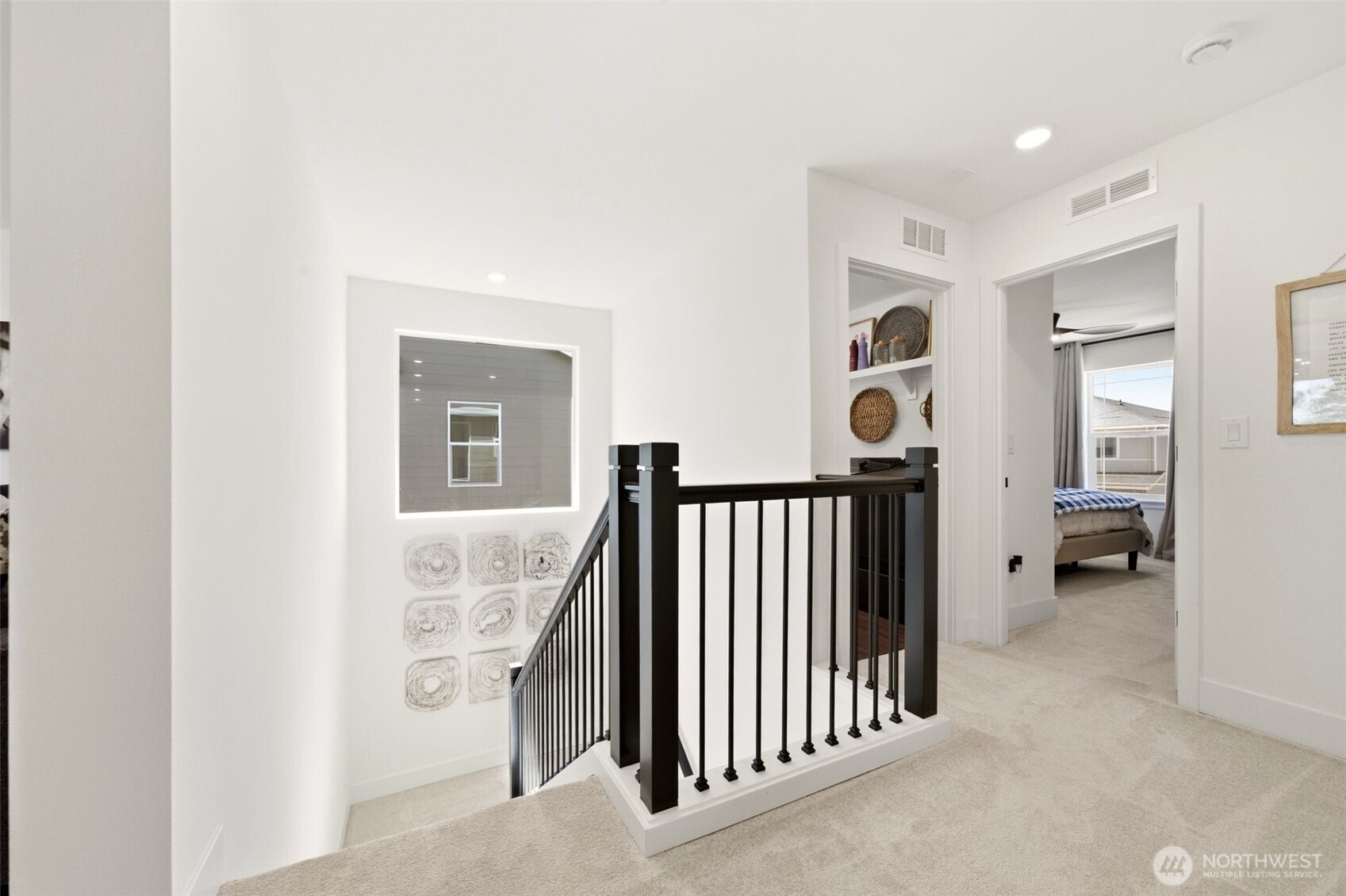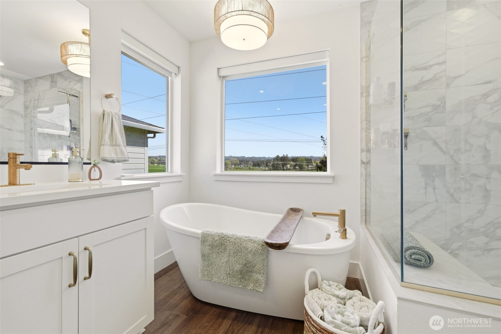 This upgraded Quincy floorplan, built by Pulte Homes, offers a fantastic design with 5 bedrooms, an office and bonus/media room, as well as 3 full baths and approx. 2,842 sqft. of living space. A spacious entry opens to a Greatroom living area that is perfect for entertaining while being connected to the dining area and kitchen. The kitchen has beautiful quartz countertops, stainless steel appliances, a large island, and an expanded walk-in pantry for added storage; the main level includes a full bedroom and full bath with a tiled shower, providing flexible living options for guests or multi-generational needs, while upstairs you’ll find a private owner’s suite with soaking tub, walk-in closet, and custom tile work, along with three additional bedrooms—each with walk-in closets—a versatile media/game room, and a convenient laundry room; interior finishes include luxury vinyl plank flooring, 5" baseboards, soft-close dovetailed construction cabinets and drawers, high 9'ceilings on the main, and designer details throughout, plus power blinds and curtains included; exterior features include a covered deck, fenced yard, fully landscaped yard with front and back outdoor sprinkler systems, with a 2-car attached garage enhanced by a durable epoxy floor; built in 2025 with modern systems such as central air, high-efficiency forced air heating, and tankless hot water, this home also includes a transferable builder warranty and is located in the desirable Frog Pond Crossing community.