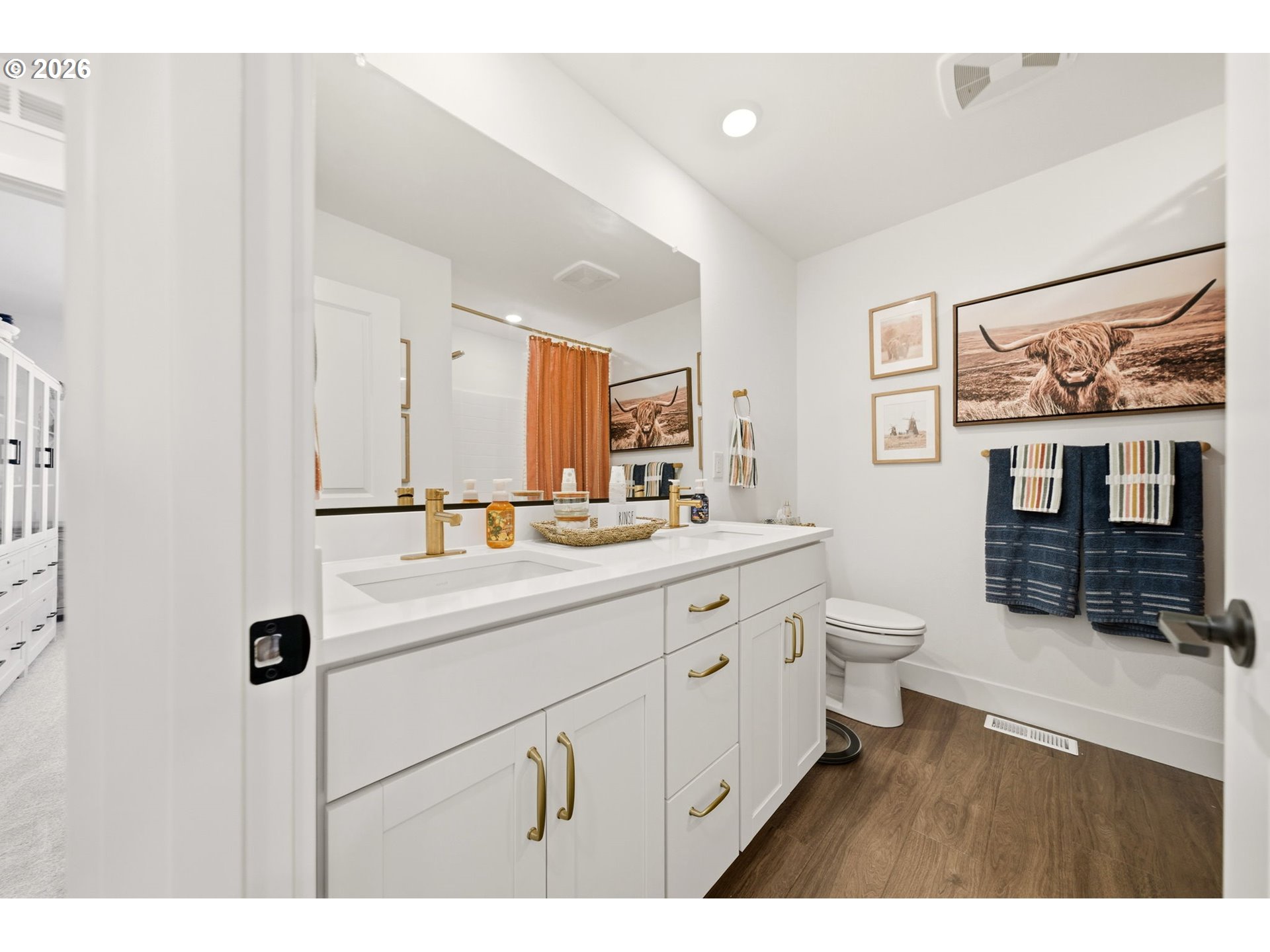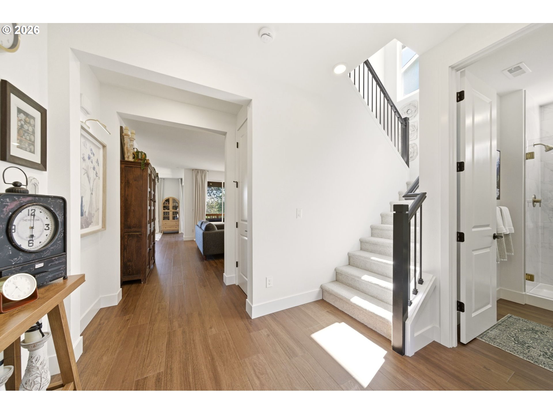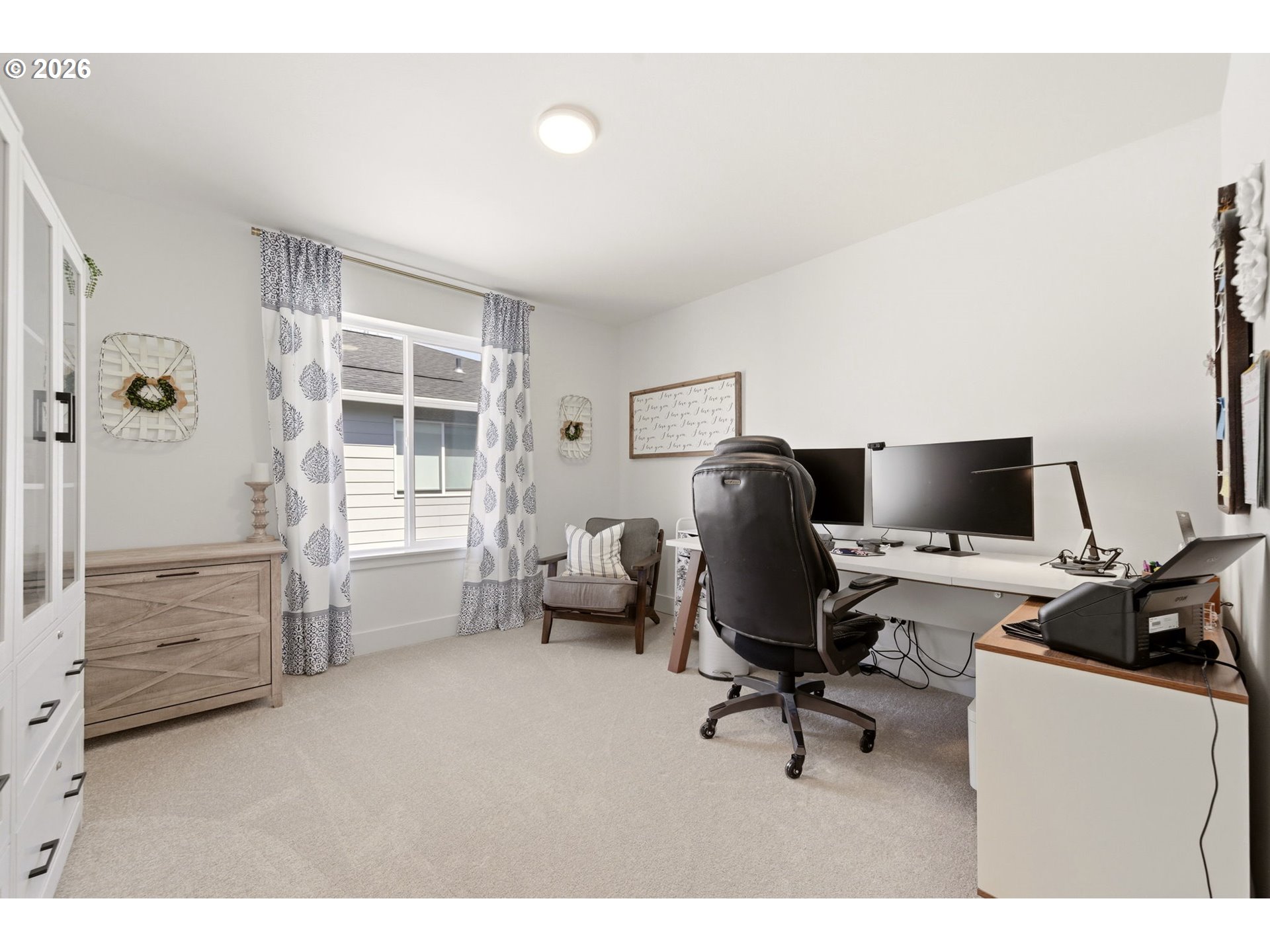 (503) 893-8874This upgraded Quincy floorplan, built by Pulte Homes, offers a fantastic design with 5 bedrooms, an office nook and bonus/media room, as well as 3 full baths and approx. 2,842 square feet of living space. A spacious entry opens to a Greatroom concept living area that is perfect for entertaining while being connected to the dining area and kitchen. The kitchen has beautiful quartz countertops, stainless steel appliances, a large island, and an expanded walk-in pantry for added storage; the main level includes a full bedroom and full bath with a tiled shower, providing flexible living options for guests or multi-generational needs, while upstairs you’ll find a private owner’s suite with soaking tub, walk-in closet, and custom tile work, along with three additional bedrooms—each with walk-in closets—a versatile media/game room, and a convenient laundry room; interior finishes include luxury vinyl plank flooring, 5" baseboards, soft-close dovetailed construction cabinets and drawers, high 9'ceilings on the main, and designer details throughout, plus power blinds and curtains included; exterior features include a covered deck, fenced yard, fully landscaped yard with front and back outdoor sprinkler systems, with a 2-car attached garage enhanced by a durable epoxy floor; built in 2025 with modern systems such as central air, high-efficiency forced air heating, and tankless hot water, this home also includes a transferable builder warranty and is located in the desirable Frog Pond Crossing community.