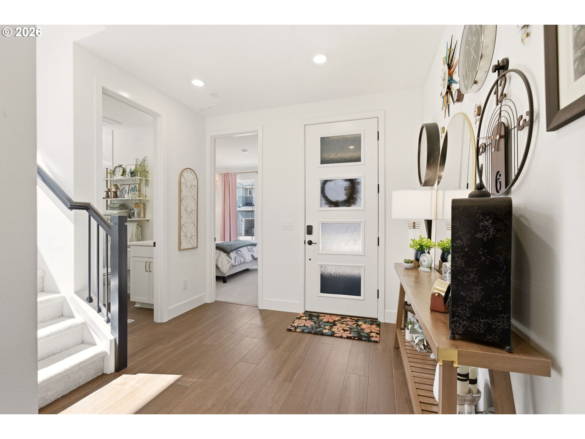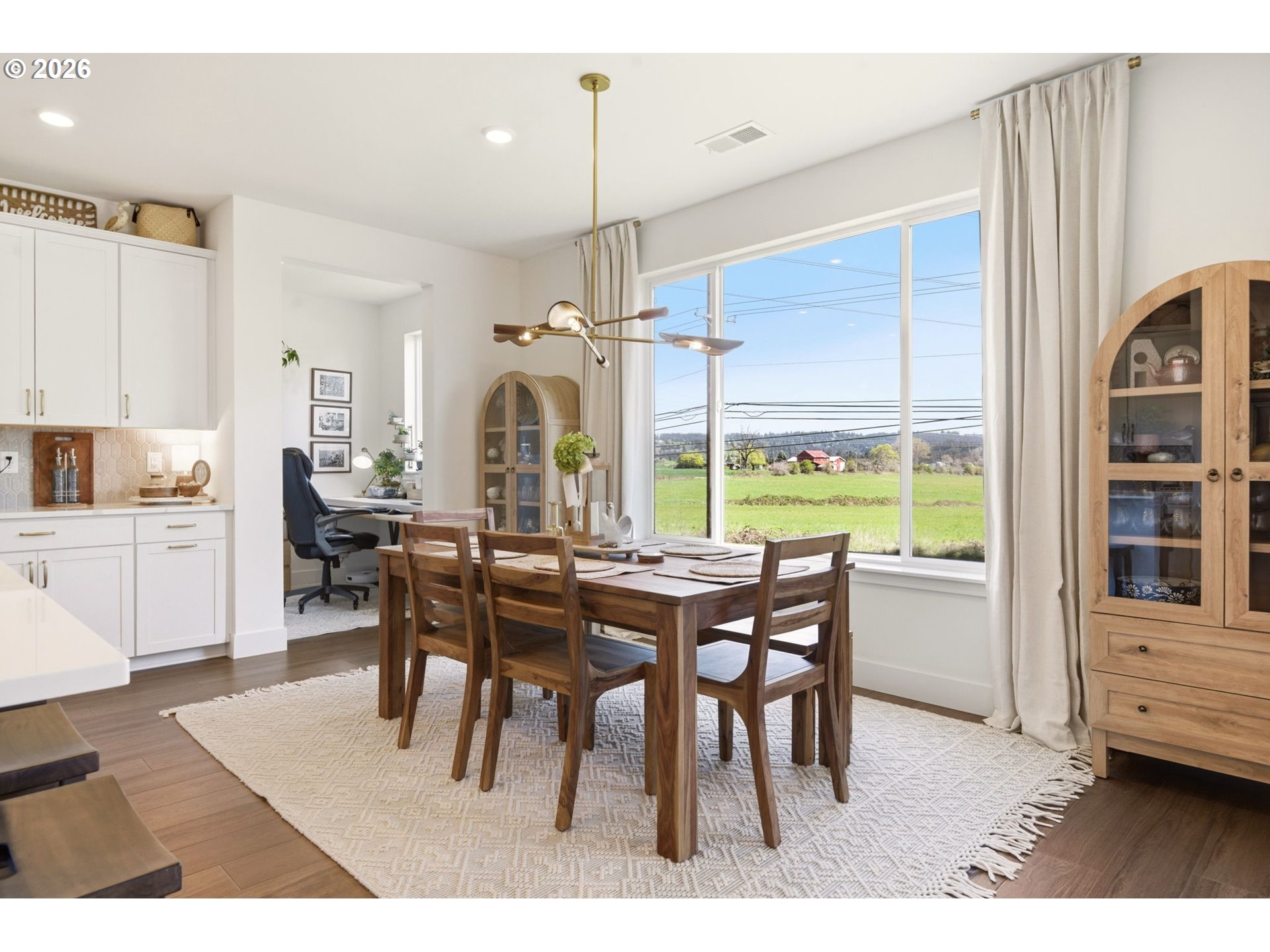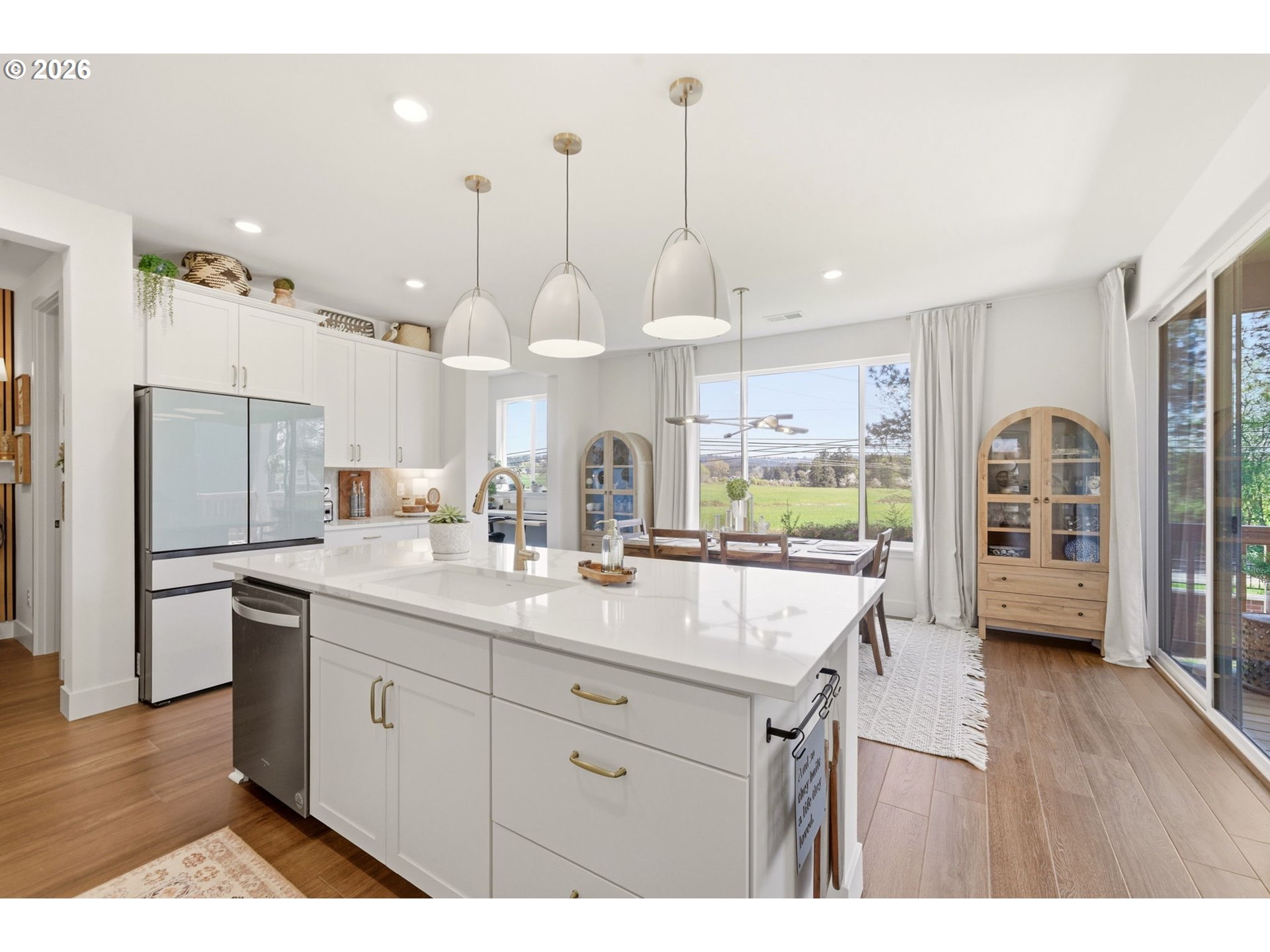 (503) 893-8874This upgraded Quincy floorplan, built by Pulte Homes, offers a fantastic design with 5 bedrooms, an office nook and bonus/media room, as well as 3 full baths and approx. 2,842 square feet of living space. A spacious entry opens to a Greatroom concept living area that is perfect for entertaining while being connected to the dining area and kitchen. The kitchen has beautiful quartz countertops, stainless steel appliances, a large island, and an expanded walk-in pantry for added storage; the main level includes a full bedroom and full bath with a tiled shower, providing flexible living options for guests or multi-generational needs, while upstairs you’ll find a private owner’s suite with soaking tub, walk-in closet, and custom tile work, along with three additional bedrooms—each with walk-in closets—a versatile media/game room, and a convenient laundry room; interior finishes include luxury vinyl plank flooring, 5" baseboards, soft-close dovetailed construction cabinets and drawers, high 9'ceilings on the main, and designer details throughout, plus power blinds and curtains included; exterior features include a covered deck, fenced yard, fully landscaped yard with front and back outdoor sprinkler systems, with a 2-car attached garage enhanced by a durable epoxy floor; built in 2025 with modern systems such as central air, high-efficiency forced air heating, and tankless hot water, this home also includes a transferable builder warranty and is located in the desirable Frog Pond Crossing community.