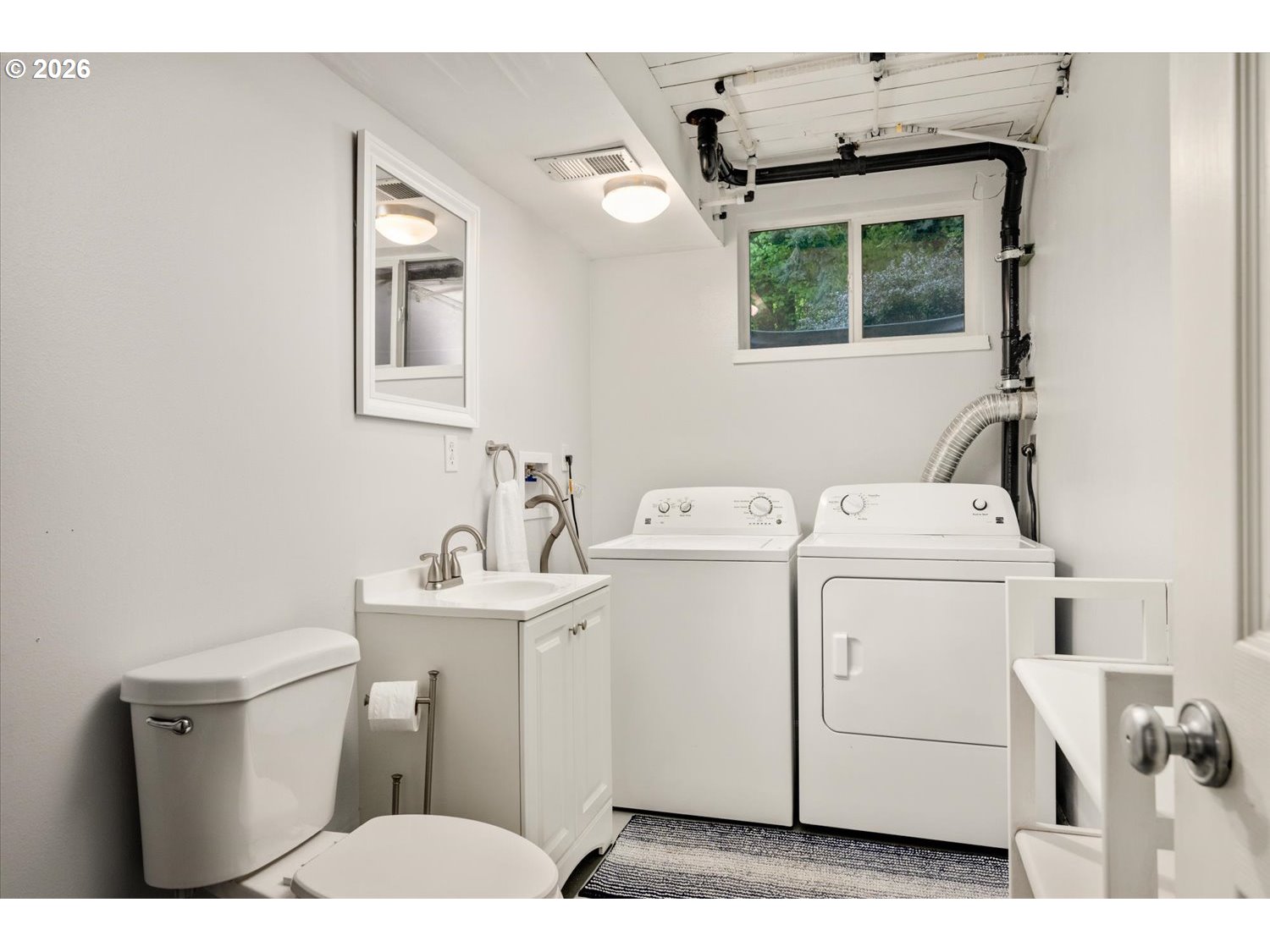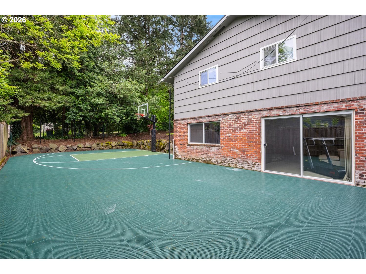 With strong curb appeal and a beautifully maintained front and backyard, this home offers a well designed layout and a natural connection between indoor and outdoor living. The main level features a spacious living room that flows naturally into the dining area and kitchen, creating an easy everyday layout. Newer luxury vinyl flooring runs throughout the main level, adding a clean and updated feel.Downstairs, a large family room provides additional living space with good natural light and a wood burning fireplace, offering flexibility for recreation, media, or gathering. Another fireplace in the main living room adds warmth and character to the home.The backyard is a standout feature, with a private, beautifully landscaped setting and a patio that connects directly to the dining room through sliding doors. This space is ideal for outdoor living and entertaining, with room to enjoy summer evenings and everyday use. A sport court adds another layer for entertaining and activity in the outdoor space.Major system updates include HVAC with AC and furnace in 2021, water heater in 2023, plumbing system replacement in 2024, and new flooring in 2026. The home also includes a basement waterproofing system and an updated sump pump, providing added confidence in long term maintenance. Kitchen appliances have been updated in recent years as well.Located in West Linn, this home offers convenient access to parks, schools, shopping, and restaurants, supporting easy everyday living.