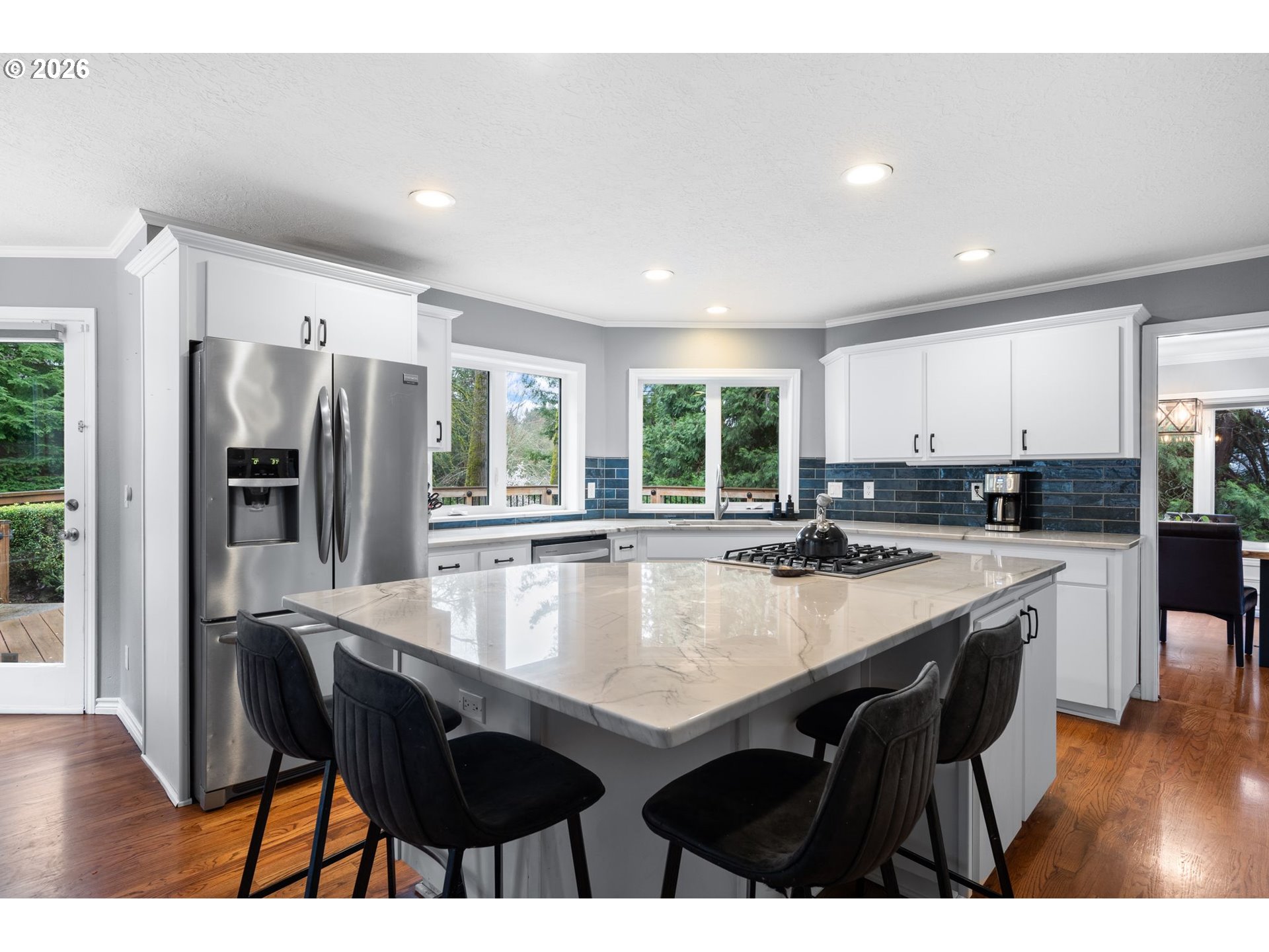 OPEN HOUSE SAT 3.21; 10am - 12pm. Located in Barrington Heights in West Linn, this beautifully updated home features spacious living areas, a flexible layout with a bedroom and full bathroom on the main level, a three car garage, and a private backyard designed for outdoor gatherings. Vaulted ceilings and large windows fill the home with natural light and create an open welcoming feel.Multiple living spaces provide room to spread out and connect, whether enjoying a quiet evening by the wood burning fireplace or spending time together.The remodeled kitchen combines beauty and function with Brazilian quartzite counters, stainless steel appliances, and soft close cabinetry. A walk in pantry, coffee bar, and built in desk area add everyday convenience while the kitchen windows overlook the backyard.The main level bedroom and full bathroom offer excellent flexibility for guests, extended living, or a comfortable work from home space.Upstairs, the primary suite offers a peaceful retreat with a bay window, tray ceiling, and spacious walk in closet. The updated bathroom includes dual sinks with quartz counters, a soaking tub, and an updated walk in shower. Two additional bedrooms, a bright bathroom with skylight, and a loft with built in cabinetry provide additional living space.Outdoor living is just as inviting. The composite deck with built in seating, lighting, speakers, and space for outdoor television is perfect for summer dinners or relaxing evenings. The fully fenced yard includes raised garden beds and room to garden or play.A three car garage with storage and workspace adds flexibility for hobbies and projects. Located near West Linn parks, trails, shopping, dining, and Willamette River recreation.Schedule your private tour today.