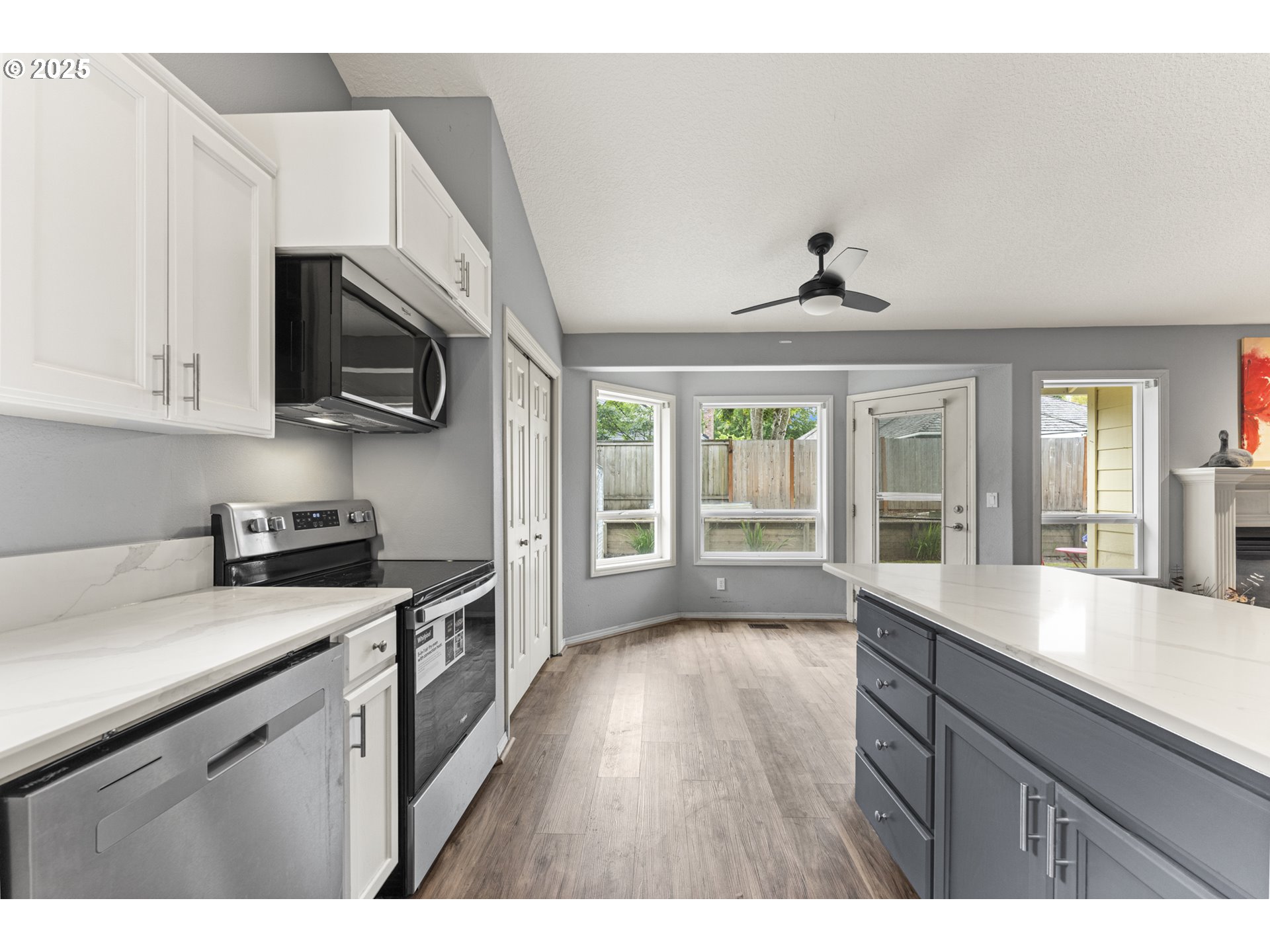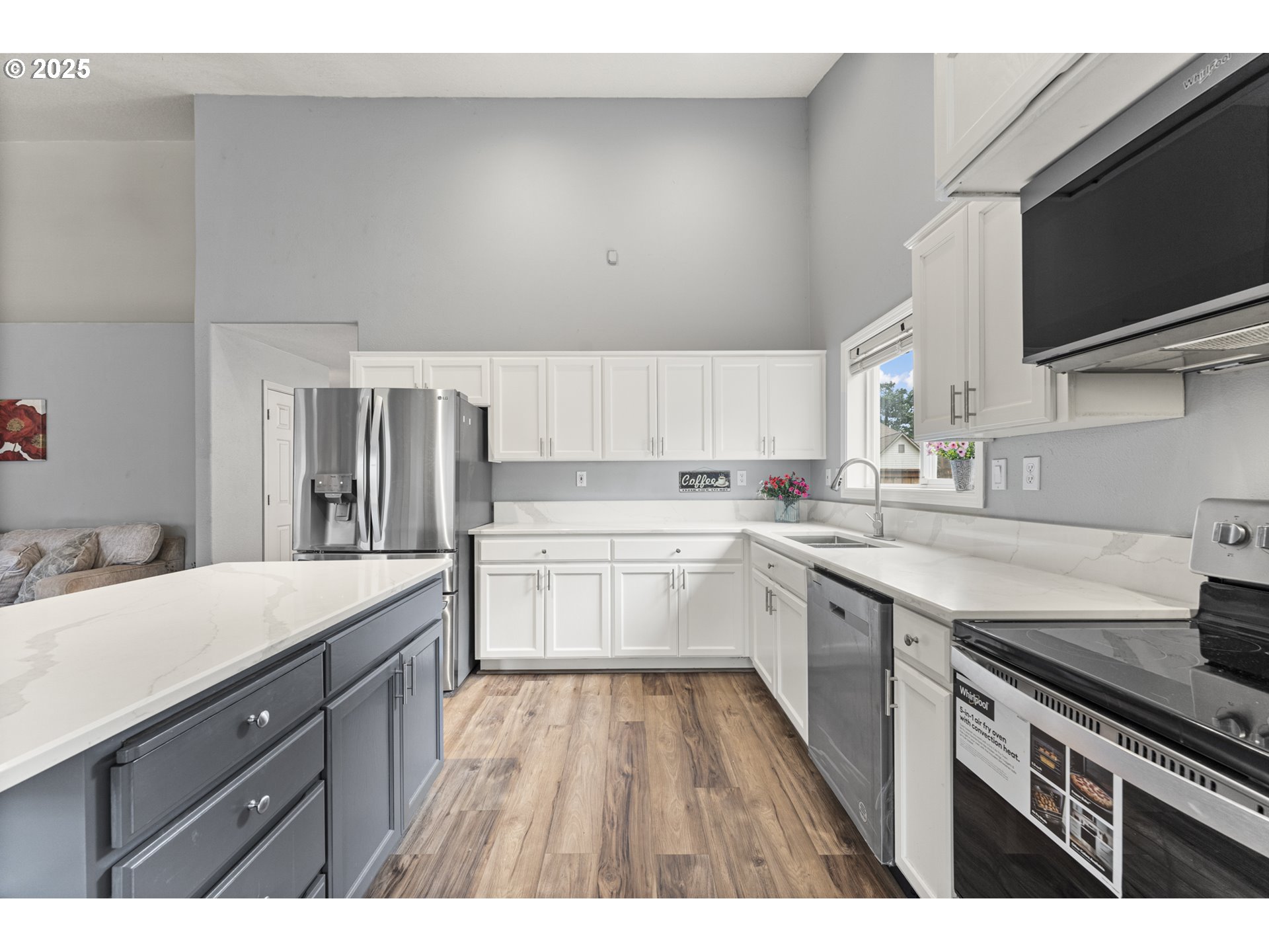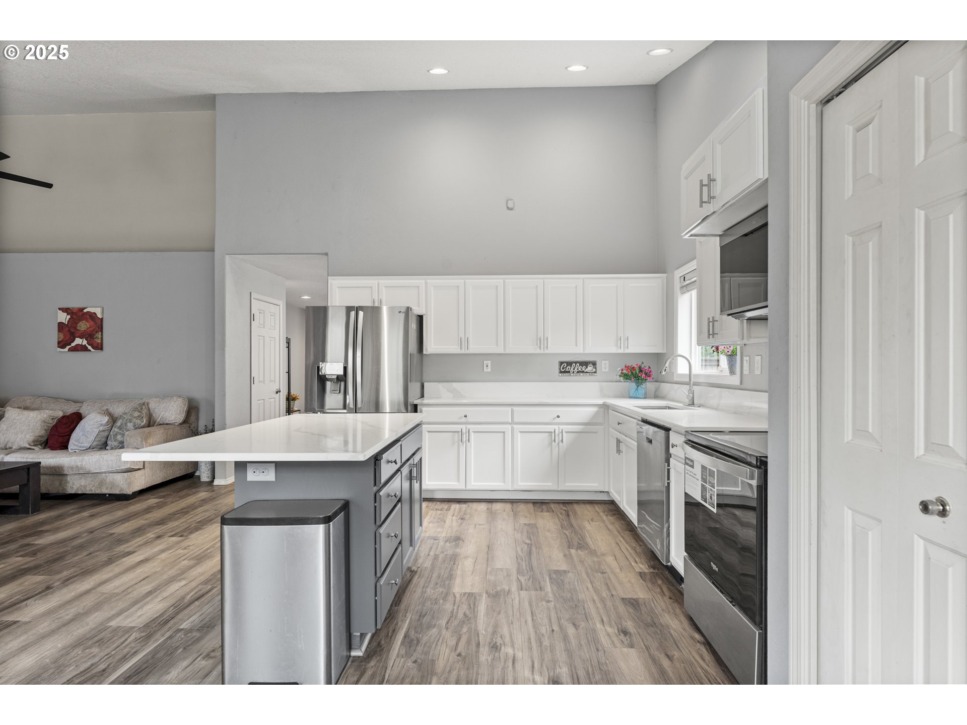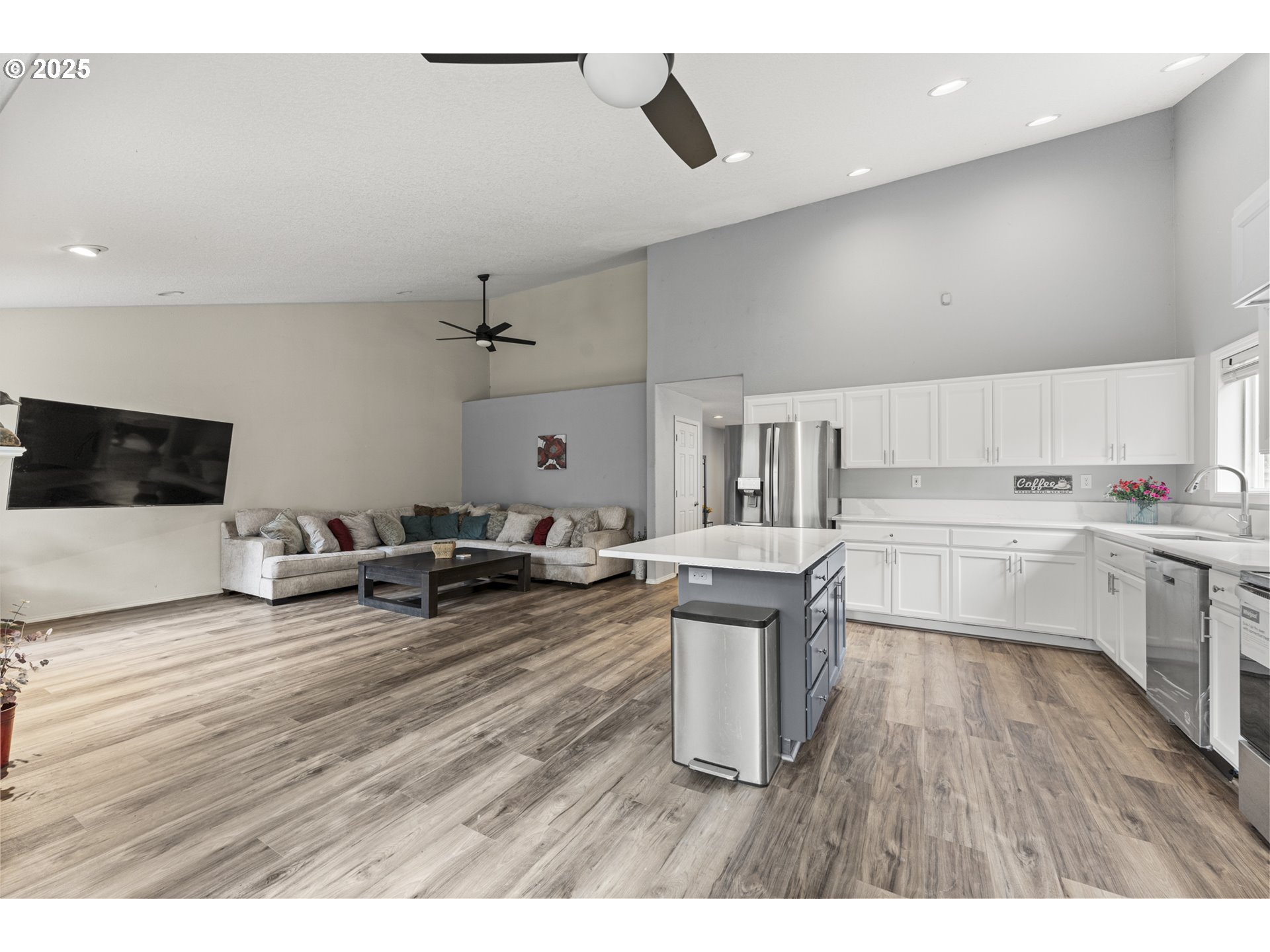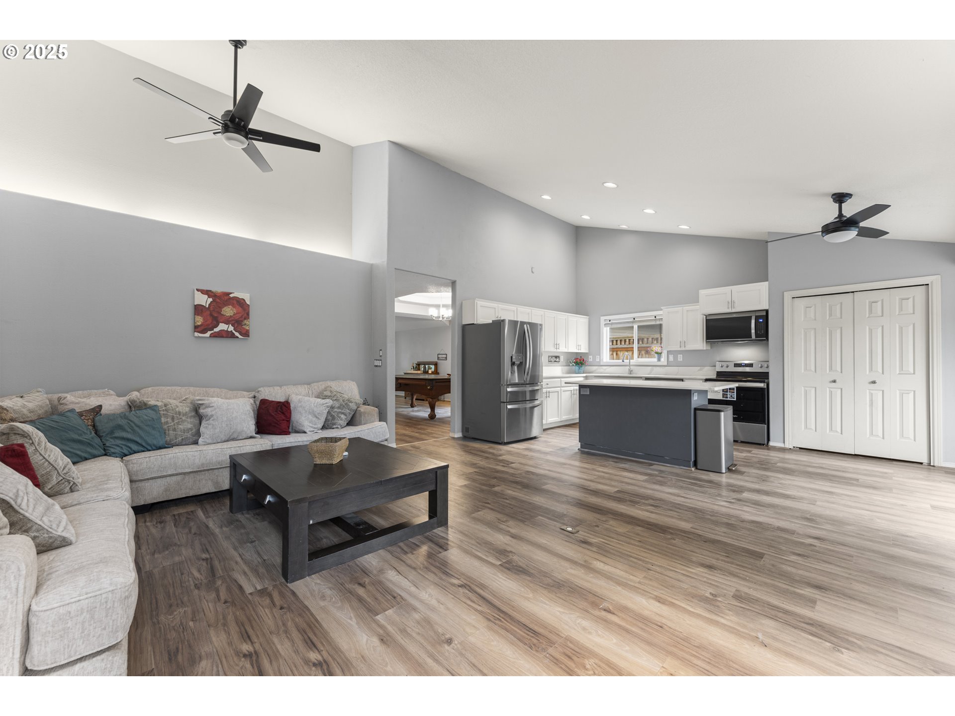 The single level home you want in the much coveted Wilsonville Meadows Neighborhood. Spacious 3BD/2BA home with luxury vinyl flooring throughout. Updated kitchen with large island, quartz , ss appliances, open to great room concept family room with Vaulted ceilings, fireplace. Generous sized bedrooms. Large lot offers privacy with Patio, Dog run, new lawn, raised garden beds.