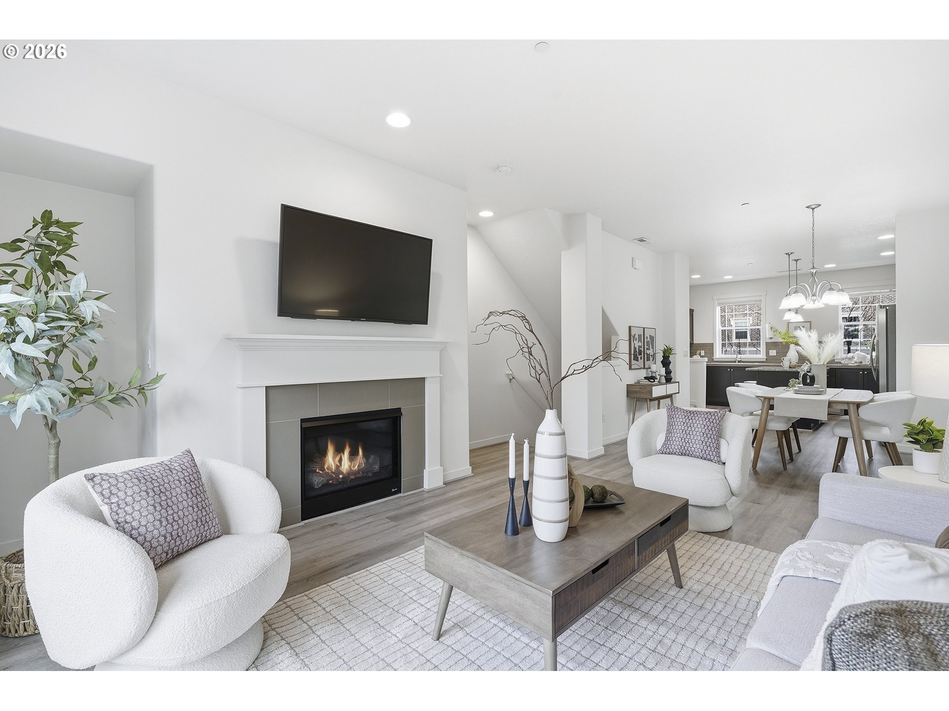 This Villebois townhome features a charming front patio with an ideal location backing to beautiful Montague Park. The kitchen features granite counters, stainless steel appliances and extended cabinetry for additional storage. This home has high ceilings, LVT flooring, gas fireplace and a recessed ceiling in the primary bedroom. Direct views of the park from the main living and bedroom areas create an abundance of natural light in the home. The single car garage has ample room to create a workout space, extra storage or parking a vehicle. Across the street at Montague Park you can enjoy gorgeous putting greens, pickle ball, kids nature playground and stunning Mt. Hood views. It's a short walk to the dog park, walking trails, beach volleyball, convenience store and all the neighborhood amenities the Villebois community has to offer.