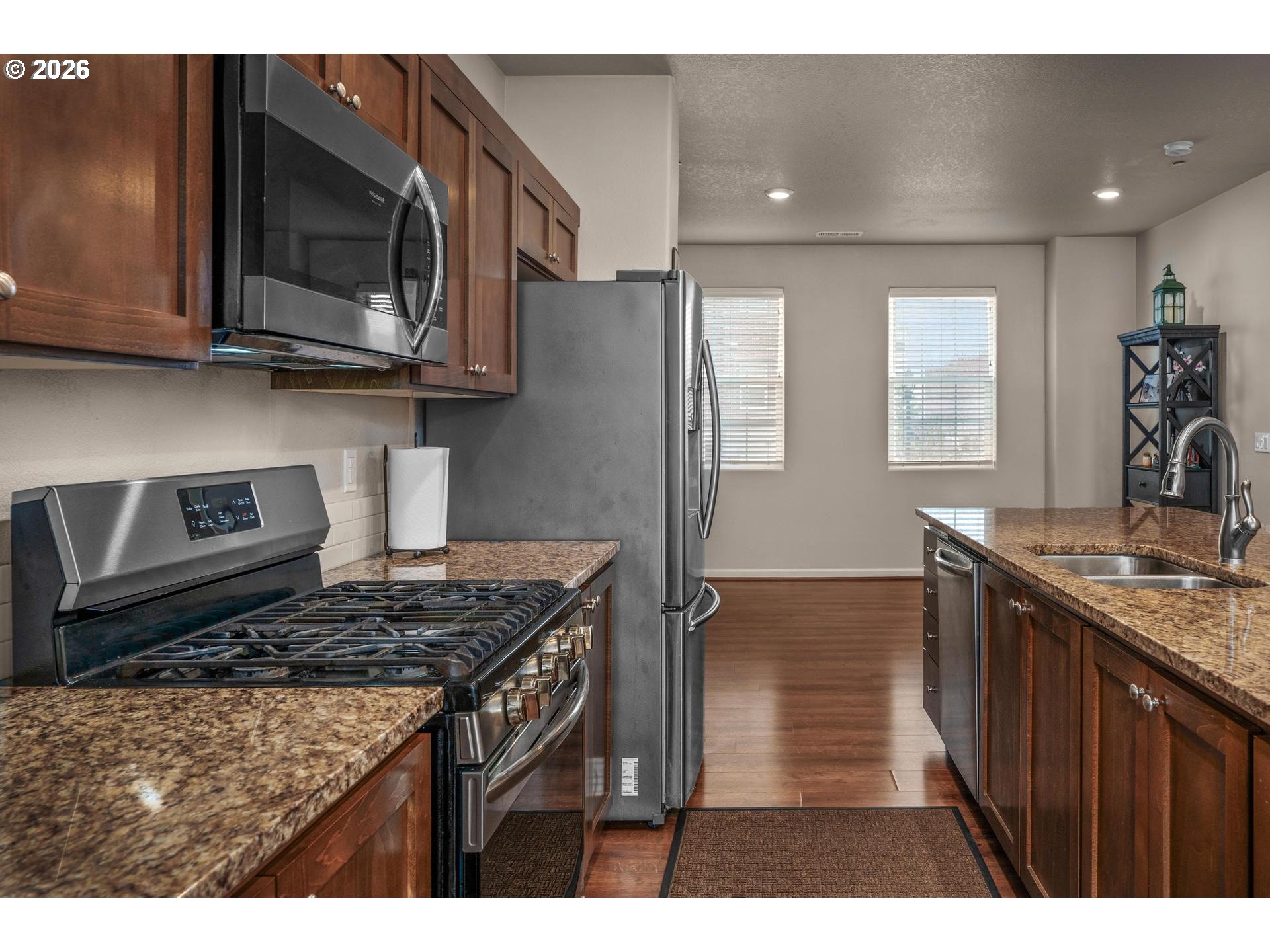 Dishwasher, Disposal, FreeStandingGasRange, FreeStandingRefrigerator, Granite, Island, Microwave, PlumbedFo