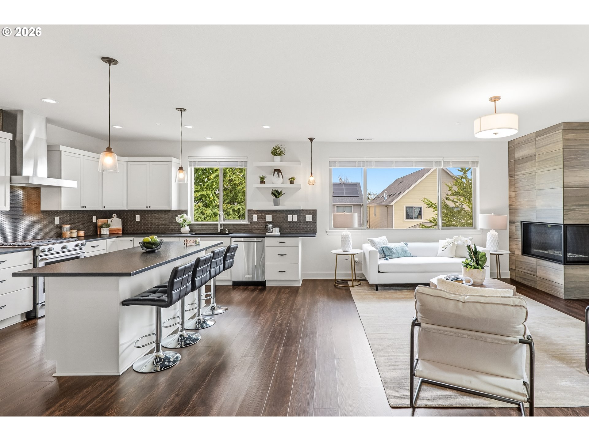 Live in the heart of Villebois, where lifestyle, community, and thoughtful design come together. This exceptional former model home by Legend Homes offers premium upgrades, timeless craftsmanship, and a highly desirable park-facing location.Designed for comfort, entertaining, and multigenerational living, this home features high ceilings, a main-level primary suite, and main-level laundry with built-ins. The open-concept living area is anchored by a stunning floor-to-ceiling gas fireplace and filled with natural light.The chef’s kitchen includes Black Pearl antiqued granite countertops, Energy Star stainless steel appliances, a convection range with baking drawer, chimney hood, and maple cabinetry. A sliding door off the living area leads to the deck for seamless indoor-outdoor living, while the upstairs deck offers beautiful Mt. Hood views — a rare and stunning bonus.Additional features include LED recessed lighting, satin nickel finishes, and a garage with protective floor covering, lower level storage space, unfinished basement, and a 20-amp freezer circuit.Built for efficiency and peace of mind with PEX plumbing, fire sprinkler system, 50-gallon water heater, and Trane 95%+ HVAC. Exterior highlights include Hardie Plank siding, covered front patio, turf side yard, front irrigation, and an oversized driveway.Enjoy parks, trails, pickleball, dog park, farmers market, and year-round events just steps away.A rare opportunity to own a beautifully upgraded home with Mt. Hood views in one of Wilsonville’s most sought-after communities.