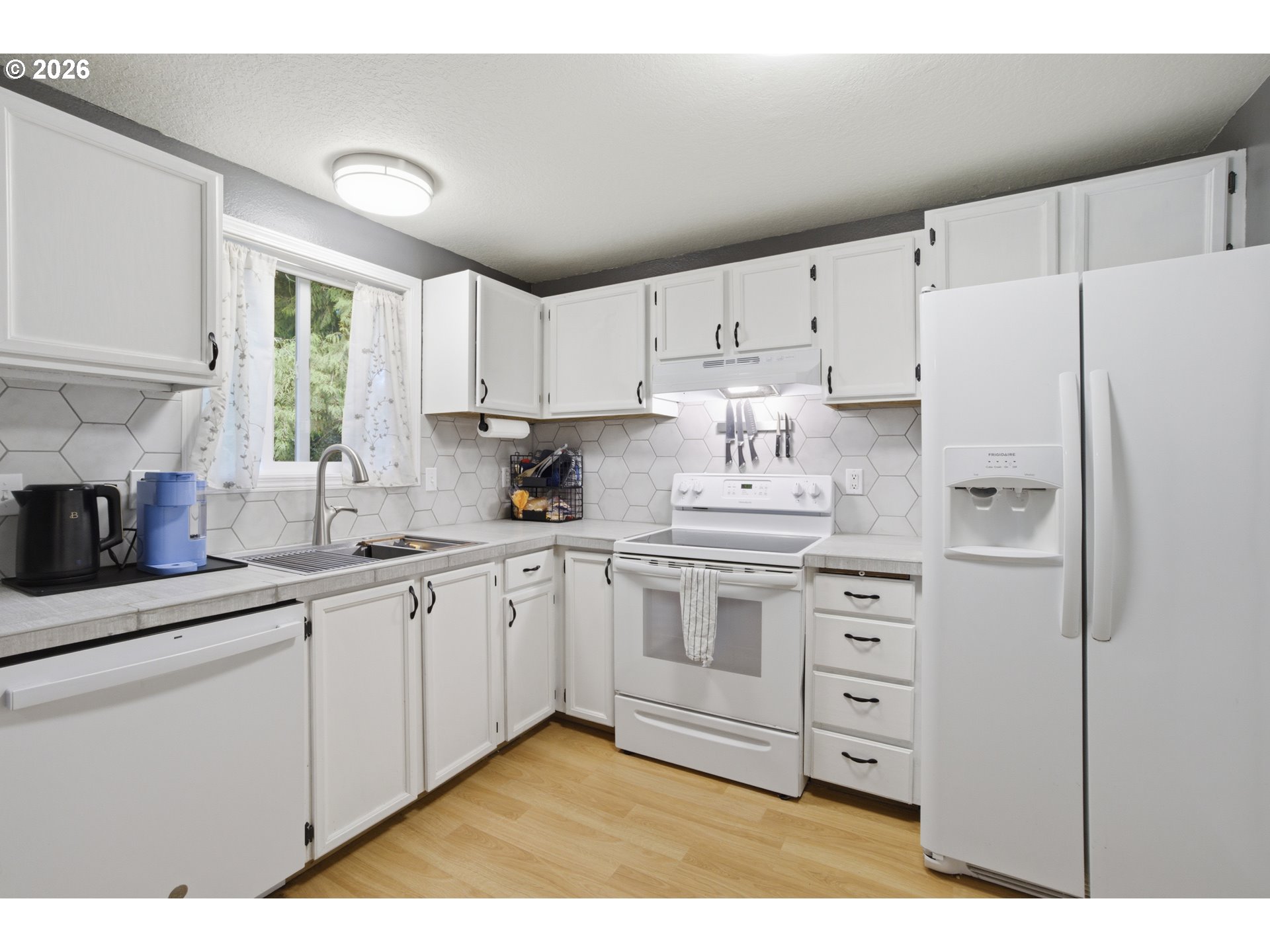 Located in the heart of Wilsonville, just minutes from local favorites like Memorial Park, Town Center Park, and convenient shopping and dining at Wilsonville Town Center, this attractively priced 2 bed, 1.5 bath condo offers incredible value and everyday comfort. Inside, you’ll find engineered hardwood floors throughout the main living areas and durable laminate flooring in the kitchen. The spacious living room flows effortlessly into a convenient half bath and onward to a generous kitchen and dining space, complete with pantry storage, tile countertops, and a stylish tile backsplash. Enjoy peaceful views from the back deck, which backs to mature trees and greenery for added privacy. Upstairs features two large bedrooms with ample closet space and a full bathroom with a newly refinished fiberglass shower/tub combo. In-unit laundry adds to the convenience. This home also includes deeded parking and a detached one-car garage, an added bonus rarely found at this price point. The HOA covers sewer, water, trash, exterior maintenance, and access to community amenities including a clubhouse, pool, and playground. The HOA's most recent projects include newly resurfaced driveways, and new siding/decks. One of the best-priced homes in Wilsonville. Don’t miss your chance to make it yours! NO RENTAL CAP