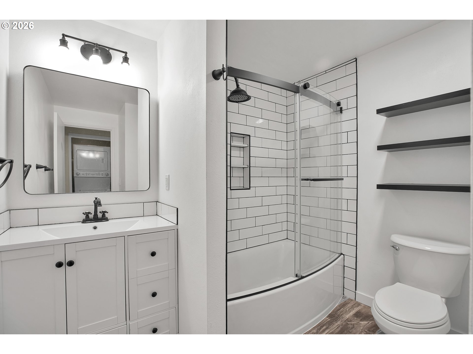 Welcome home to this a beautifully updated end unit townhome style condo in a quiet, tree-lined community offering comfort & convenience. Major exterior improvements are already complete, including new roof, siding, exterior paint, and rebuilt ext. stairs. A dedicated parking space sits directly in front of the unit for easy access.Inside, the main level features durable LVP flooring, fresh interior paint, and a bright living space with a wood-burning fireplace. The layout includes a dining area, eat-in bar, and a fully remodeled half bath on main. All appliances are included & a new water heater, Also offers newer: dishwasher,kitchen faucet & disposal. Carpet has been professionally cleaned. Upstairs offers two spacious bedrooms, primary with large double closest & both offer ceiling fans. Upper level full bathroom has been fully remodeled, and washer & dryer are included.Enjoy a fully fenced backyard with patio and ext. gate. ideal for pets, gardening, or relaxing plus a secure 6x3 storage unit. Community amenities include a pool, clubhouse (remodel coming soon), workout space, and additional laundry facilities. Seller is offering 3 months of HOA dues with an acceptable offer.Location is where this home truly shines. You’re just minutes from Mary S. Young Park and Memorial Park, where you’ll find trails, dog parks, splash pads, and open green space. Everyday conveniences are close by, including grocery stores, coffee shops, local dining, the library, and seasonal favorites like farmers markets, outdoor concerts, and art events. Commuters will appreciate quick access to I-5 and nearby transit options, making travel throughout the Portland metro area seamless.