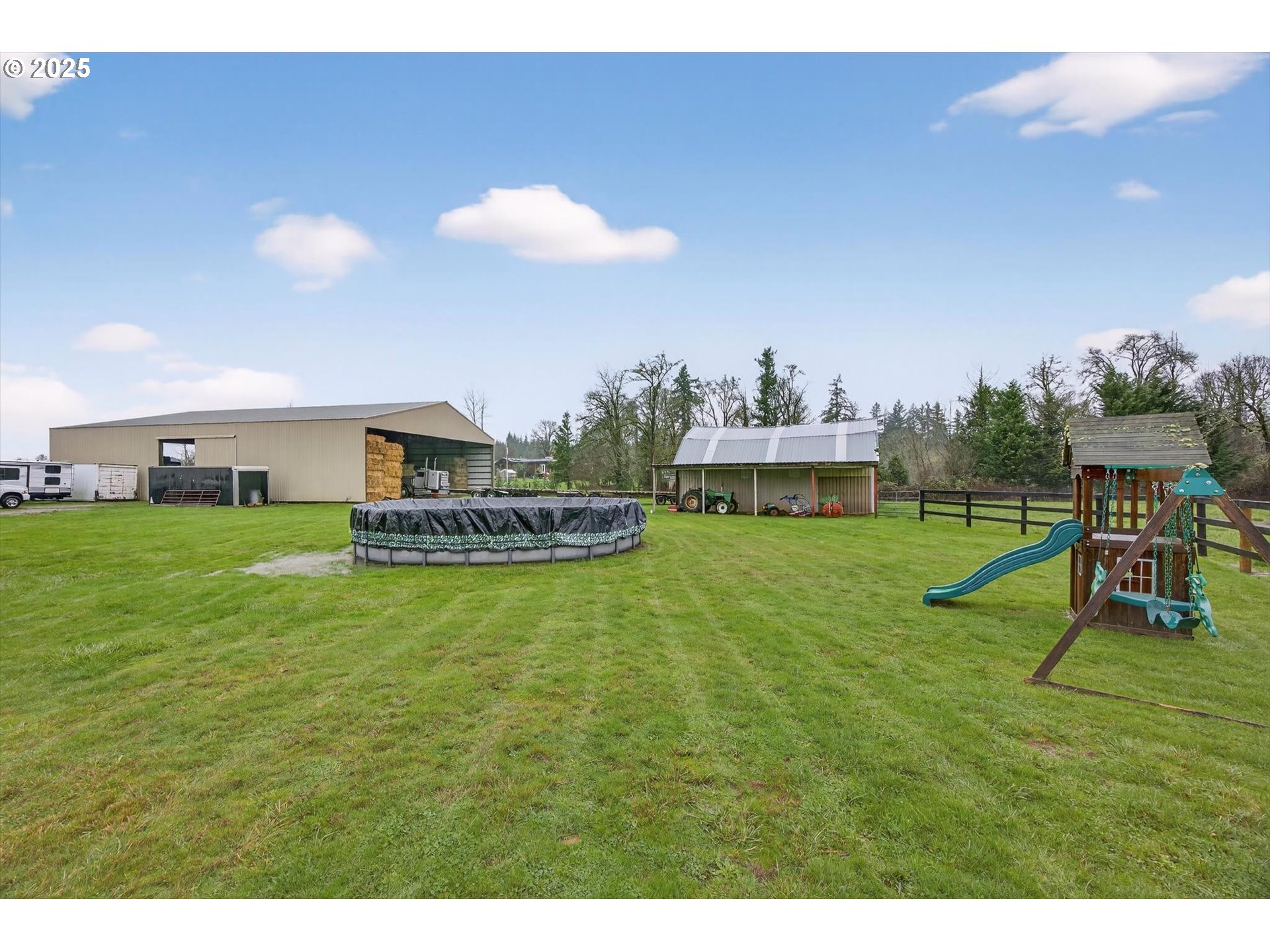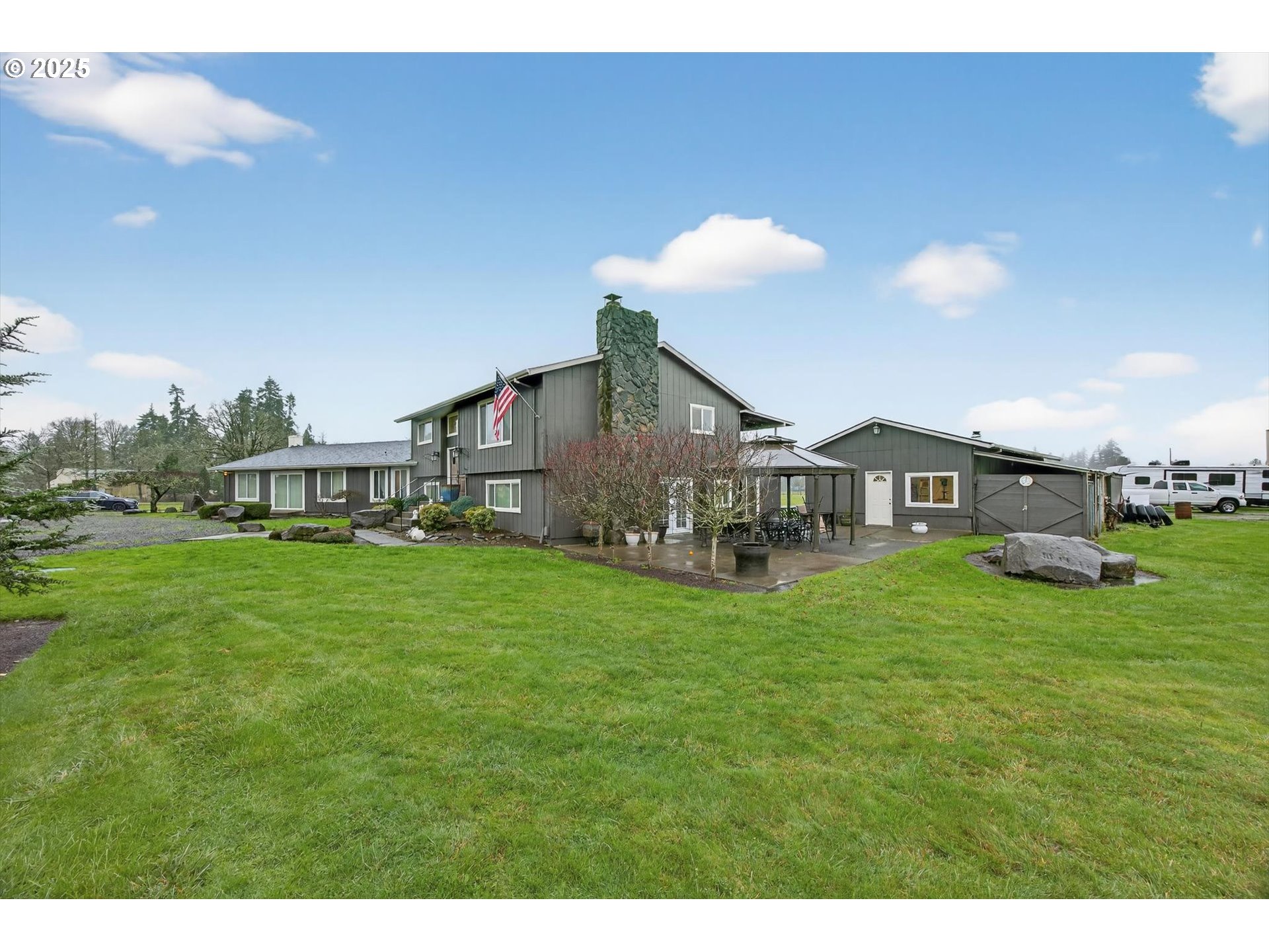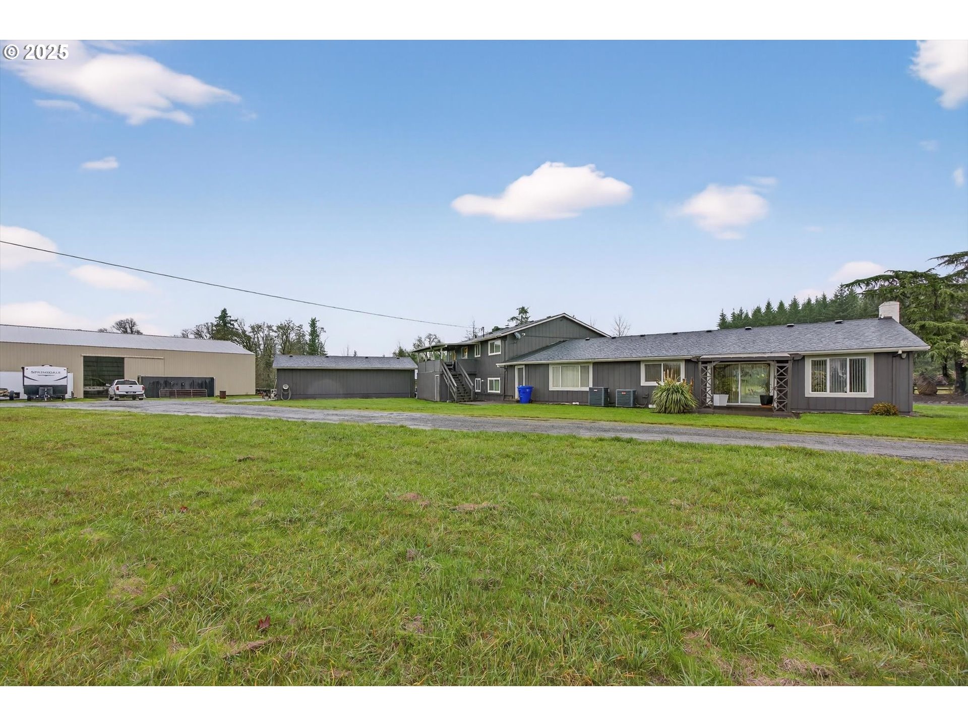 (503) 893-8874Discover this stunning 5.34-acre hilltop estate in Molalla, Oregon, offering breathtaking sunrise and sunset views and a perfect blend of comfort, space, and versatility. A private gated driveway opens to a wide turnaround with ample parking, making it ideal for residential living, entertaining, or multi-generational households. The main entrance leads to a landing with stairs accessing either the upper level or the spacious main floor, creating a flexible and inviting layout for modern living. The main floor includes four bedrooms—each with its own closet—plus a den and multiple exterior entrances, providing functional and accessible spaces. A soaring great room and a generous bonus room offer comfortable areas for living, recreation, or relaxation. Upstairs, the bright living room opens to a kitchen/dining combo with sliding doors onto a covered deck, perfect for outdoor entertaining and enjoying the hilltop views. The primary suite features a walk-in closet, creating a relaxing retreat within the open, airy layout. Recent updates include a new roof, new septic and drain field system, new water softener systems, a whole-home central vacuum system, exterior paint, and two heat pumps—ensuring modern comfort and peace of mind. Outdoors, enjoy a beautiful patio for entertaining, expansive well-kept lawn areas, and substantial outbuildings, including a well-equipped shop with workshop space, a versatile barn, and a large covered structure for storage. While ideal as a private residential estate, this Molalla acreage property also offers flexibility for a small residential care home or other multi-family arrangements.
