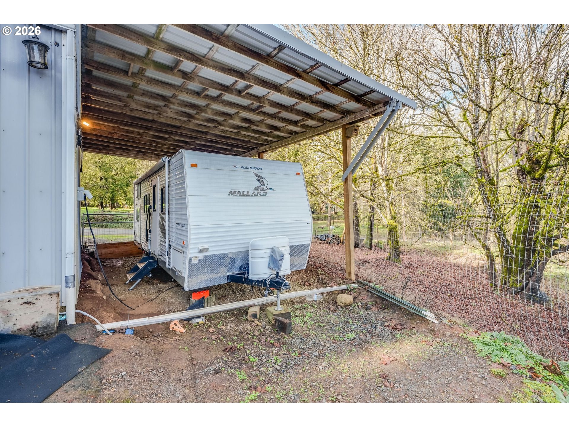 Nestled on 1.25 acres in Molalla, this 3-bedroom, 2-bath home offers peaceful country living with thoughtful updates throughout. A new 6-foot fence installed in 2023 at a cost of $17,000 surrounds the perimeter, providing privacy while mature Western Red Cedar trees create a serene, park-like setting. Enjoy outdoor living from the deck overlooking the pasture, perfect for relaxing or taking in the views, and gather around the firepit with a covered entertainment bar for year-round enjoyment. Animal lovers will appreciate the 20 x 36 four-stall barn with adjoining pasture. The spacious 20 x 60 shop features concrete floors, electricity, and water, offering excellent versatility for storage, hobbies, or equipment. Additional highlights include a new roof installed in 2020 and open, usable land that balances rural charm with everyday comfort. Leafguard gutters.