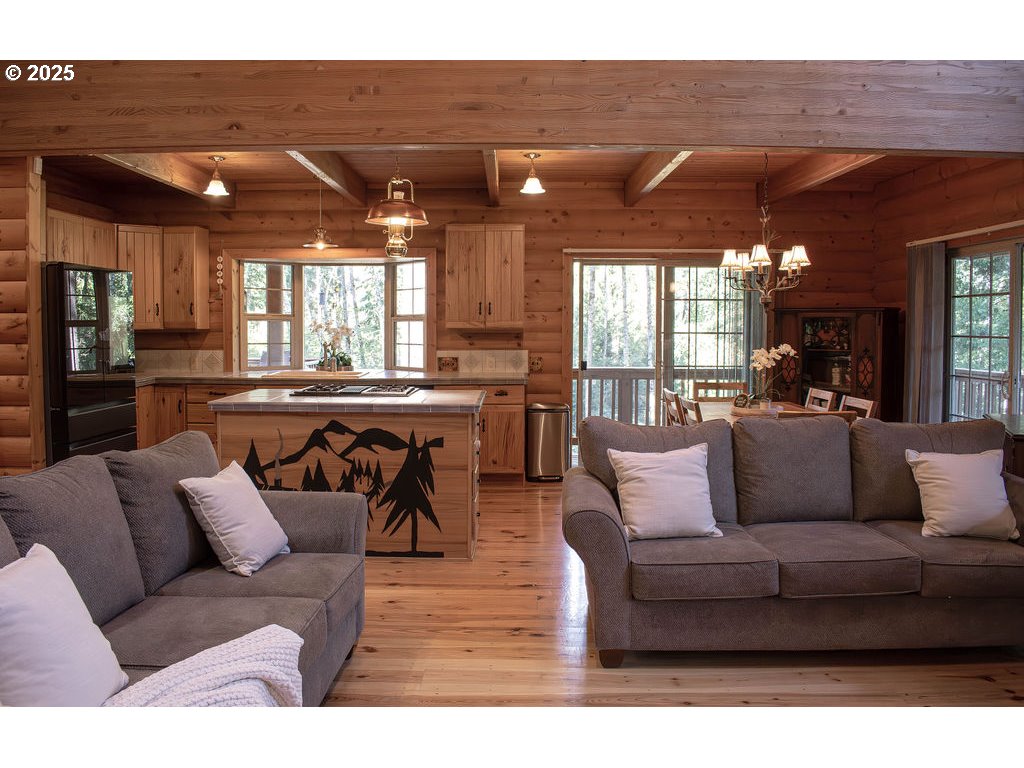 (503) 893-8874Welcome to your dream retreat! This stunning log cabin home nestled on a picturesque one-acre lot offers a rare blend of rustic beauty, modern amenities, and serene privacy. With over 3,000 square feet of thoughtfully designed living space, this residence is a perfect sanctuary for those seeking tranquility, space, and a deep connection to nature. Throughout the home, you’ll find gorgeous wood floors, handcrafted trim, and exposed beams that complement the natural setting and classic log cabin charm showcasing a sunlit open concept living area with vaulted ceilings. The kitchen seamlessly integrates with the dining and living spaces, creating a harmonious environment for both everyday living and entertaining. A gas fireplace enhances the warmth and ambiance of the living area for a cozy feel or enjoy the newly installed Central AC for the hot summer days. Adjacent, a sizable bedroom with a walk-in closet offers comfort and convenience. The main level also includes a generous family room with a second gas fireplace, a full bathroom, and a dedicated laundry room. Upstairs, a versatile loft overlooks the main living area, providing flexible space for bonus playroom or home office. The expansive primary bedroom features a walk-in closet, a private sitting area near a full bathroom, offering a peaceful retreat for owners. Imagine waking up to the sounds of Bee Creek flowing through the entire property, the crisp morning air filled with birdsong, and sunlight filtering through towering trees. This home’s wrap-around covered porch invites you to sip your morning coffee while watching deer and other wildlife wander through your yard. Whether you crave peaceful solitude or love to entertain, this property provides endless opportunities with two expansive decks to enjoy the outdoors year-round. Spacious covered parking with a built-in loft for extra storage. Schedule your private tour today and experience the magic of this extraordinary waterfront log cabin retreat.