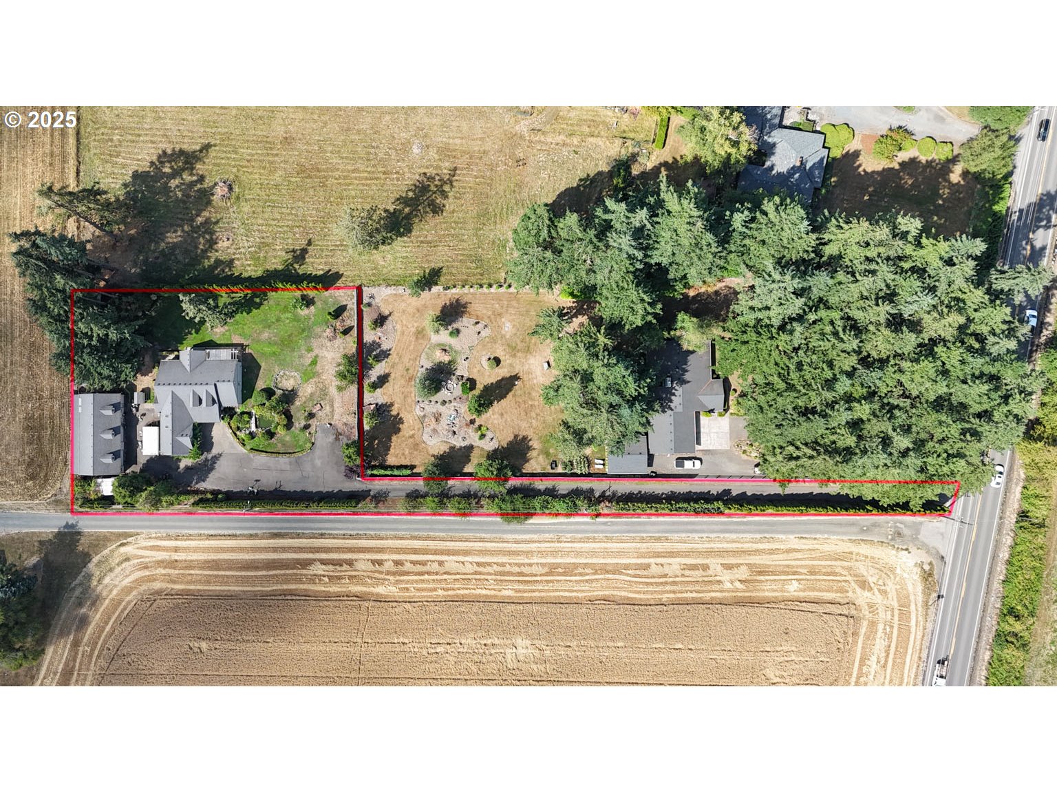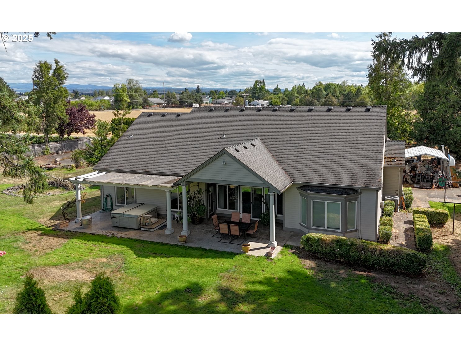 (503) 893-8874Lovely custom home at the end of a long paved driveway lined with fruit trees, surrounded by picturesque farmland in a great commute location. This 2,714 sq. ft. home offers 3 bedrooms and 2.1 baths on 1.02 acres, with the majority of the living space—including all bedrooms and the primary suite—on the main level. The huge open floor plan features high ceilings throughout, a kitchen with granite counters and stainless appliances, a family room with slider to the covered back patio, and upstairs a spacious bonus room with a wet bar—perfect for entertaining or relaxing.Enjoy two electric fireplaces, RV parking, an irrigated yard, and outdoor features that make this property truly special—playhouse, chicken coop, and a beautiful pond with a charming bridge. Large 44' x 27' shop (1,188 SF) includes 432 SF finished area with full bath, common bedroom, and kitchen eating area—ideal for hobbies or workspace; however, per county records, these spaces are not approved for residential use. Inside, the laundry room boasts a large sauna for your relaxation and wellness. With a 2-car garage, ample parking, and a peaceful rural setting just minutes from town, this is a must-see property that blends comfort, functionality, and charm.