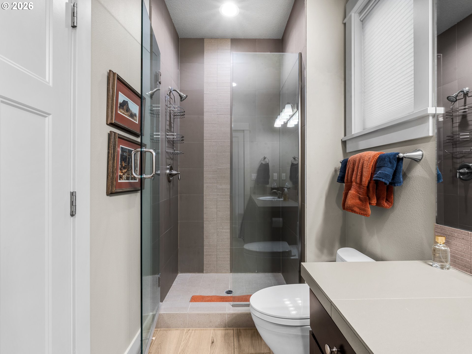 Welcome to Parker Crest in West Linn, where I sit tucked into a quiet, established neighborhood surrounded by trees and everyday convenience. I am a thoughtfully designed daylight ranch offering a flexible layout that lives comfortably across two levels. On my main level, you will find new wood-look Porcelain tile, a light filled great room with vaulted ceilings, and a seamless connection between living, dining, and kitchen spaces. My living room is anchored by a gas fireplace with built-ins and opens to the covered deck, overlooking the greenspace that backs the home offering a peaceful outdoor setting. My kitchen is designed for both daily living and gathering, featuring extensive cabinetry, solid surface countertops, all new Thermador stainless steel appliances, including a five-burner gas cooktop, built-in microwave and oven, range hood, pantry, and an island with an eat-bar. My primary bedroom is an ensuite on the main level, ideal for those seeking no stairs, and features vaulted ceilings, a ceiling fan, a walk in closet with custom organization, and direct access to the covered back deck. The ensuite bathroom offers double sinks, soaking tub, and a walk-in shower; both main level bathrooms feature new Toto low water use toilets. My lower level offers a spacious family room with access to a covered patio and backyard, along with the third & fourth bedrooms for separation and versatility. Outside, I offer a fully-fenced yard with garden space and mature trees. A two-car attached garage and driveway parking provide convenience, while forced air heating, central air, and gas utilities support year-round comfort. Located near Sunset Elementary School, Rosemont Ridge Middle School, and West Linn High School, with easy access to Mary S. Young Park, Camassia Natural Area, Willamette Park, and nearby shopping and dining.