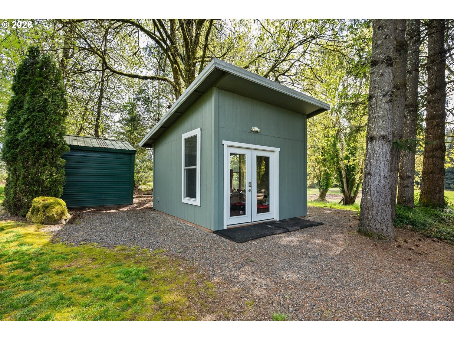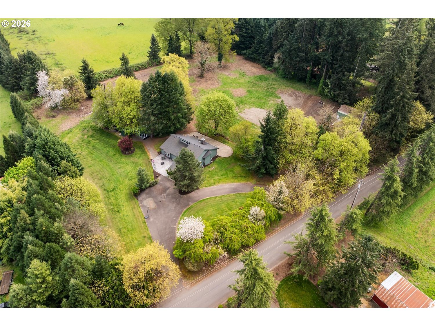 Set on 4.5 acres of flat, usable land, this property offers a rare opportunity to create the kind of space that is increasingly hard to find. Tucked away near Hebb Park and the Willamette River, the setting combines privacy, natural beauty, and everyday convenience, with a boat launch just about a mile away and plenty of room to store your boat and river gear.The land is the true highlight, with open grassy areas, pasture space, mature trees, and established landscaping that bring both function and beauty together. There is room here for animals, projects, outdoor living, and the flexibility to shape the property around your lifestyle, including a chicken coop already in place.Inside, the home offers 3 bedrooms and 2 bathrooms with a layout that flows naturally from the entry into the family room and dining area, continuing into a spacious kitchen and kitchen nook. Above the kitchen, an attic space offers approximately 700 square feet of unfinished area, creating potential for future expansion or storage.An inviting front patio and expansive back deck create multiple places to relax, entertain, and take in the surroundings. The shop/barn outbuilding includes power and a loft, adding versatility for projects, storage, or hobbies, along with a lean-to for additional covered space. A separate weight room or office area is equipped with power, heat, insulation, and internet, along with a French door entry and small loft, providing a flexible space for work or recreation.A new HVAC system installed in 2026 provides an important system update. With its combination of usable land, functional improvements, and a setting that feels removed while still connected, this property offers space to live, create, and enjoy in a way that is increasingly hard to find.