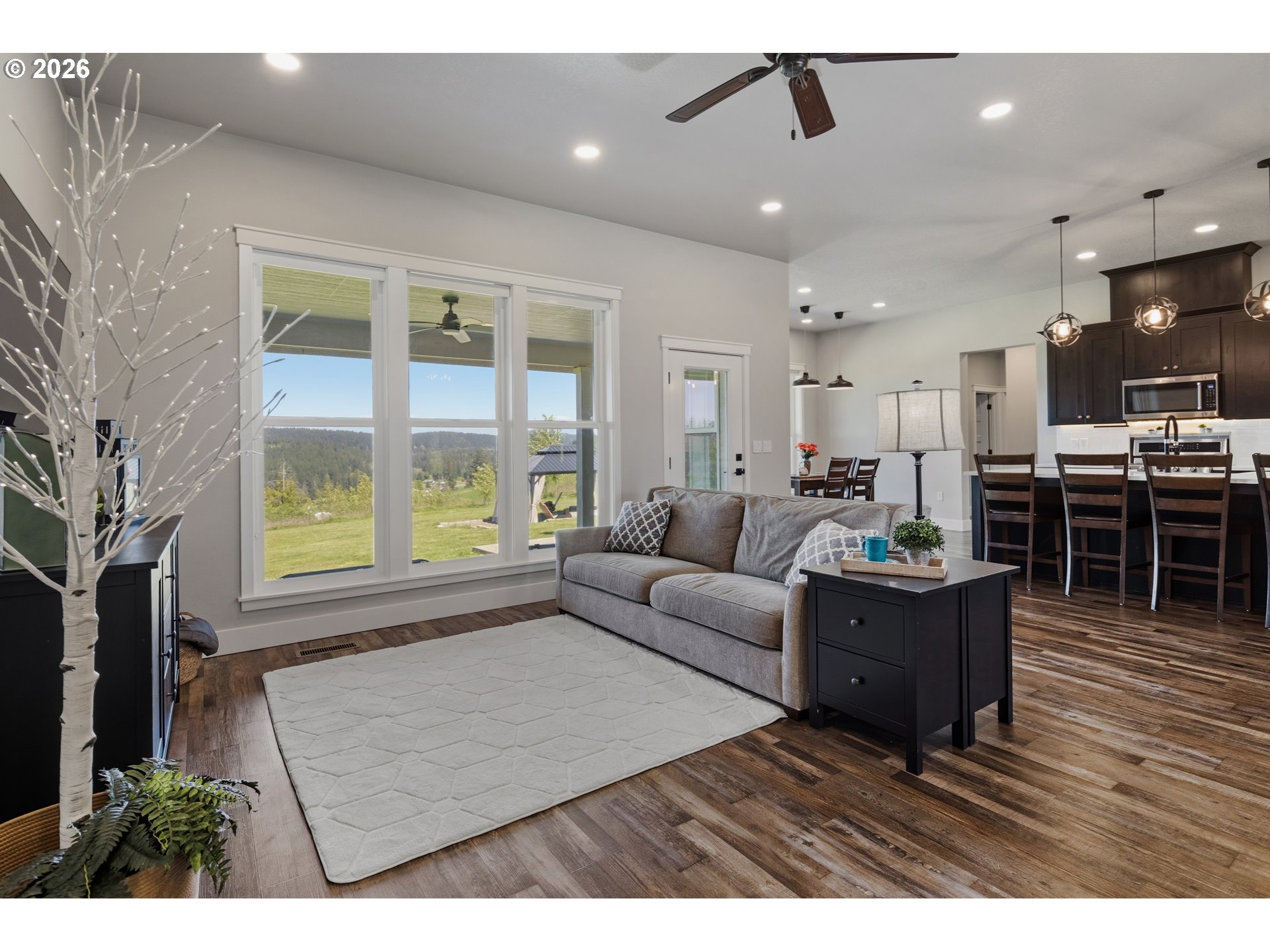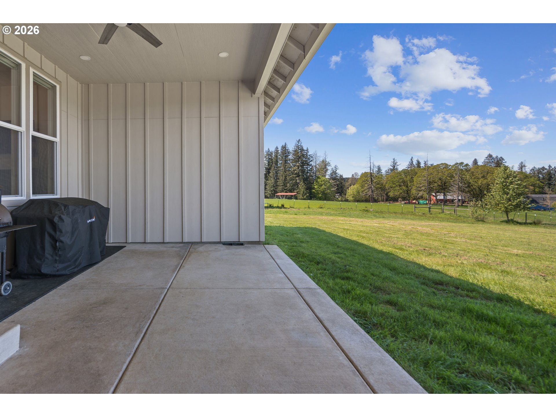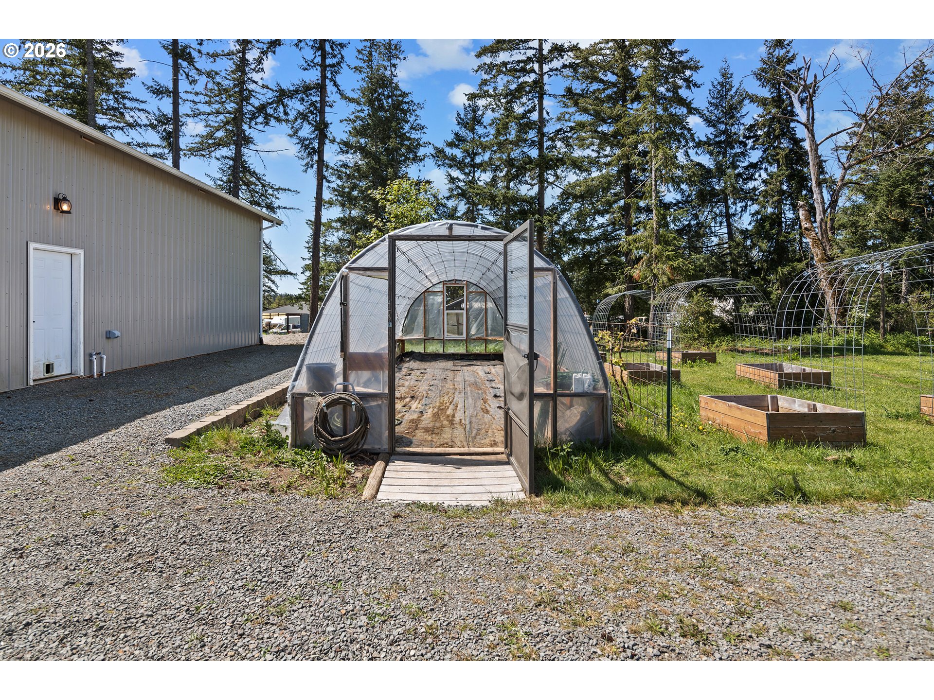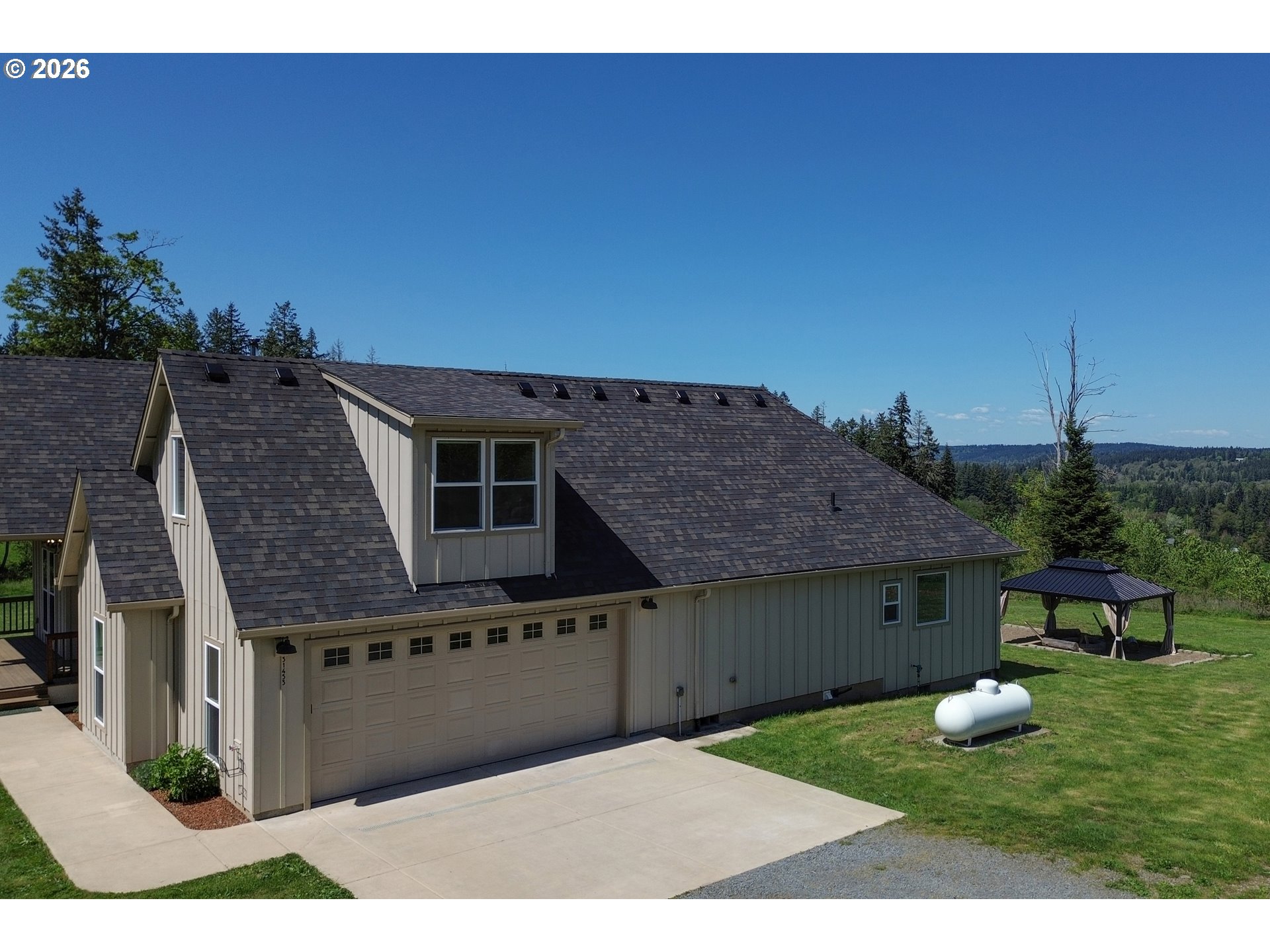 Set on 3 private, usable acres just minutes from Molalla, this newer 2021-built home offers a seamless blend of modern comfort and functional rural living. With 4 bedrooms and 2.5 baths on the main level—including a spacious primary suite—plus an additional bedroom and full bath upstairs, the layout works well for multi-generational living, guests, or a dedicated work-from-home setup. The kitchen is both stylish and practical, featuring a large quartz island with seating, rich dark cabinetry, stainless steel appliances, and a butler’s pantry. Just beyond, the living and dining areas are filled with natural light, where large picture windows frame sweeping views of the surrounding hills—creating an inviting space to gather or unwind. The primary suite offers a beautifully finished bath featuring double vanities with quartz counters, a walk-in shower, a generous walk-in closet, and a built-in seating area. Outside, the property is fully fenced and cross-fenced with space for animals, gardening, or simply enjoying the setting. A greenhouse supports year-round growing, while the impressive 30x40 shop—with concrete floor, power, and water—adds flexibility for projects, storage, or business use. Ideal location, close to town and about 40 minutes drive from Portland International Airport. An exceptional property and opportunity!