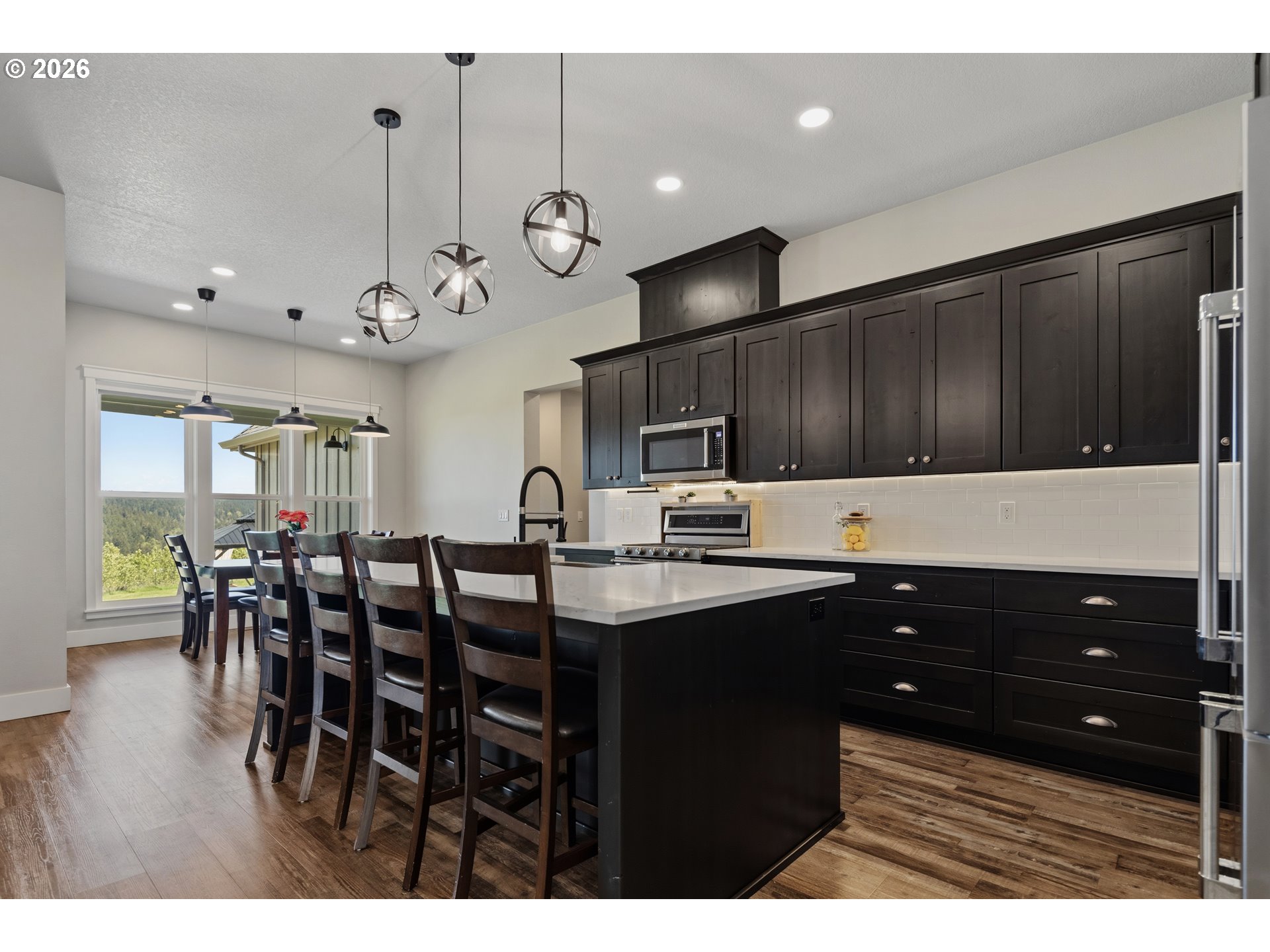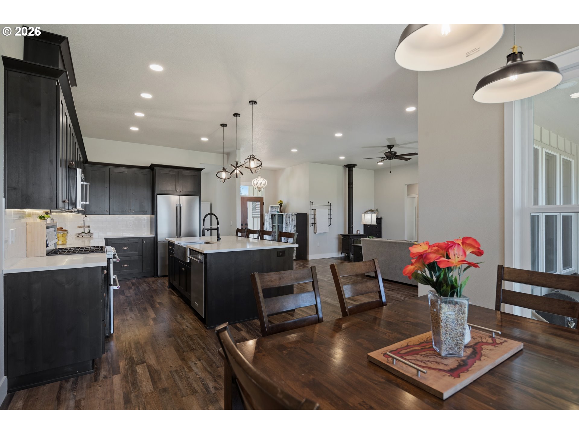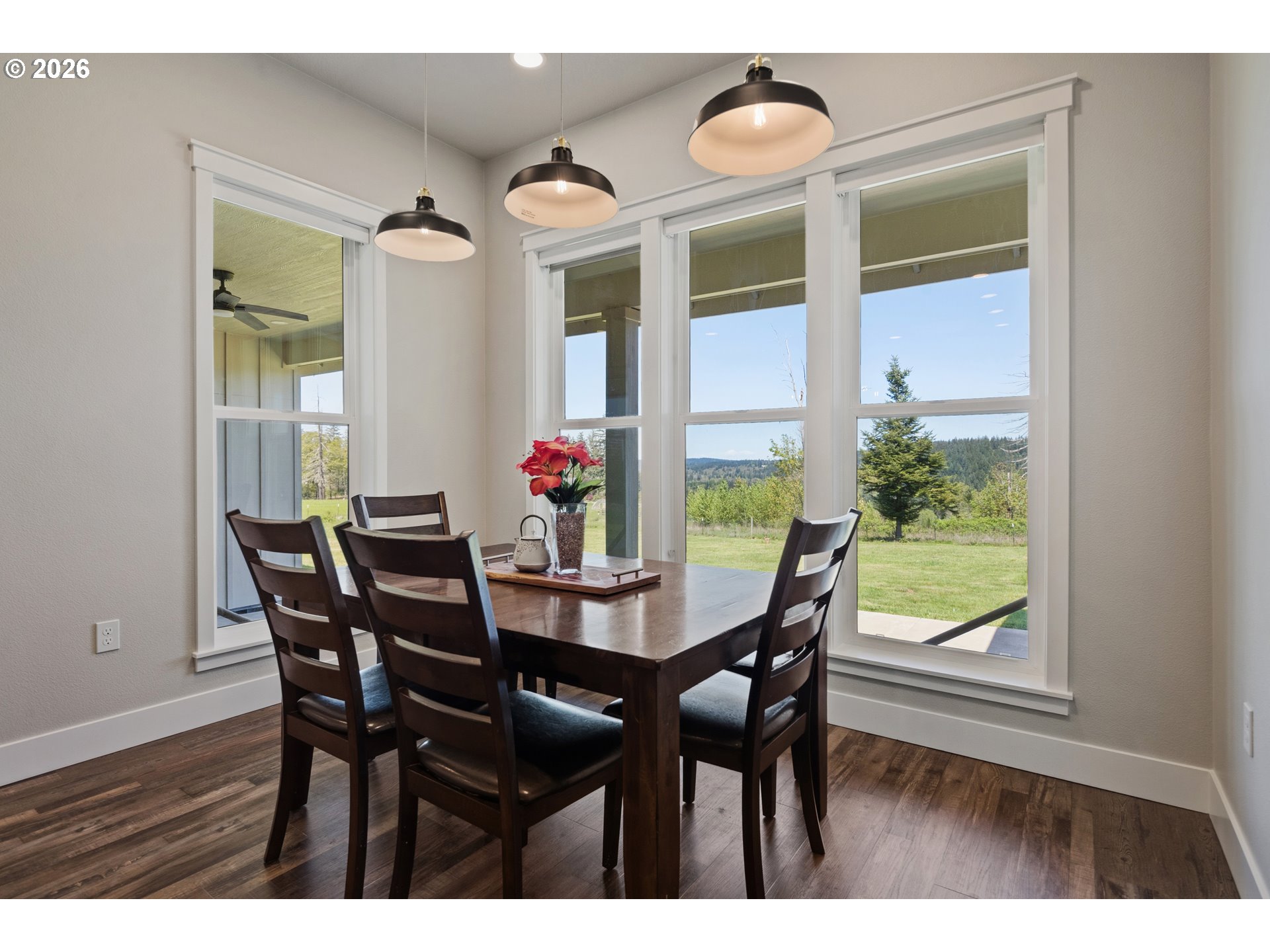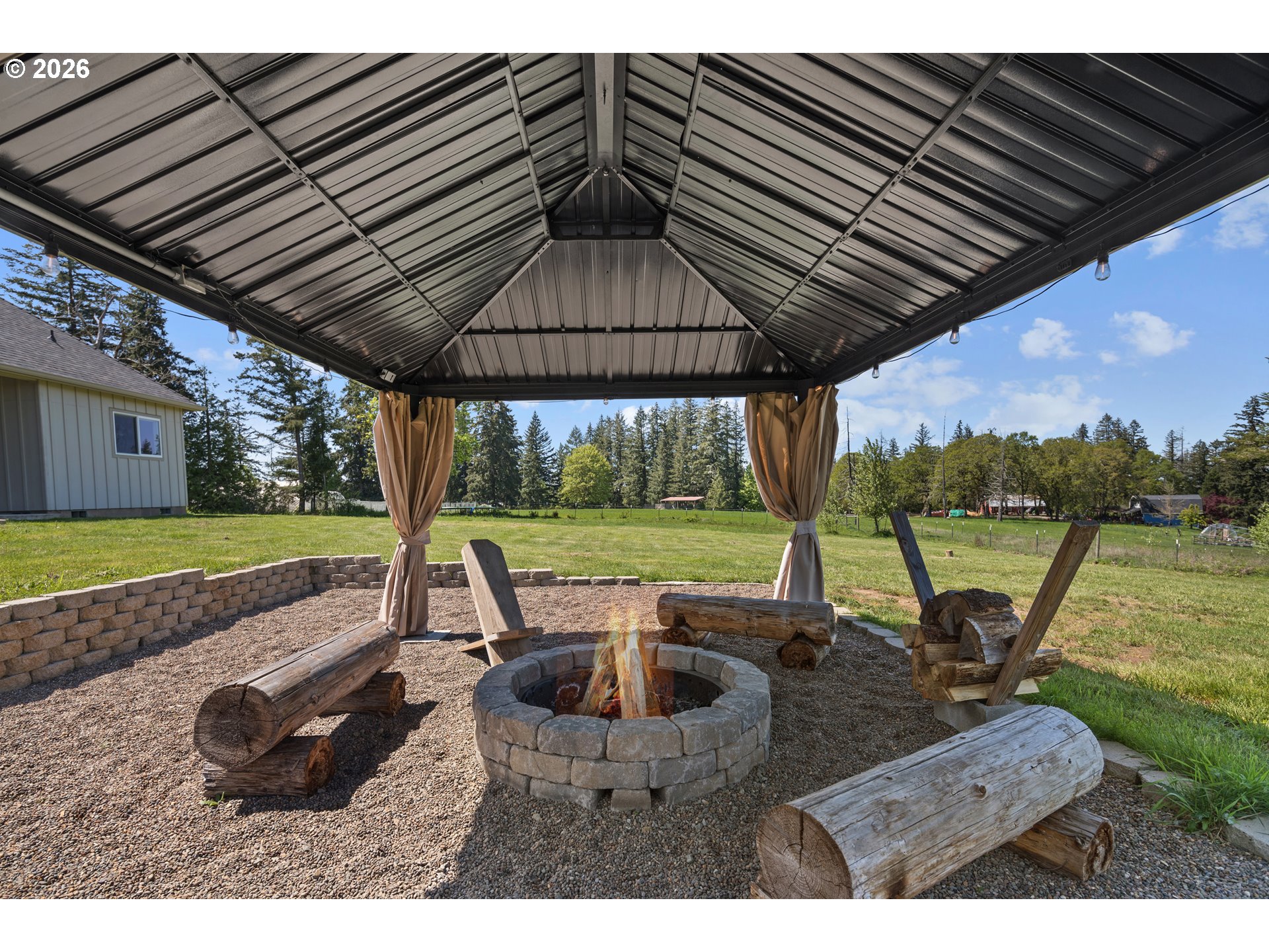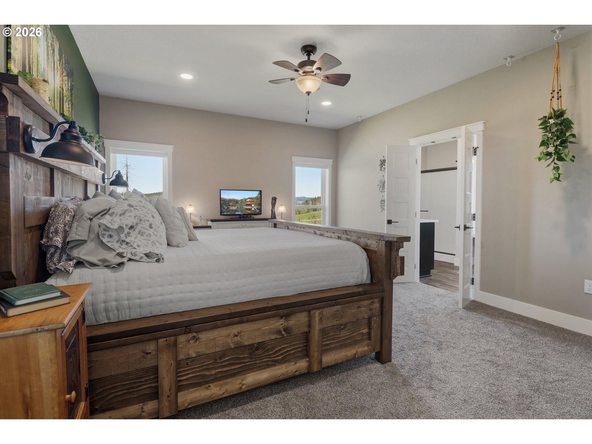 Set on 3 private, usable acres just minutes from Molalla, this newer 2021-built home offers a seamless blend of modern comfort and functional rural living. With 4 bedrooms and 2.5 baths on the main level—including a spacious primary suite—plus an additional bedroom and full bath upstairs, the layout works well for multi-generational living, guests, or a dedicated work-from-home setup. The kitchen is both stylish and practical, featuring a large quartz island with seating, rich dark cabinetry, stainless steel appliances, and a butler’s pantry. Just beyond, the living and dining areas are filled with natural light, where large picture windows frame sweeping views of the surrounding hills—creating an inviting space to gather or unwind. The primary suite offers a beautifully finished bath featuring double vanities with quartz counters, a walk-in shower, a generous walk-in closet, and a built-in seating area. Outside, the property is fully fenced and cross-fenced with space for animals, gardening, or simply enjoying the setting. A greenhouse supports year-round growing, while the impressive 30x40 shop—with concrete floor, power, and water—adds flexibility for projects, storage, or business use. Ideal location, close to town and about 40 minutes drive from Portland International Airport. An exceptional property and opportunity!