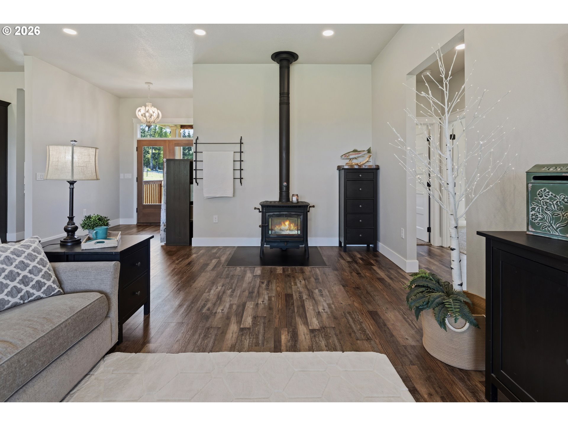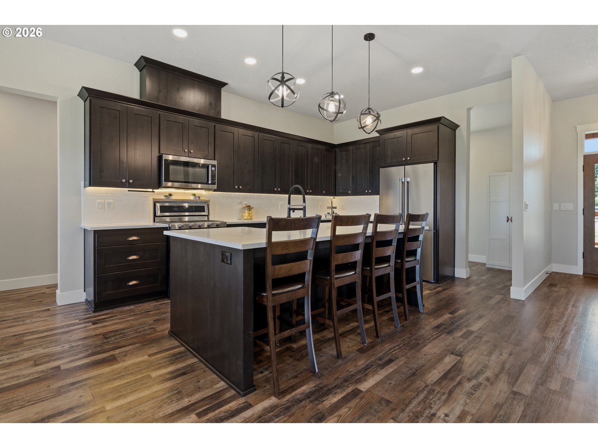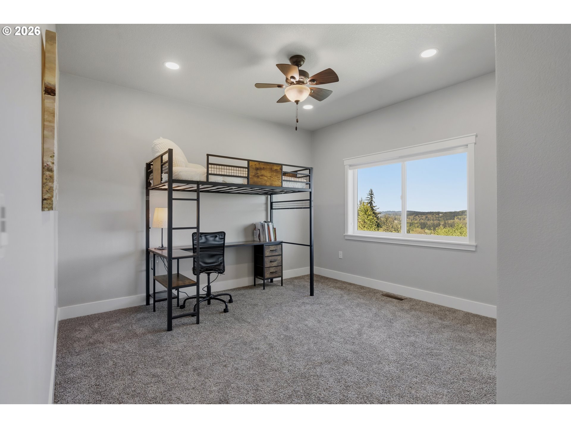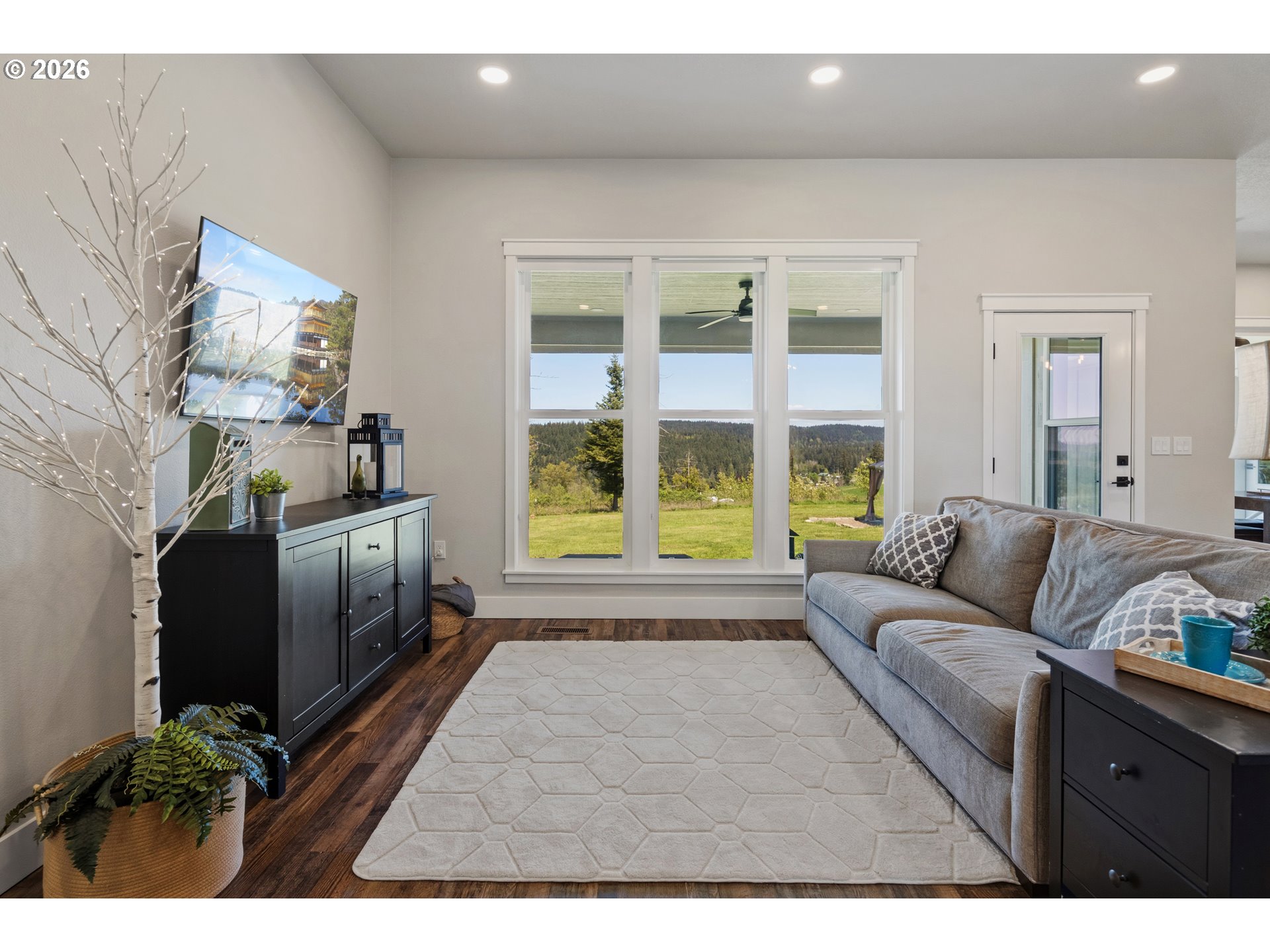 Set on 3 private, usable acres just minutes from Molalla, this newer 2021-built home offers a seamless blend of modern comfort and functional rural living. With 4 bedrooms and 2.5 baths on the main level—including a spacious primary suite—plus an additional bedroom and full bath upstairs, the layout works well for multi-generational living, guests, or a dedicated work-from-home setup. The kitchen is both stylish and practical, featuring a large quartz island with seating, rich dark cabinetry, stainless steel appliances, and a butler’s pantry. Just beyond, the living and dining areas are filled with natural light, where large picture windows frame sweeping views of the surrounding hills—creating an inviting space to gather or unwind. The primary suite offers a beautifully finished bath featuring double vanities with quartz counters, a walk-in shower, a generous walk-in closet, and a built-in seating area. Outside, the property is fully fenced and cross-fenced with space for animals, gardening, or simply enjoying the setting. A greenhouse supports year-round growing, while the impressive 30x40 shop—with concrete floor, power, and water—adds flexibility for projects, storage, or business use. Ideal location, close to town and about 40 minutes drive from Portland International Airport. An exceptional property and opportunity!