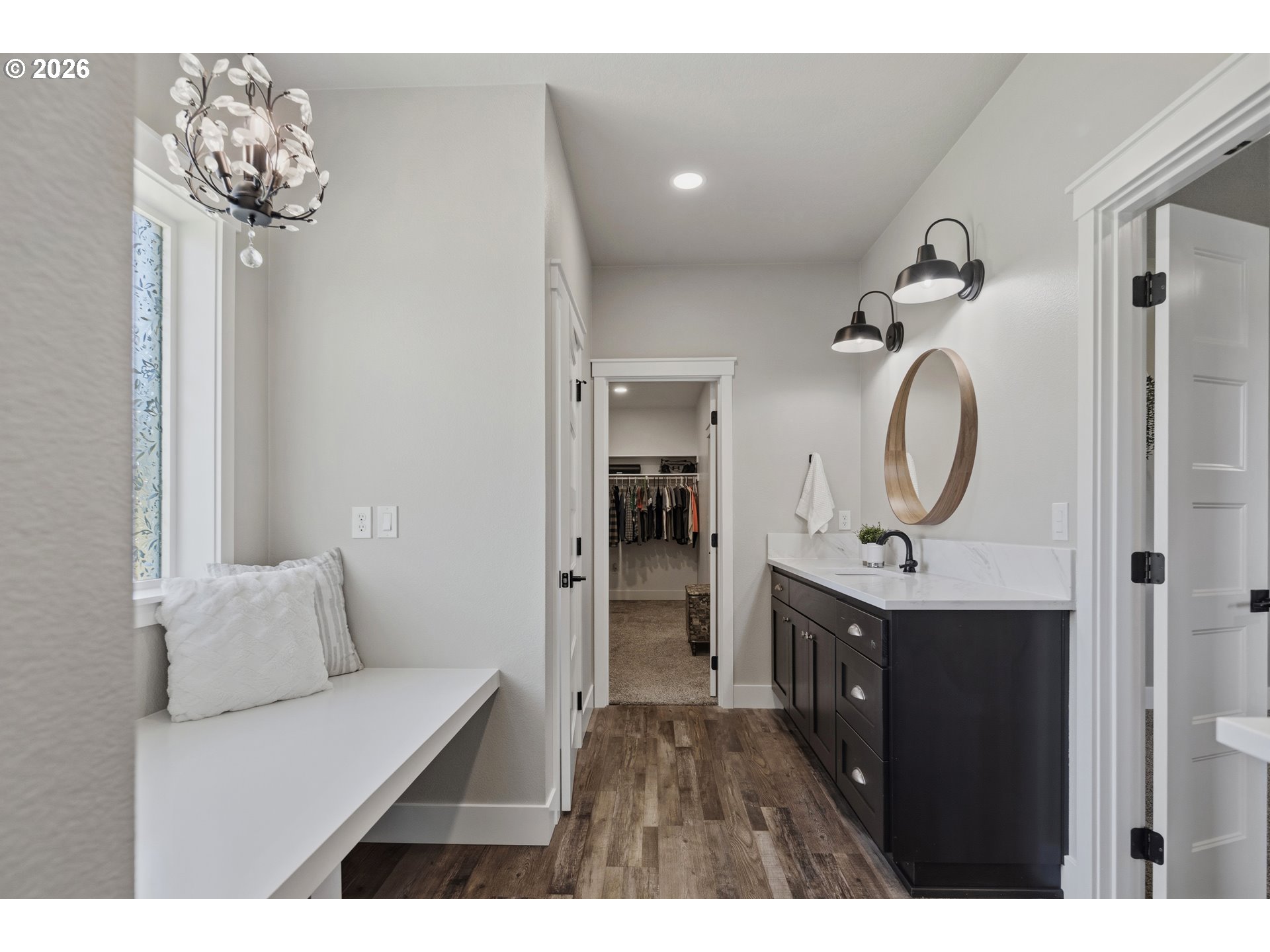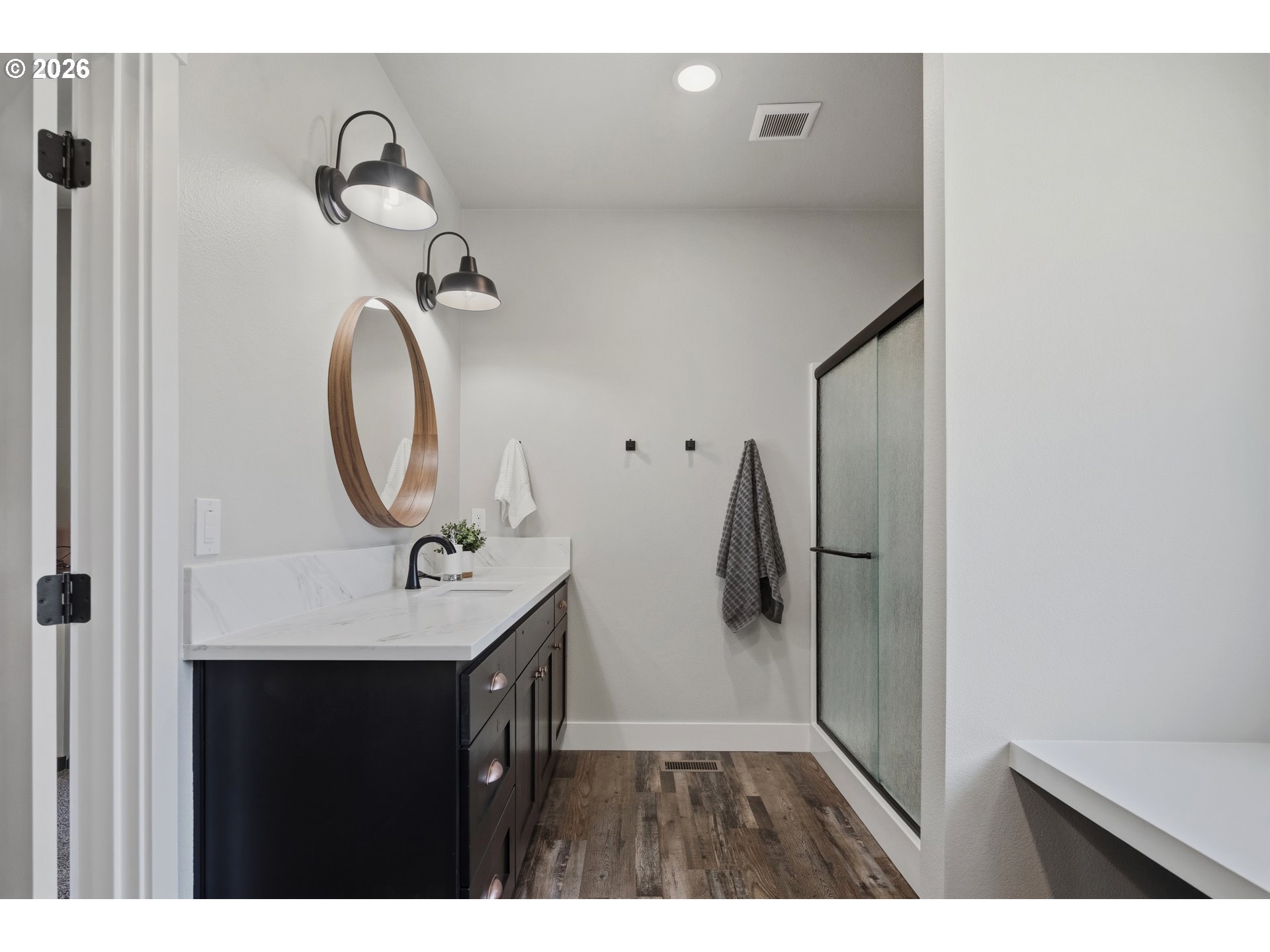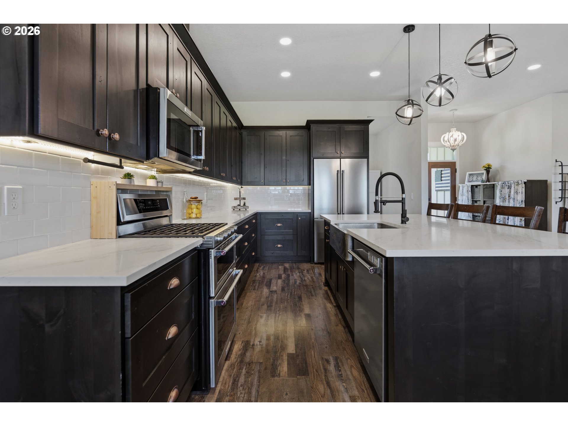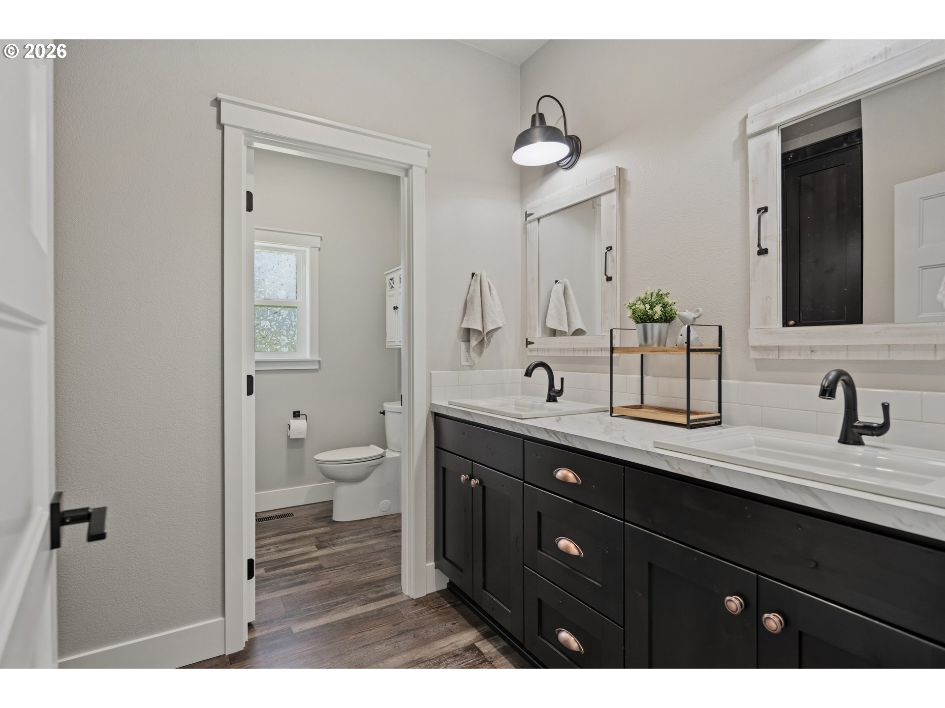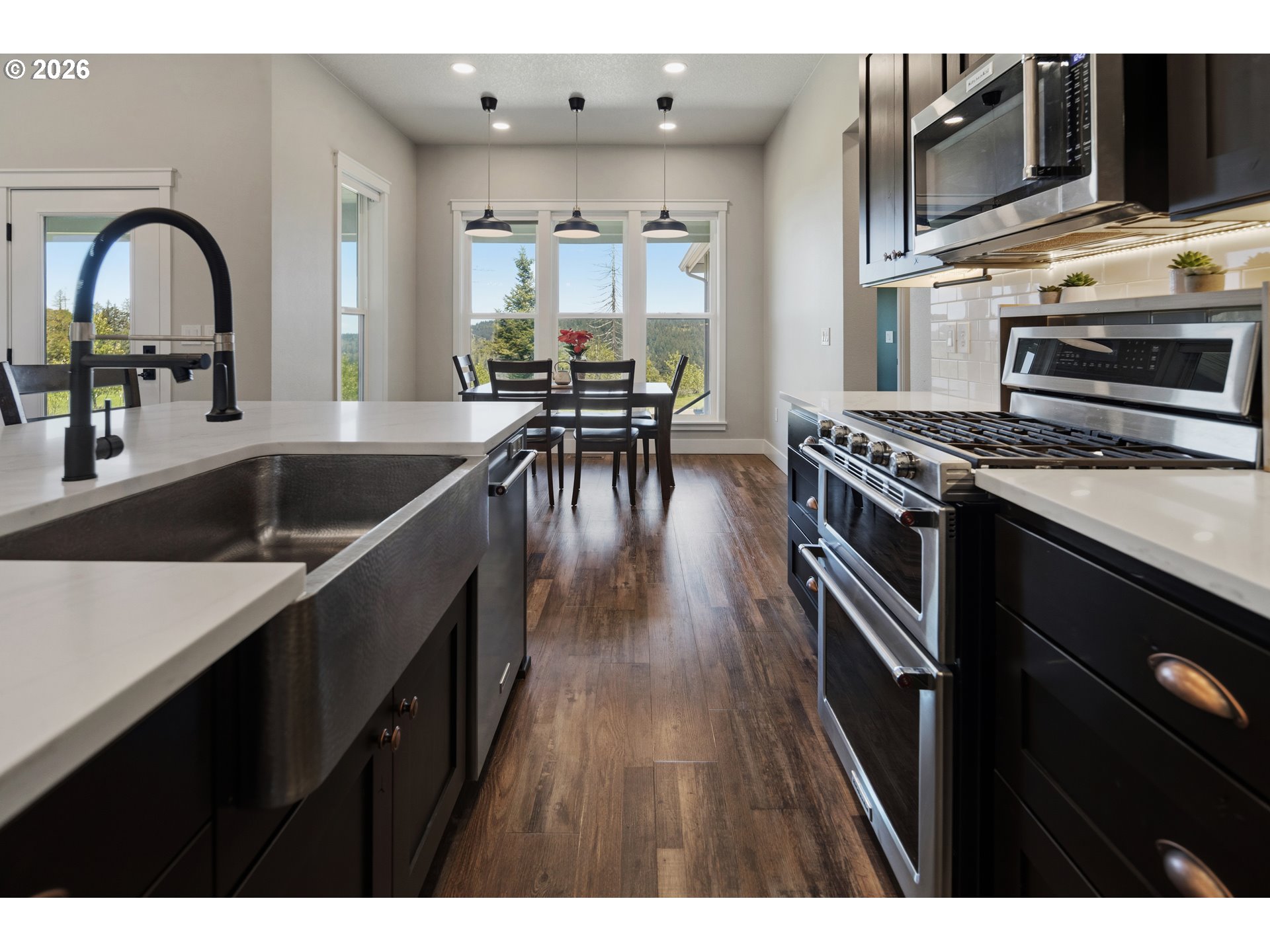 Set on 3 private, usable acres just minutes from Molalla, this newer 2021-built home offers a seamless blend of modern comfort and functional rural living. With 4 bedrooms and 2.5 baths on the main level—including a spacious primary suite—plus an additional bedroom and full bath upstairs, the layout works well for multi-generational living, guests, or a dedicated work-from-home setup. The kitchen is both stylish and practical, featuring a large quartz island with seating, rich dark cabinetry, stainless steel appliances, and a butler’s pantry. Just beyond, the living and dining areas are filled with natural light, where large picture windows frame sweeping views of the surrounding hills—creating an inviting space to gather or unwind. The primary suite offers a beautifully finished bath featuring double vanities with quartz counters, a walk-in shower, a generous walk-in closet, and a built-in seating area. Outside, the property is fully fenced and cross-fenced with space for animals, gardening, or simply enjoying the setting. A greenhouse supports year-round growing, while the impressive 30x40 shop—with concrete floor, power, and water—adds flexibility for projects, storage, or business use. Ideal location, close to town and about 40 minutes drive from Portland International Airport. An exceptional property and opportunity!