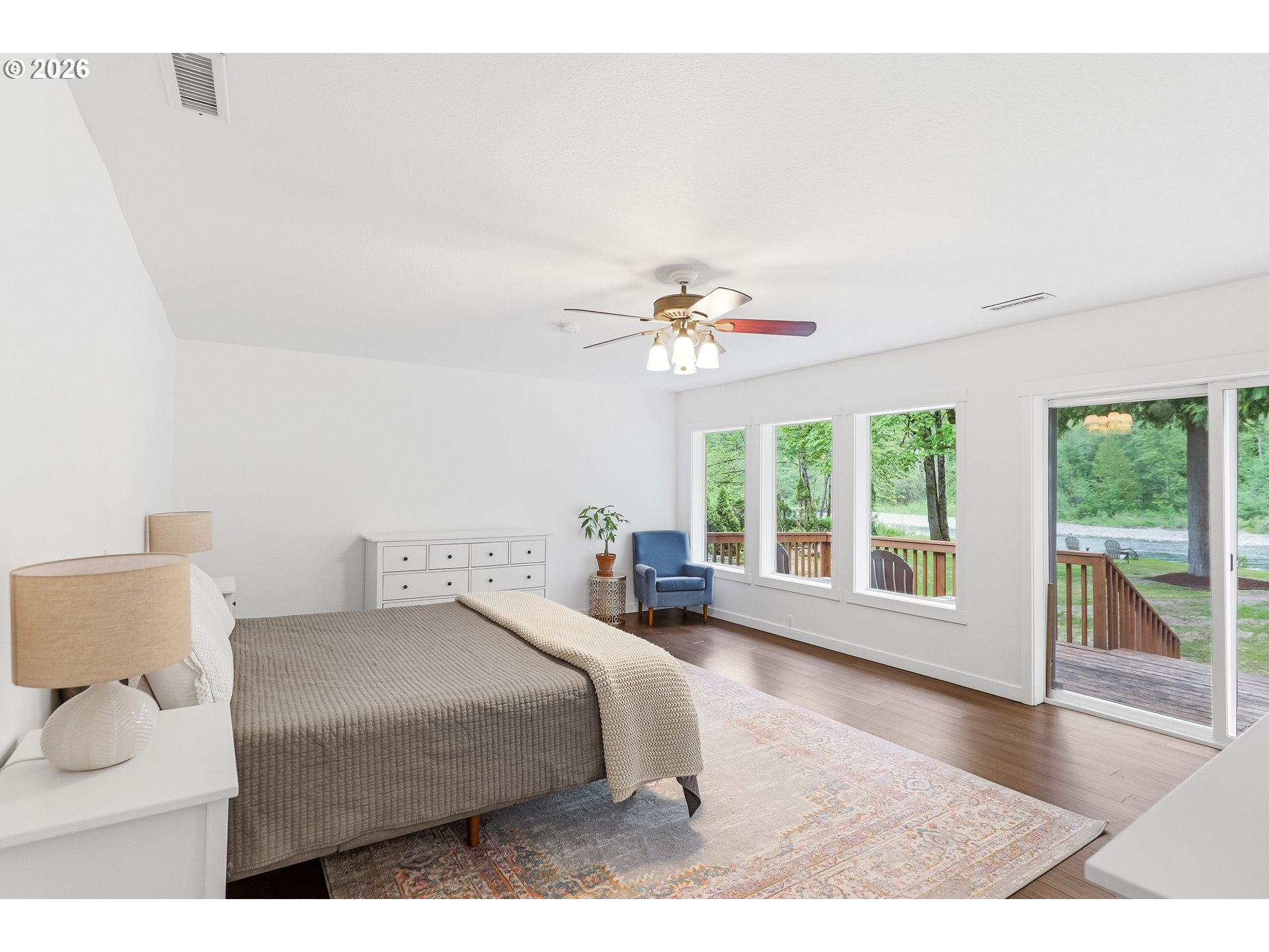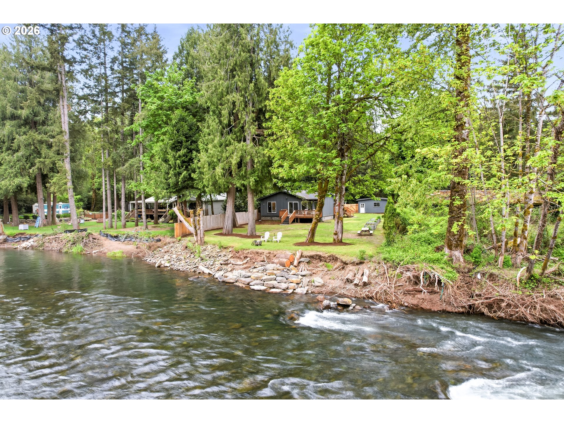 An exceptional riverfront retreat offering approximately 70 feet of private frontage and a lifestyle that feels worlds away. Set on a generous 0.52-acre lot at the end of a quiet, dead-end street, this property captures the essence of peaceful waterfront living—where the gentle sound of the river becomes your daily backdrop. Spend your summers entertaining on multiple outdoor spaces, including two expansive decks for BBQs, gathering with friends or simply relaxing as the river flows by. Tend to your garden, enjoy direct shoreline access or start your mornings on the cozy front porch with a cup of coffee. With nearby parks and a convenient boat ramp, outdoor recreation is always within reach. Inside, the home is beautifully updated and move-in ready, featuring bamboo flooring throughout the main areas and a light-filled, open concept layout designed for both comfort and connection. The open kitchen with island flows effortlessly into the main living and dining areas—perfect for entertaining and everyday living. The primary suite is a true showstopper—wake up to serene river views, then unwind in the spa-like bath complete with a soaking tub and walk-in shower. Recent upgrades include a new furnace and heat pump with A/C (2021), updated electrical panel, and a whole-house water filtration system (2023), offering modern efficiency and peace of mind. Added benefit: the current flood insurance policy is transferable—an increasingly valuable advantage for waterfront properties! A rare opportunity to own a thoughtfully upgraded riverfront home that seamlessly blends luxury, tranquility, and everyday livability.