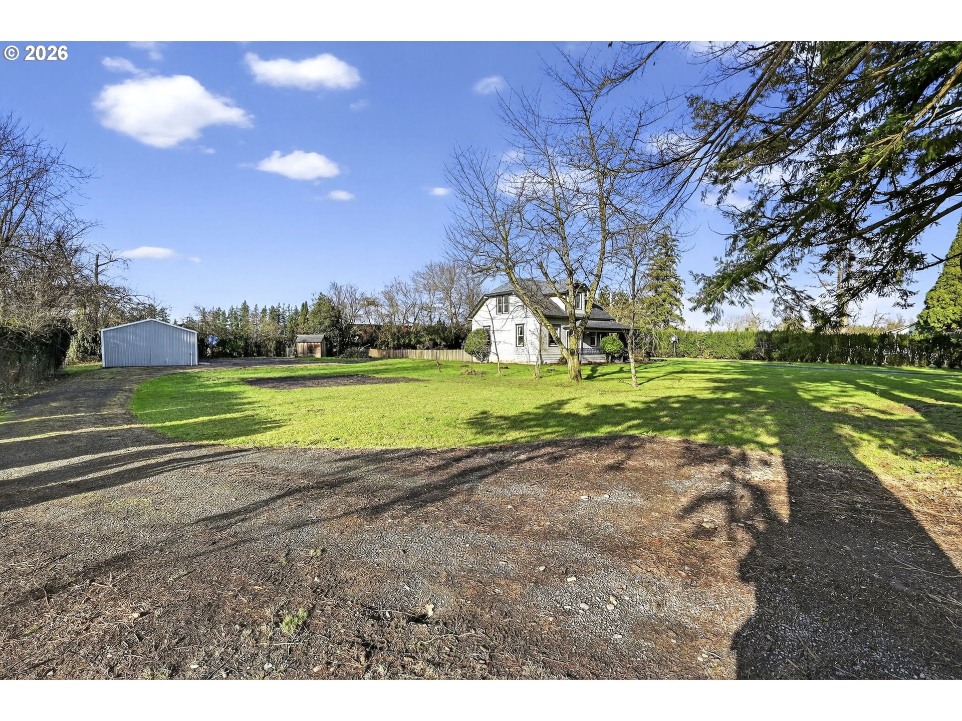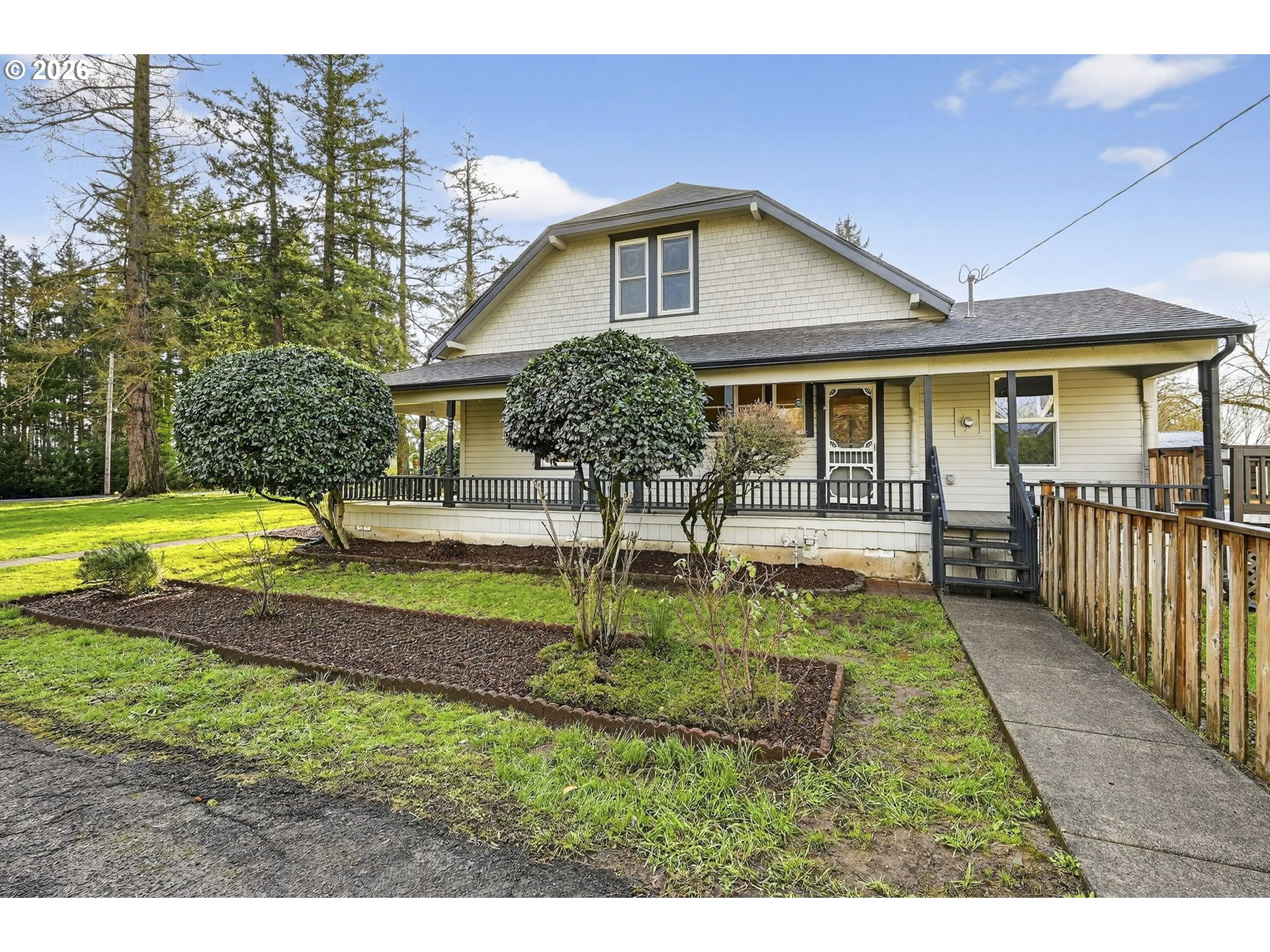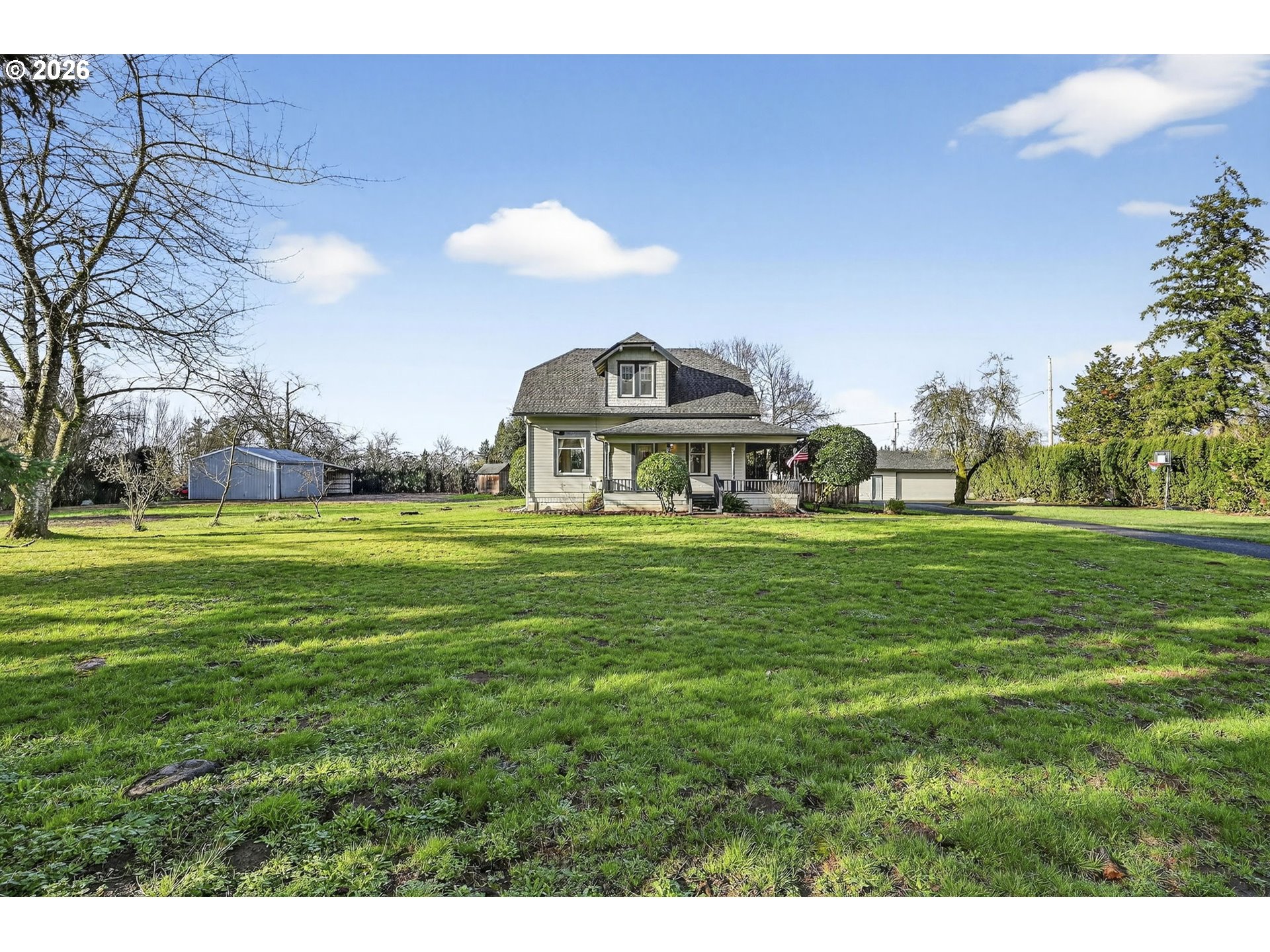 (503) 893-8874Charming 1915 farmhouse on just under an acre, full of character you rarely find anymore. High ceilings throughout the main floor create a grand elegance feel, with beautiful box beams in the dining room and classic built-ins that show quality craftsmanship along with adding warmth and charm. Gorgeous well maintained fir floors along with Marmoleum in the kitchen/sitting room for a resilient eco-conscious low maintenance floor.Explore the wraparound porch and west facing large deck, perfect for watching gorgeous sunsets, relaxing or entertaining, along with a fenced backyard and garden space ready for your green thumb. There’s no shortage of storage with generous attic spaces, plus a generator hookup for peace of mind. Fiber internet & Natural Gas! The property offers incredible versatility with a 20x24 shop w/ 220 power, RV parking, and a detached garage with additional space ideal for guests, hobbies, a home office, or creative studio. Whether you need room to work, store toys, or host visitors, this property delivers. A rare blend of farmhouse charm, functional outbuildings and room to breathe — all wrapped into a truly special home in a great community.