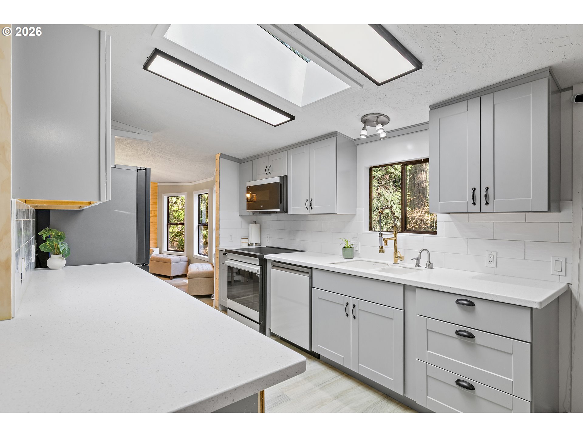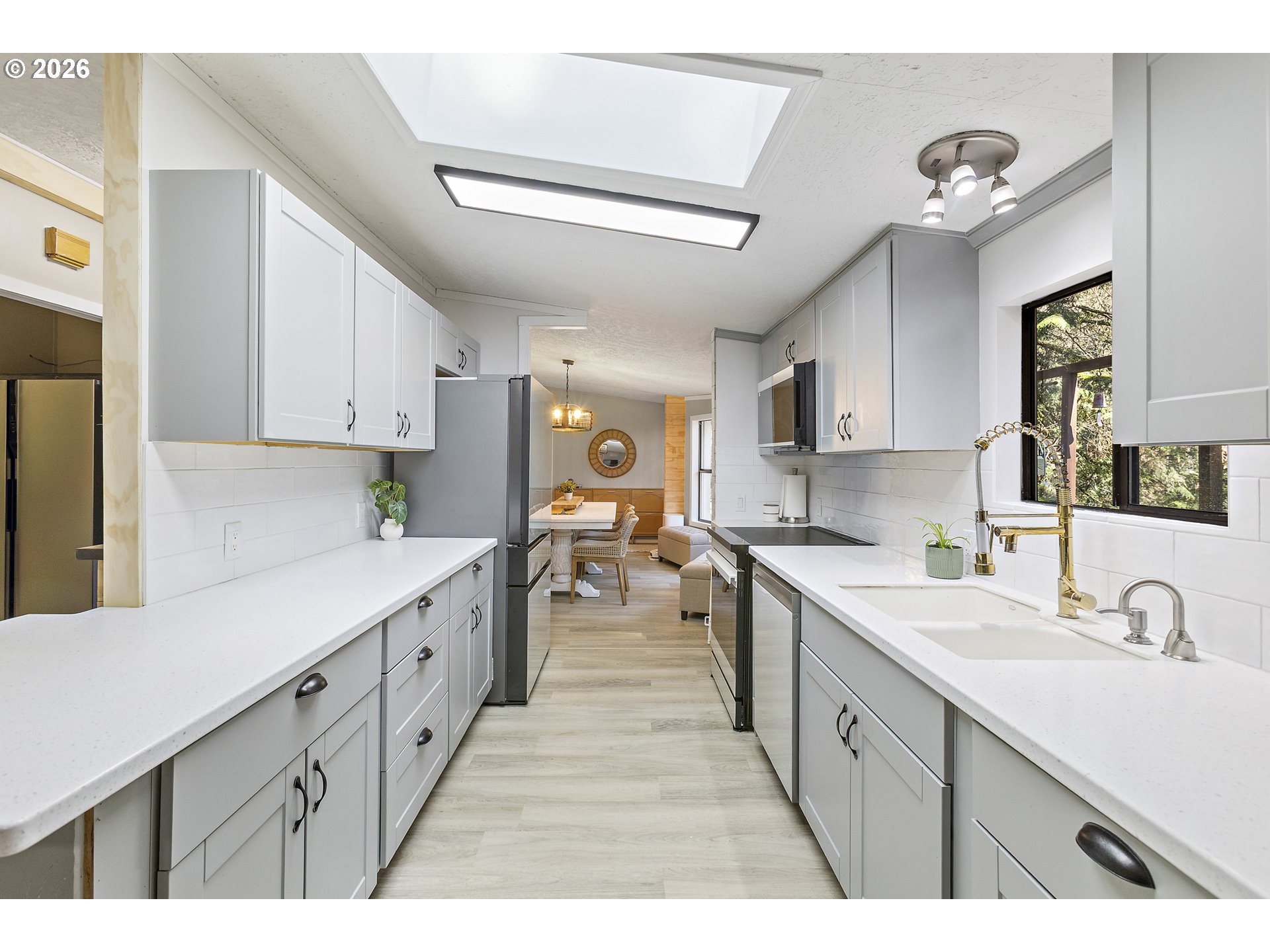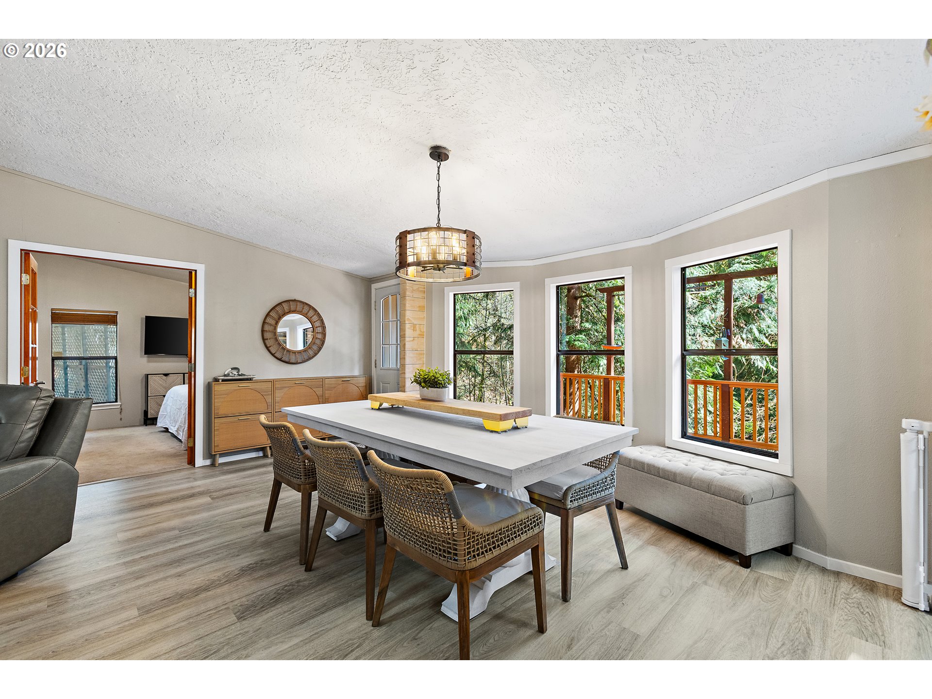 Updated, move-in ready, and surrounded by nature—this Big Valley Woods home lives larger than expected. Inside, vaulted ceilings and large windows create a bright, open feel throughout. The spacious newly updated kitchen, with all new Bespoke appliances provides ample counter space and storage, flowing seamlessly into both the living and dining areas for easy everyday living.This flexible floor plan with two separate living spaces is ideal for spreading out, working from home, or entertaining. The family room opens directly to a covered and screened deck, creating the perfect indoor/outdoor living space and a great spot to enjoy the surrounding greenery year-round. The primary suite offers a comfortable retreat with a walk-in closet and walk-in shower, 3 additional rooms provide versatility for whatever you need. Large laundry/mud room, with pantry and extra storage, new Samsung washer & dryer included. Keep cozy and warm with the two pellet stoves. Extensive system updates include: New heat pump (2025) Updated PEX plumbing (2020) Home re-leveled (2023) New water heater (2023) Covered parking/Paved driveway & walkway (2018) 30-year roof (2010)wired in generator supporting ~75% of the home. New hard surface flooring, updated light fixtures, wainscoting, ship lap wall accents, natural wood trim, and fresh paint, leaves nothing left to do but bring your things and settle in.