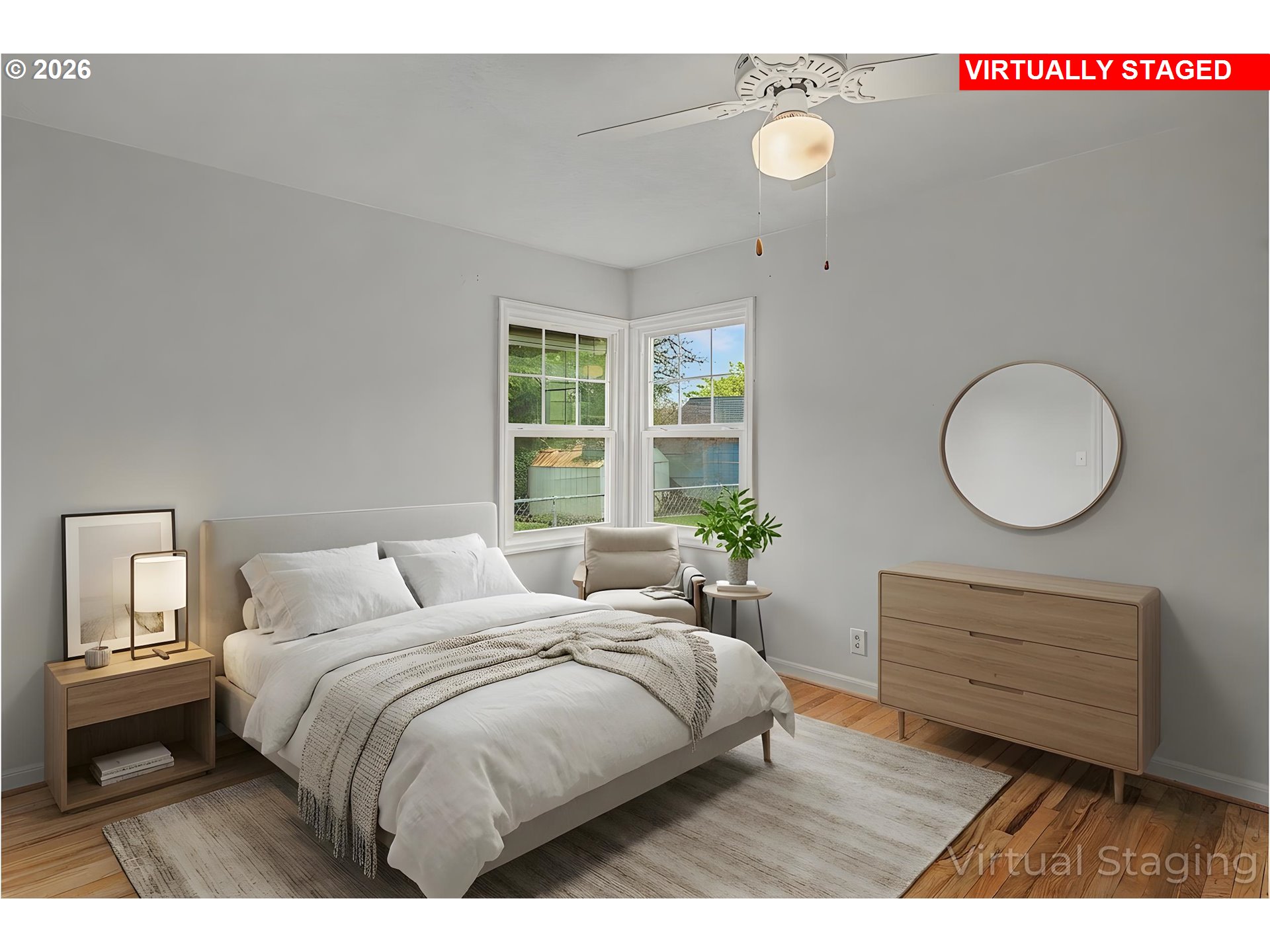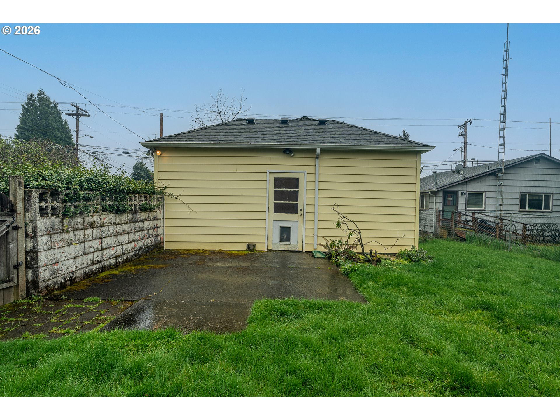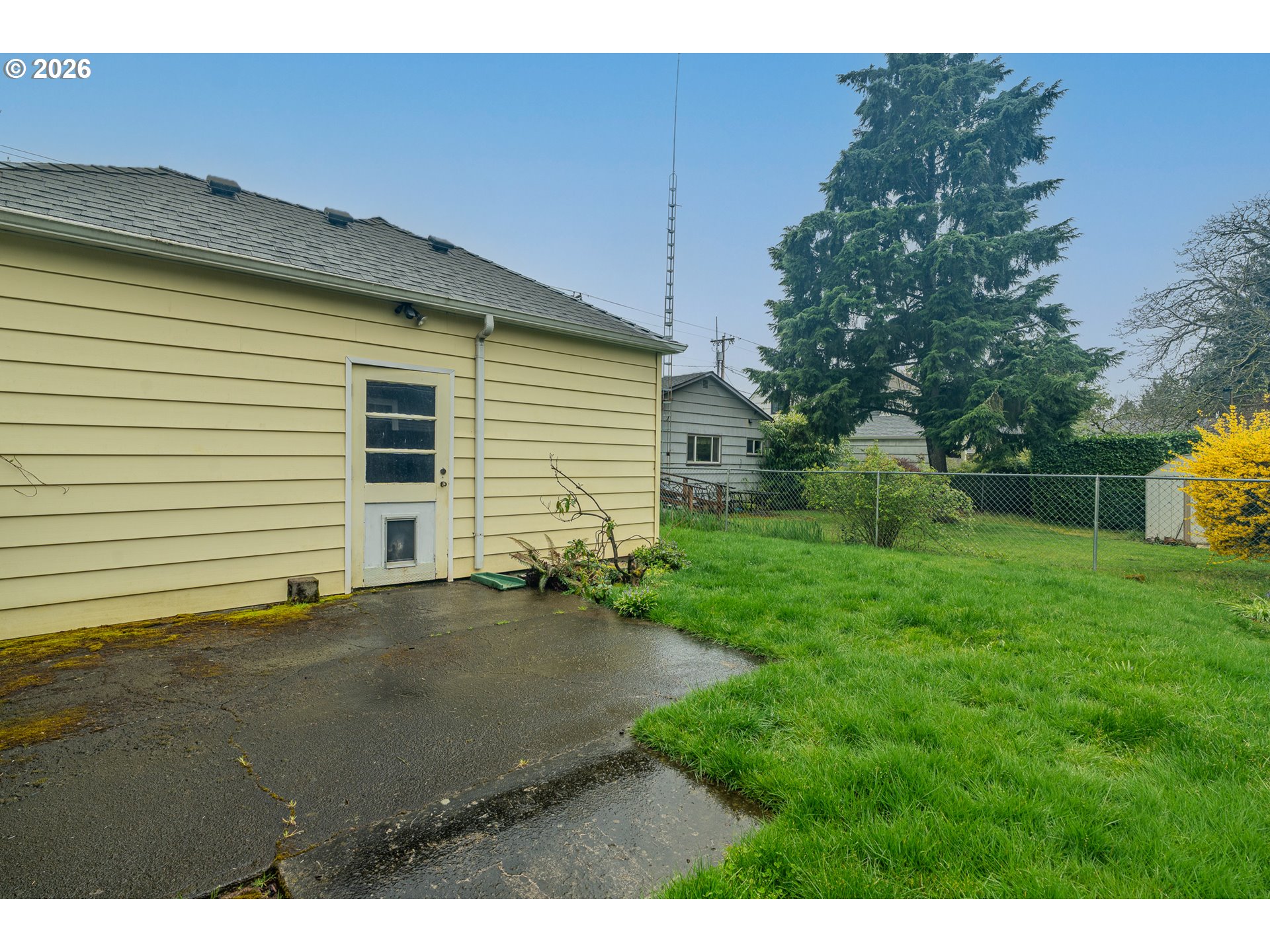 Corner lot bungalow with hardwood floors and solar panels in Milwaukie. Light-filled living room welcomes you into this 2 bed, 1 bath home featuring real hardwood floors throughout. Functional kitchen offers ample storage and workspace, while a spacious laundry room with utility sink adds flexibility for projects, storage, or utility use. Bathroom includes a step-in shower, and the attached 1-car garage plus covered entry provide practical comfort year-round. Enjoy the fully fenced backyard ready for your personal vision, whether gardening, entertaining, or creating your own outdoor retreat. Corner lot location with solar panels for added efficiency and long-term savings. [Home Energy Score = 9. HES Report at https://rpt.greenbuildingregistry.com/hes/OR10245176]