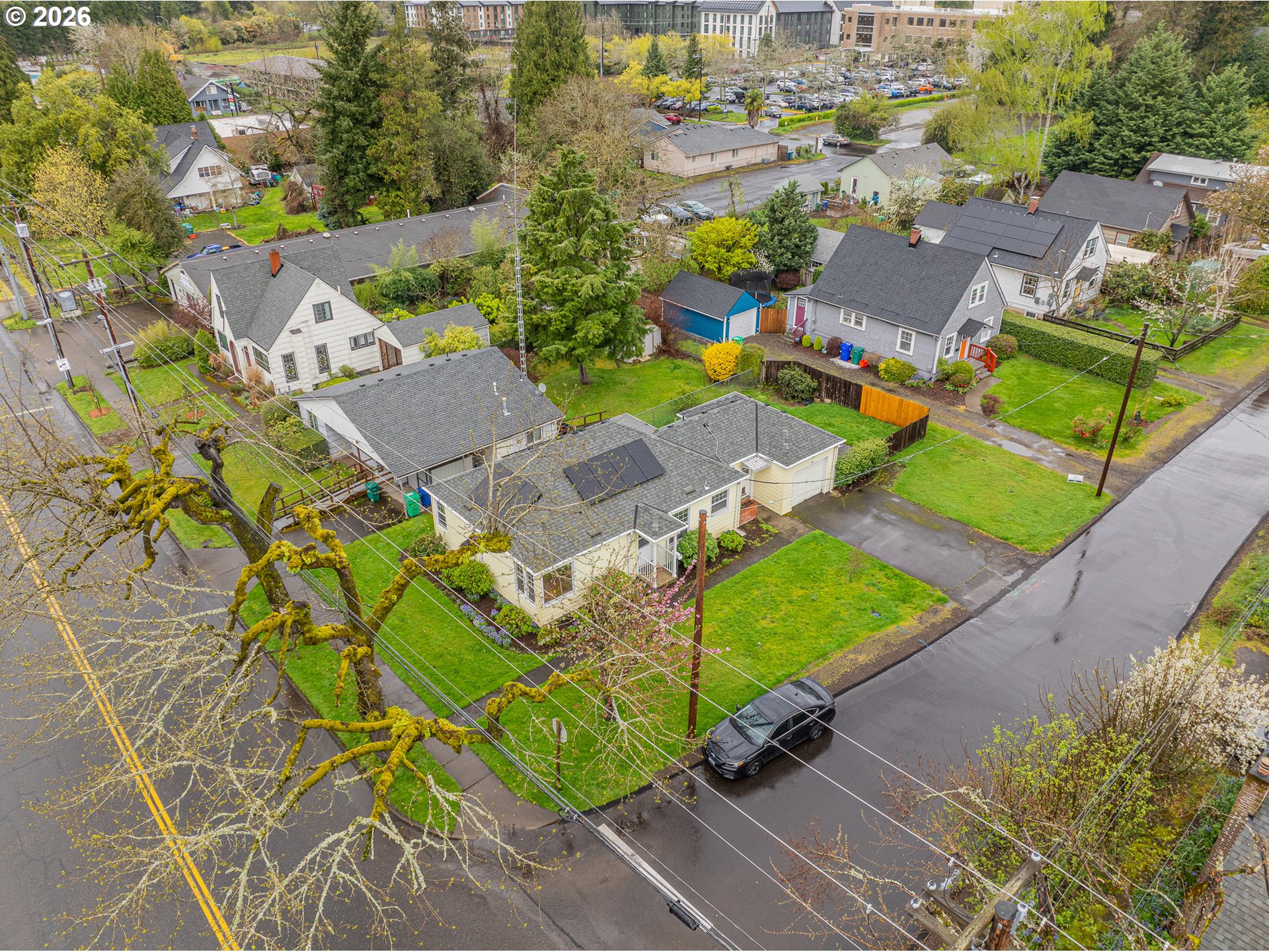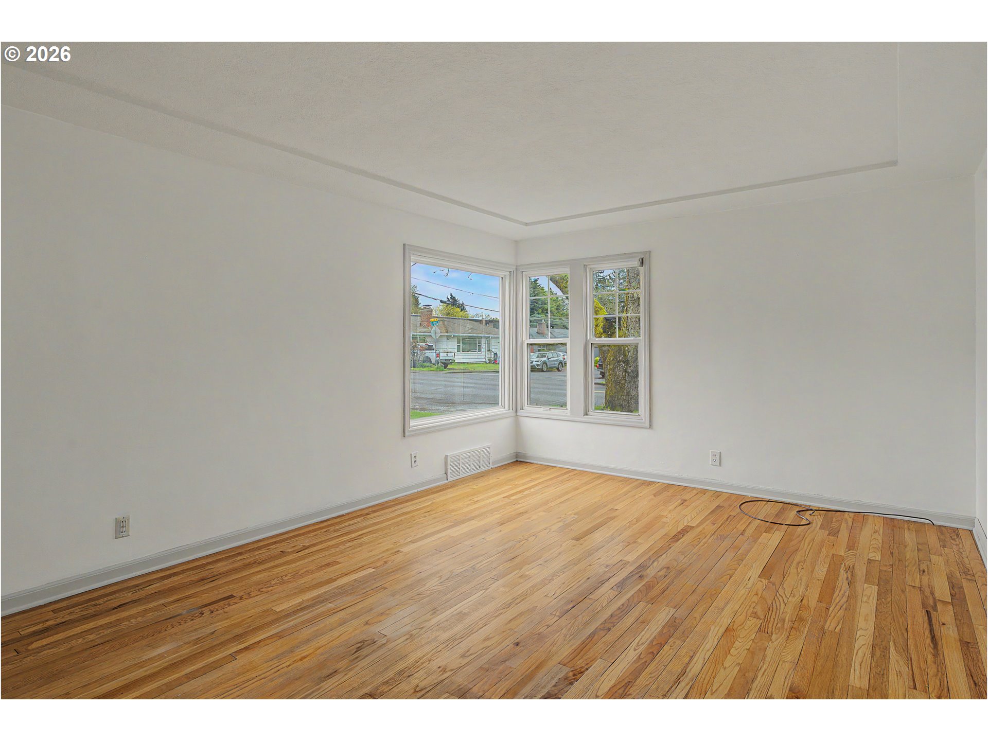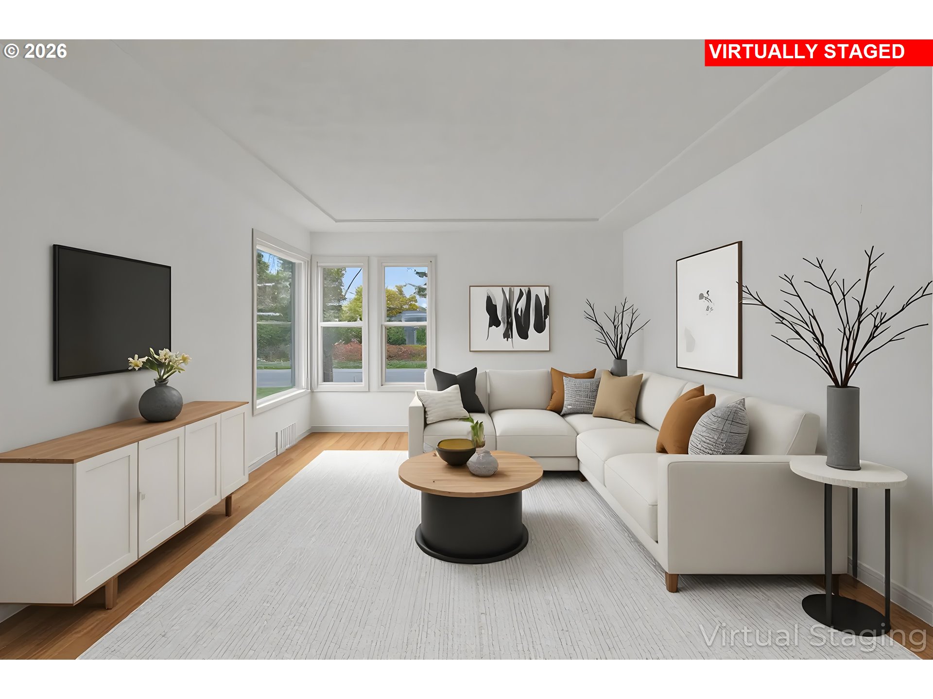 Corner lot bungalow with hardwood floors and solar panels in Milwaukie. Light-filled living room welcomes you into this 2 bed, 1 bath home featuring real hardwood floors throughout. Functional kitchen offers ample storage and workspace, while a spacious laundry room with utility sink adds flexibility for projects, storage, or utility use. Bathroom includes a step-in shower, and the attached 1-car garage plus covered entry provide practical comfort year-round. Enjoy the fully fenced backyard ready for your personal vision, whether gardening, entertaining, or creating your own outdoor retreat. Corner lot location with solar panels for added efficiency and long-term savings. [Home Energy Score = 9. HES Report at https://rpt.greenbuildingregistry.com/hes/OR10245176]
