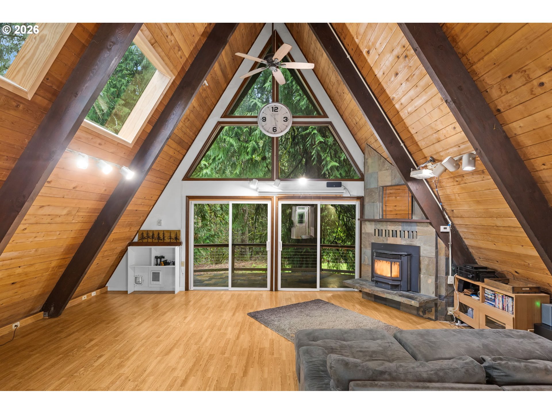 Tucked away on over 2 acres, this A-frame inspired retreat offers the perfect blend of architectural character, peaceful surroundings, and everyday convenience. A soaring wall of windows with a cozy, cabin-like feel creates a true nature escape, while still being just minutes from shopping, dining, and amenities in the tight-knit Sandy community. Plus, just a 35 minute drive to PDX, and 45 minutes to Government Camp, a location ideal for both recreational enthusiasts and city living.Beyond the charm, this home was designed with room to live and play. The property features 3+ bedrooms and 3 full bathrooms, including ensuite primary, an EV ready, four-car garage, above ground pool with pool house, an outbuilding and ample space for recreational vehicles, boats, tools, and hobbies. Everything you’d want all in one place. Highlighted updates and features include: A-frame entryway, roof, sky lights, windows, sliders, paint, remodeled kitchen and pantry, pellet stove, refreshed loft flex area, garage doors, outbuildings, well pump-house and EV hookup. Rarely do homes offer this level of privacy and proximity. Schedule your showing and see why this is one that truly needs to be experienced in person. Open Saturday and Sunday, 12pm-2pm.