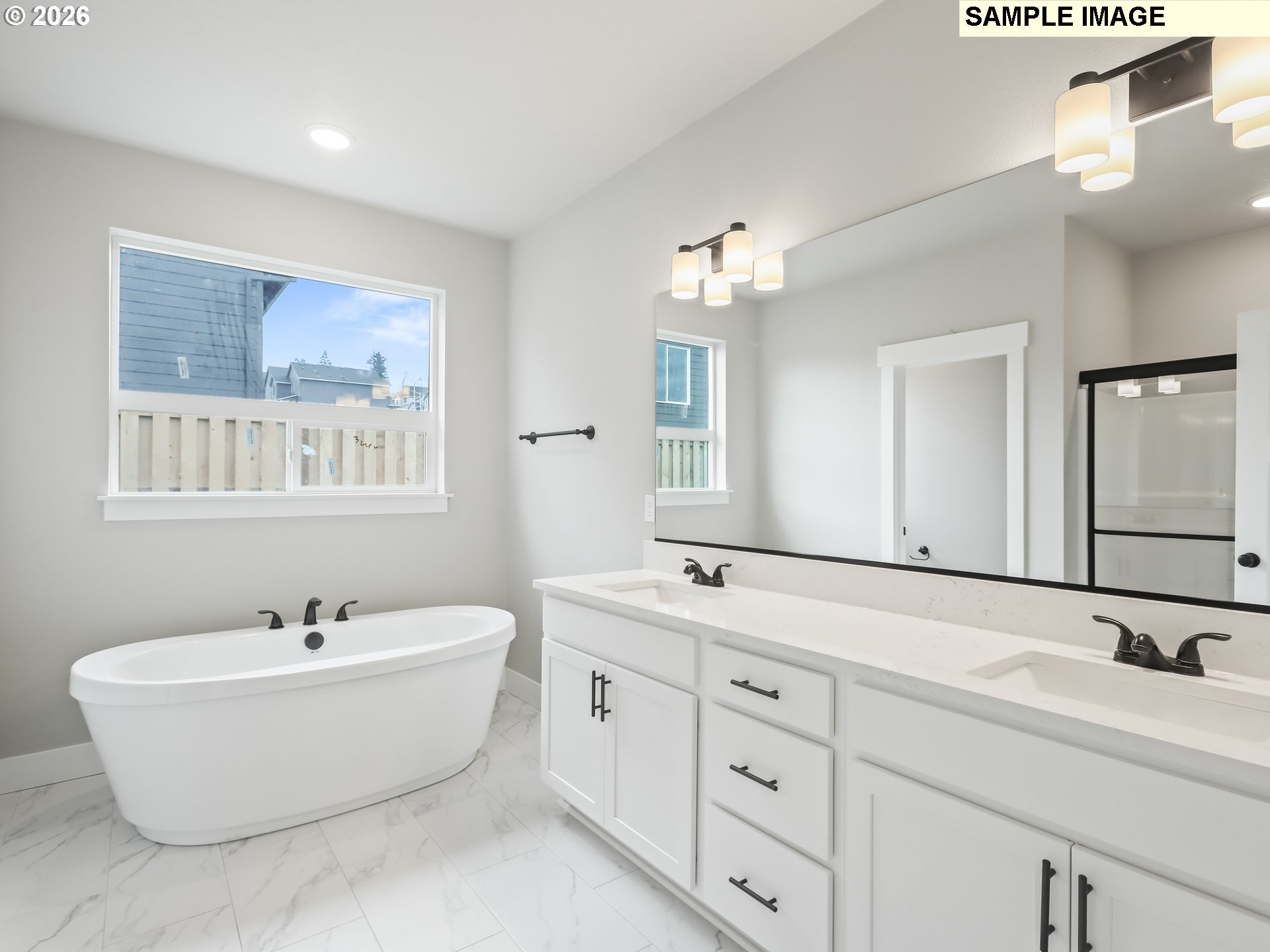 Experience exceptional one-level living with The Benson Plan, thoughtfully designed for comfort and functionality. The vaulted primary suite offers a relaxing retreat, complete with a spa-like ensuite bathroom featuring a soaking tub, double sinks, and a separate shower.The open-concept great room boasts a vaulted ceiling and cozy fireplace, creating a bright and inviting space perfect for entertaining. Laminate flooring runs throughout the main living areas, combining style with durability.A standout feature is the 12' x 42' RV garage bay, providing ample space for your RV, boat, or extra storage.Step outside to enjoy a covered patio and fully fenced backyard, ideal for outdoor living and relaxation.Located in the desirable Dugan Estates community, this home offers quality craftsmanship and modern design. Open House: Wednesday through Sunday, 1 PM – 4 PM ATTACHED PHOTOS ARE FOR EXAMPLE PURPOSES ONLY.