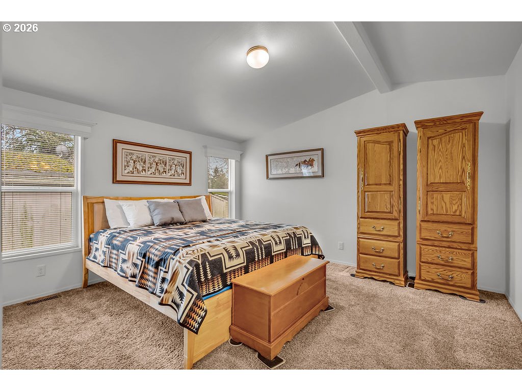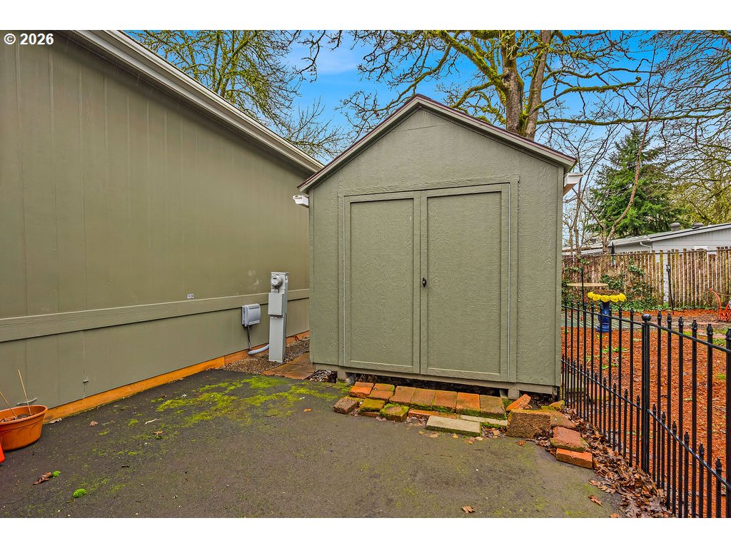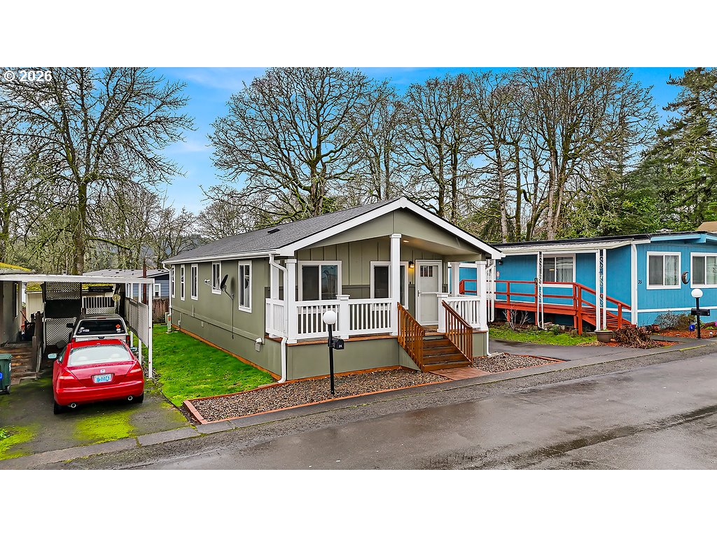 Almost brand new and built in 2022, this warm and inviting home offers terrific street appeal highlighted by a 24-foot-wide covered front porch—perfect for relaxing and greeting neighbors. Inside, you’ll find a spacious living room and a formal dining room, creating comfortable spaces for both everyday living and entertaining. The amazing kitchen is a standout, featuring an abundance of shaker cabinets, a stylish glass backsplash, and all appliances included, plus a built-in microwave. The generous primary suite includes an en-suite bath with a double-bowl vanity and walk-in shower. A thoughtful mix of luxury plank flooring and carpet adds both style and comfort throughout. The home also offers a large utility/laundry room with washer and dryer included. Designed with accessibility in mind, the property includes a wheelchair ramp for added convenience. Located in a senior community with planned activities, this home enjoys a great Milwaukie location. Outside, you’ll appreciate the low-maintenance yard and large shed for extra storage. A high-efficiency heat pump provides year-round comfort and energy savings. Move-in ready and beautifully maintained—this is easy living at its best.