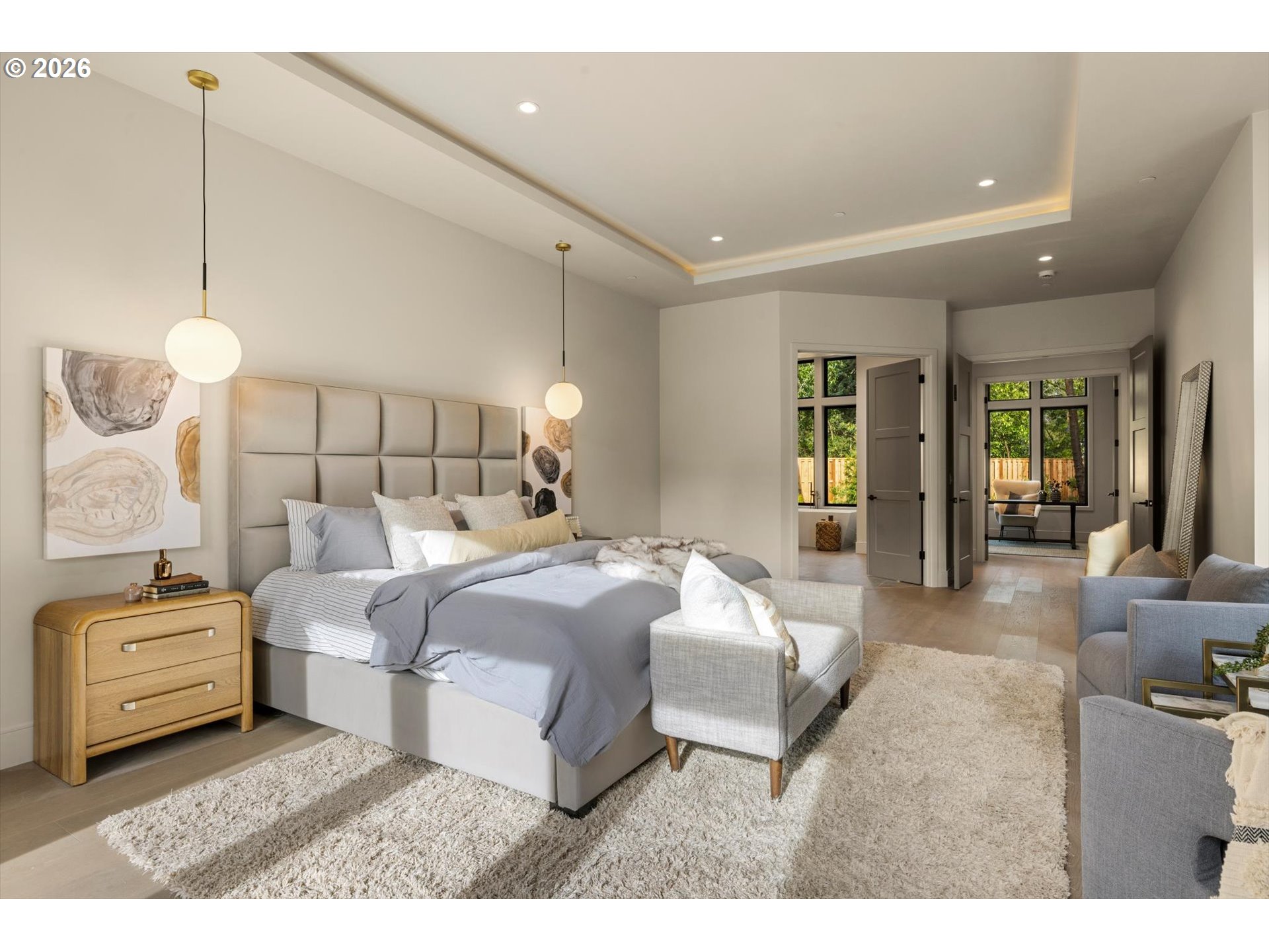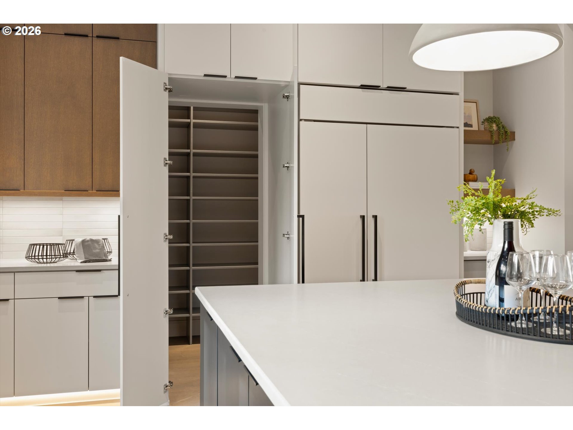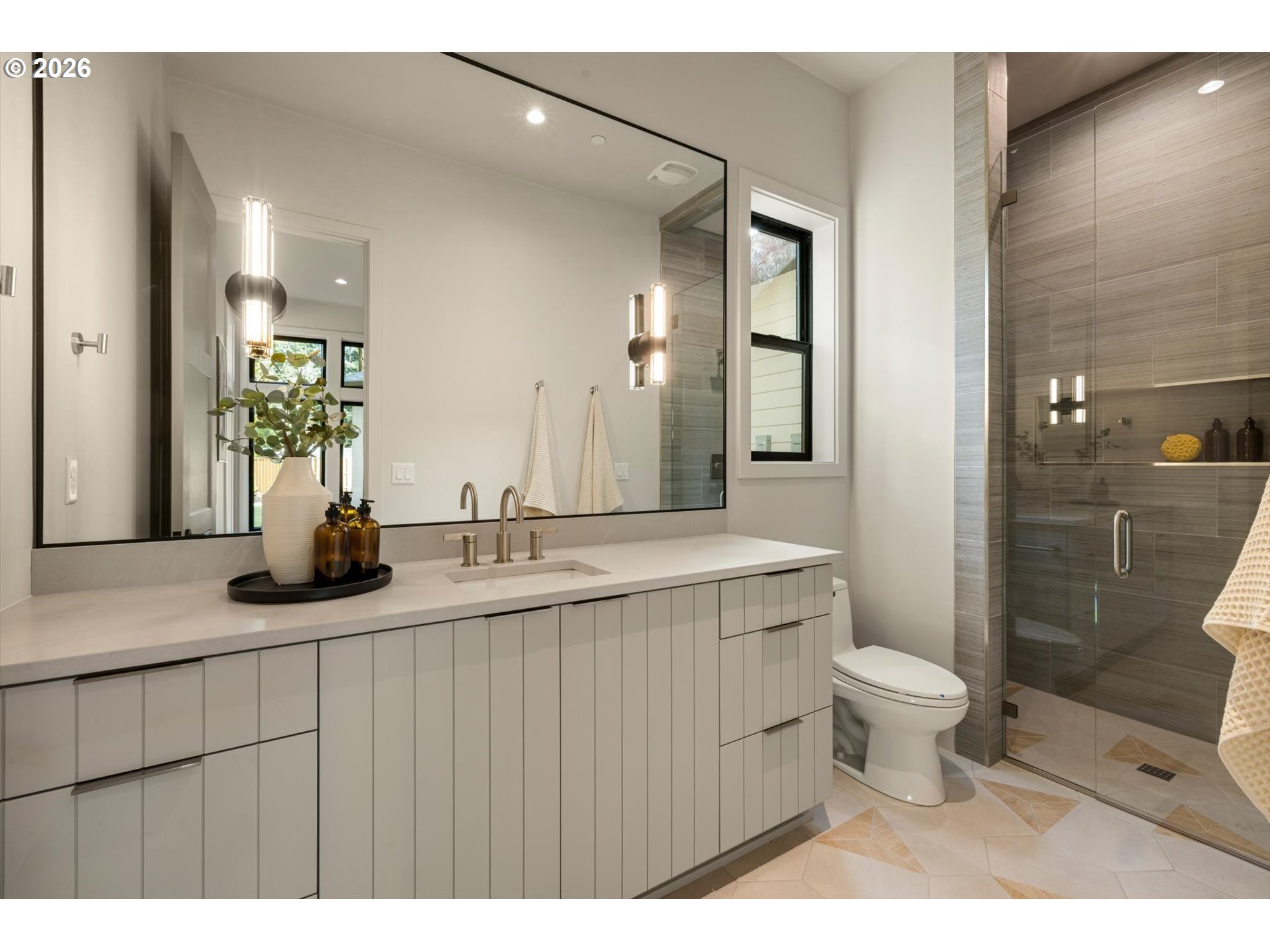 Designed with intention. Finished without compromise. This monogrammed contemporary in Lake Oswego delivers 5,036 square feet of high-end living — 3,341 on the main level alone — where every detail was selected, not settled for. The chef's kitchen is built to perform: Wolf and Sub-Zero appliances, a 48" six-burner range with double ovens, an additional built-in oven, oversized island, and a hidden walk-in pantry. Step outside to a covered terrace with built-in BBQ, prep sink, gas fireplace, and heaters — designed for entertaining and private enough to actually enjoy it. Low-maintenance turf in the back and mature evergreens complete the .46-acre lot. Inside, white oak engineered hardwoods, stunning fixtures, and custom built-ins set the tone. Two laundry areas (yes, one is in the primary closet), and upper-level bonus space with a full bar, home theater potential, and game room are the extras that make daily life genuinely enjoyable. The main-level primary suite is its own private wing — spa bath, oversized walk-in closet, and total separation from the rest of the home. A second main-level suite option adds flexibility for guests or multigenerational living. A four-car garage and circular driveway handle the practical. Access to three boating easements- Summit, Goodin and Springbrook, horseback riding access, and a short stroll to Lake Grove Village.