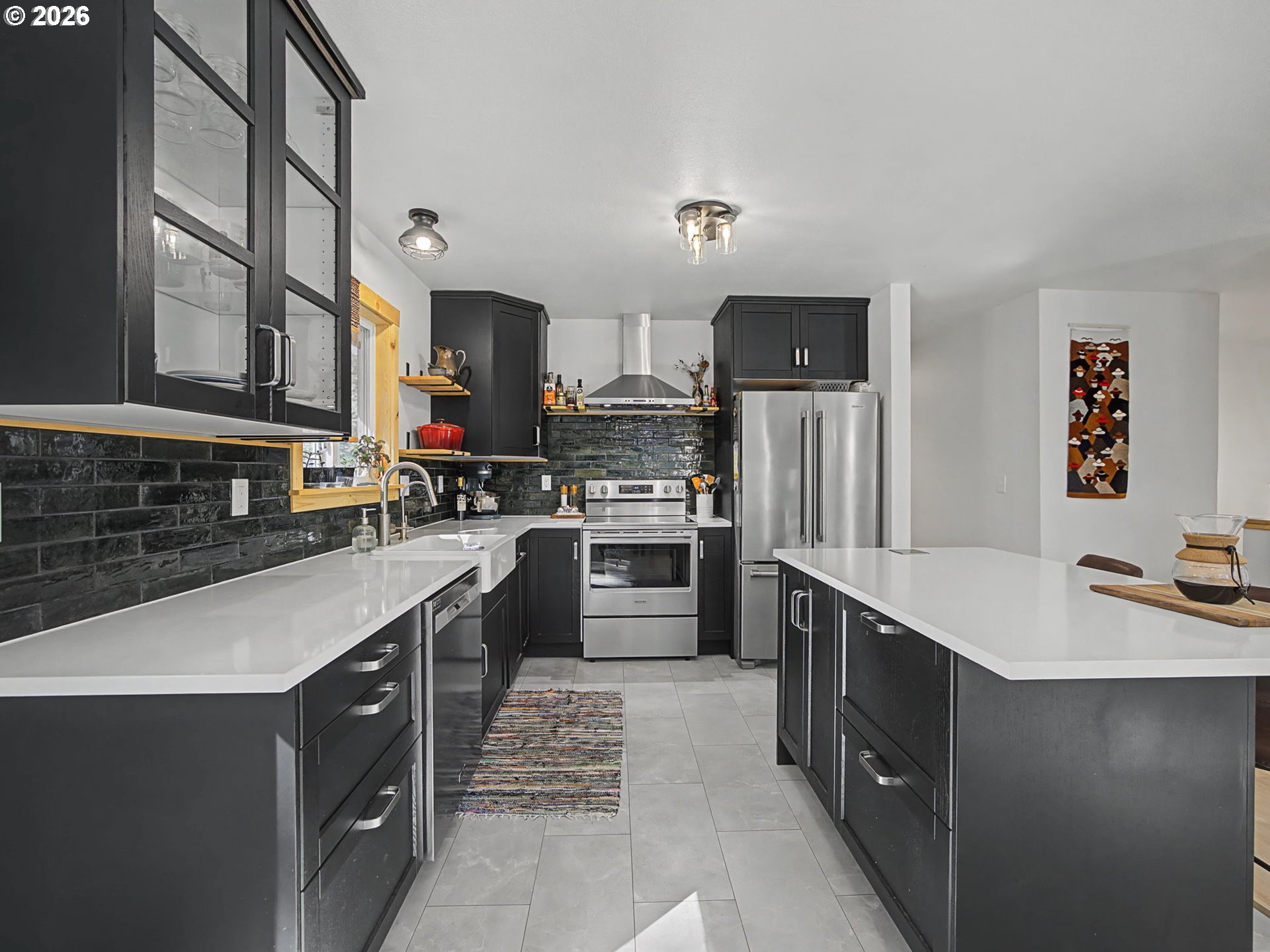 Dishwasher, FreeStandingRange, Island, PlumbedForIceMaker, Quartz, RangeHood
