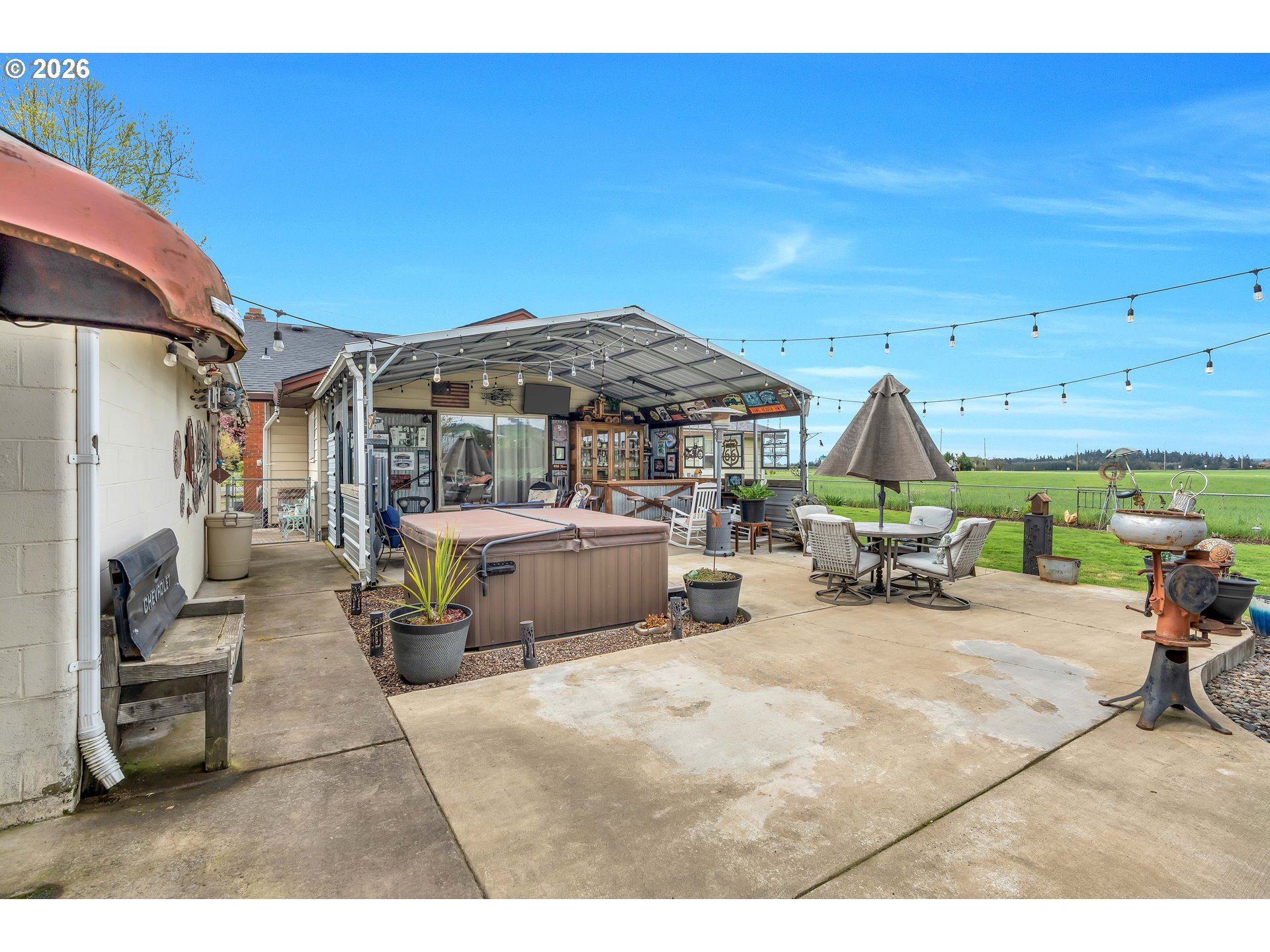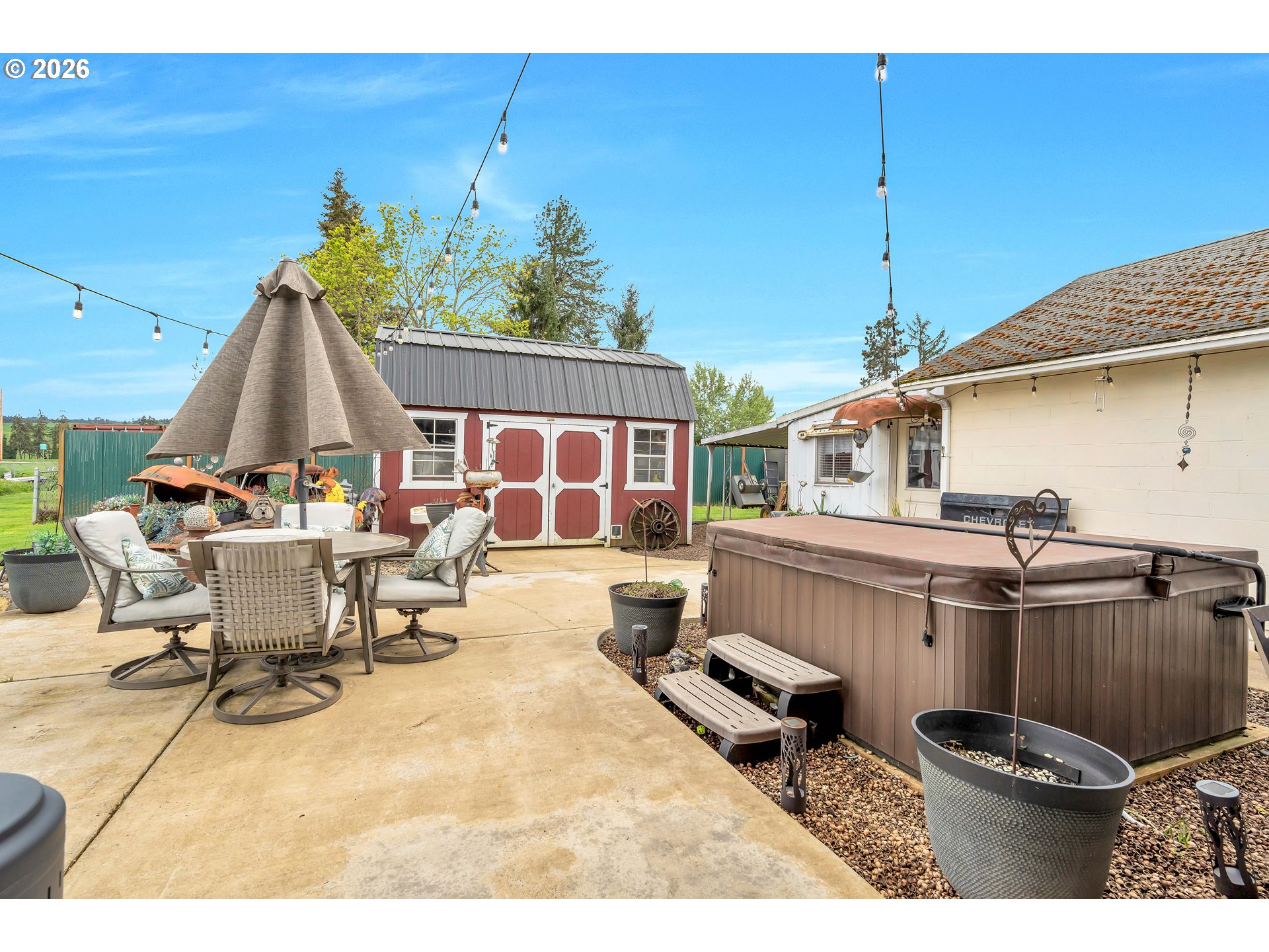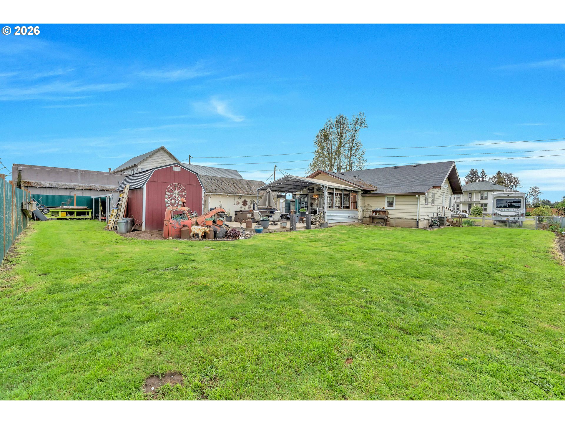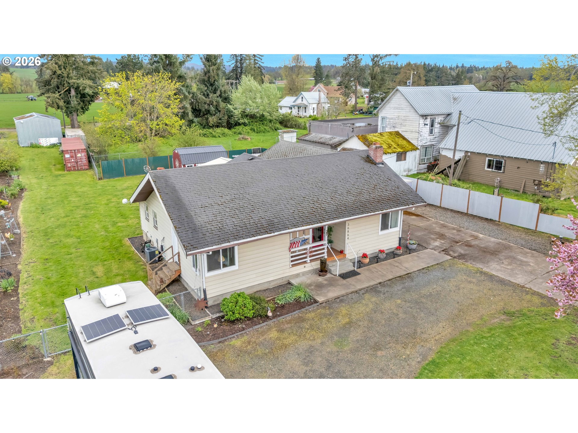Welcome to this beautifully remodeled home on a generous Jr. acre, offering charm, functionality, and stunning territorial views of Mt. Hood and Mt. St. Helens. Built in 1920 and thoughtfully updated, this 2-bedroom, 1-bath residence spans approximately 1,442 square feet and blends classic character with modern comfort in a peaceful rural setting.Inside, you’ll find a light and bright oversized kitchen featuring an eating bar and seamless flow into the dining area. A sliding door opens to a spacious 16x25 covered patio, creating the perfect setup for effortless indoor-outdoor living and year-round entertaining. Rich hardwood floors run throughout much of the home, enhancing its warmth and timeless appeal.Comfort is ensured with central heating and air conditioning, along with a newer Harmon pellet stove that adds both efficiency and cozy ambiance. A rustic bonus room and dedicated home office space provide flexibility for work, hobbies, or relaxation.The property is exceptionally well-equipped for storage, projects, and outdoor living. A 28x21 two-car garage with 220V power and a massive 24x36 shop with concrete floors and 220V offer incredible workspace potential. RV parking is also available, making this an ideal setup for adventure enthusiasts or those needing extra room for equipment and toys.Outside, the expansive yard features mature space, outbuildings, and endless possibilities for gardening, recreation, or simply enjoying the quiet surroundings. Located just 10 minutes to Silverton or Molalla and about 20 minutes to Oregon City, this property offers the perfect balance of country living with convenient access to town.Charming, functional, and full of opportunity—this is a rare small-acreage property with room to live, work, and thrive.
