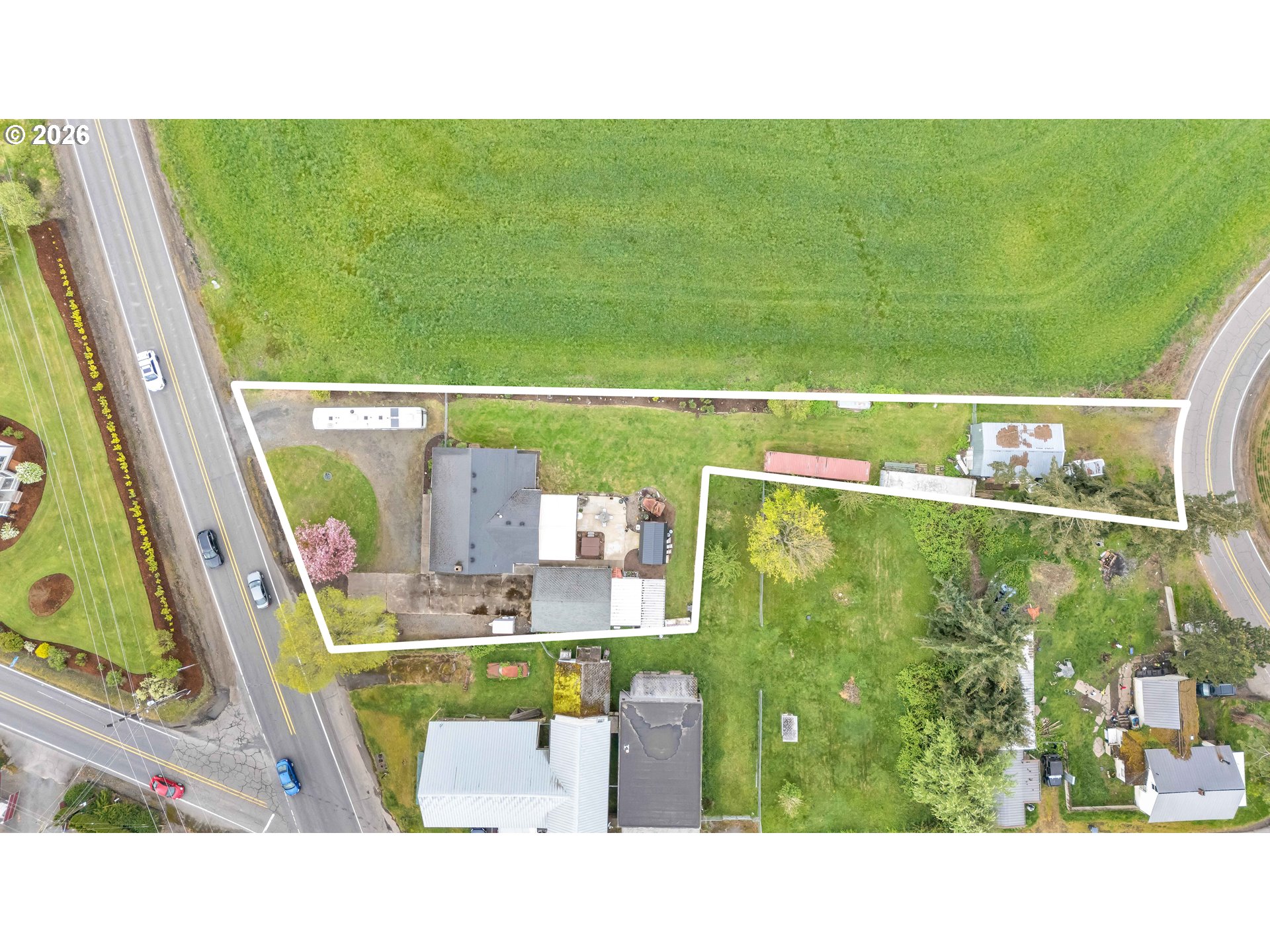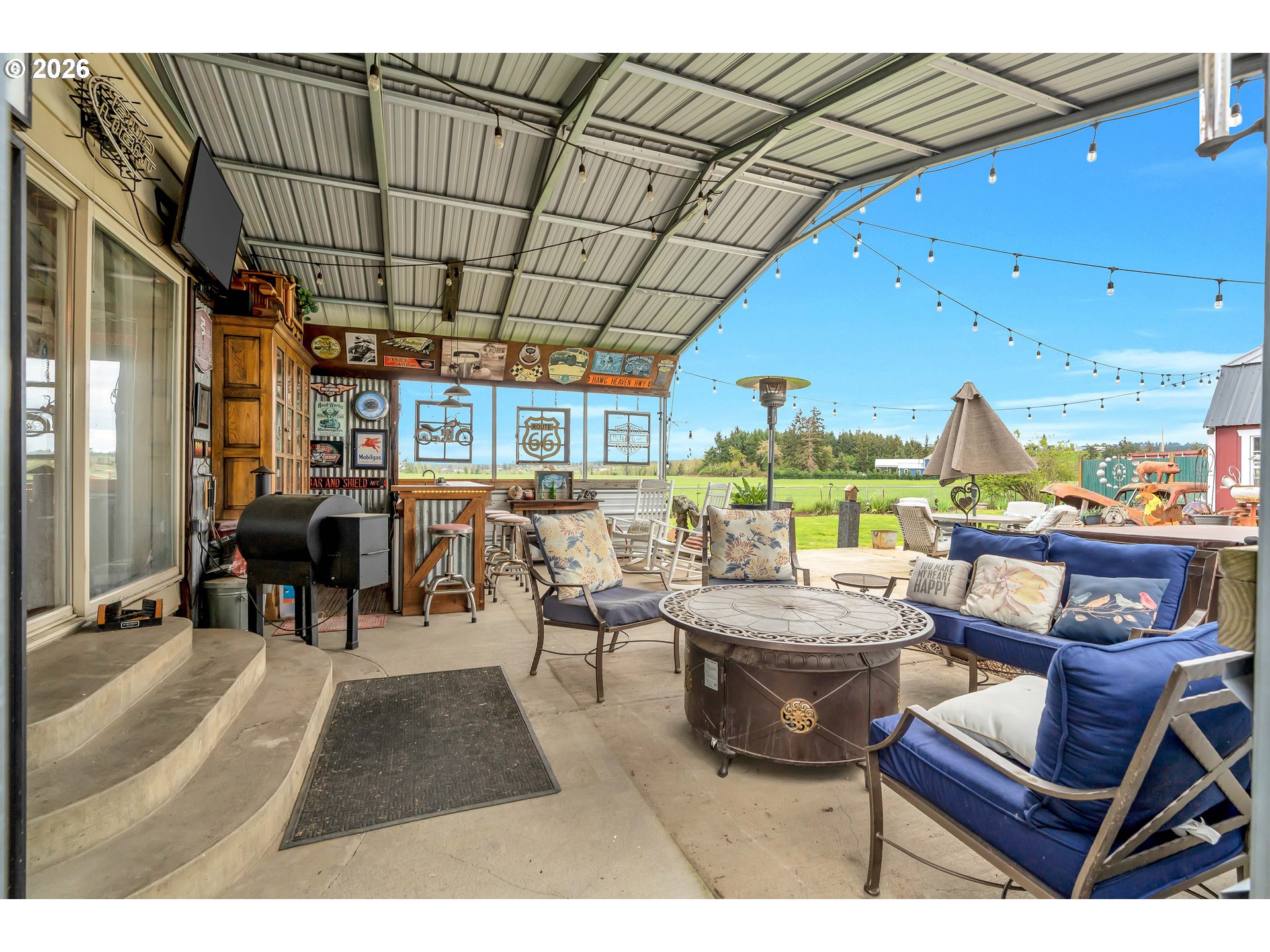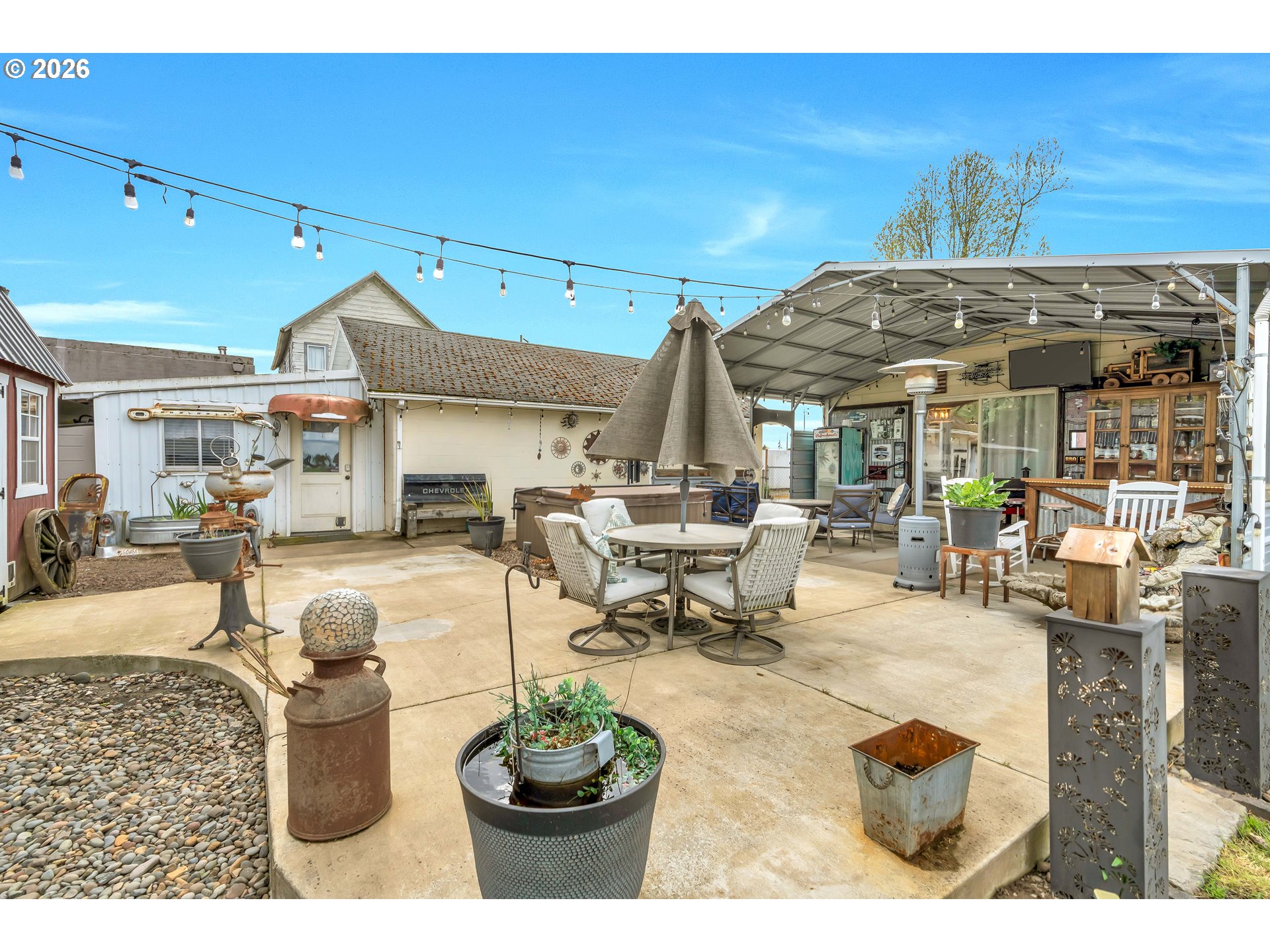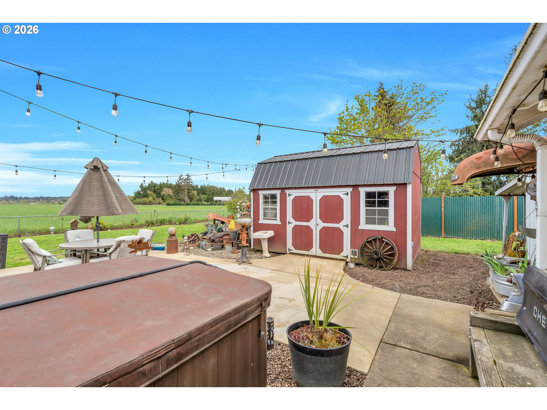 Welcome to this beautifully remodeled home on a generous Jr. acre, offering charm, functionality, and stunning territorial views of Mt. Hood and Mt. St. Helens. Built in 1920 and thoughtfully updated, this 2-bedroom, 1-bath residence spans approximately 1,442 square feet and blends classic character with modern comfort in a peaceful rural setting.Inside, you’ll find a light and bright oversized kitchen featuring an eating bar and seamless flow into the dining area. A sliding door opens to a spacious 16x25 covered patio, creating the perfect setup for effortless indoor-outdoor living and year-round entertaining. Rich hardwood floors run throughout much of the home, enhancing its warmth and timeless appeal.Comfort is ensured with central heating and air conditioning, along with a newer Harmon pellet stove that adds both efficiency and cozy ambiance. A rustic bonus room and dedicated home office space provide flexibility for work, hobbies, or relaxation.The property is exceptionally well-equipped for storage, projects, and outdoor living. A 28x21 two-car garage with 220V power and a massive 24x36 shop with concrete floors and 220V offer incredible workspace potential. RV parking is also available, making this an ideal setup for adventure enthusiasts or those needing extra room for equipment and toys.Outside, the expansive yard features mature space, outbuildings, and endless possibilities for gardening, recreation, or simply enjoying the quiet surroundings. Located just 10 minutes to Silverton or Molalla and about 20 minutes to Oregon City, this property offers the perfect balance of country living with convenient access to town.Charming, functional, and full of opportunity—this is a rare small-acreage property with room to live, work, and thrive.