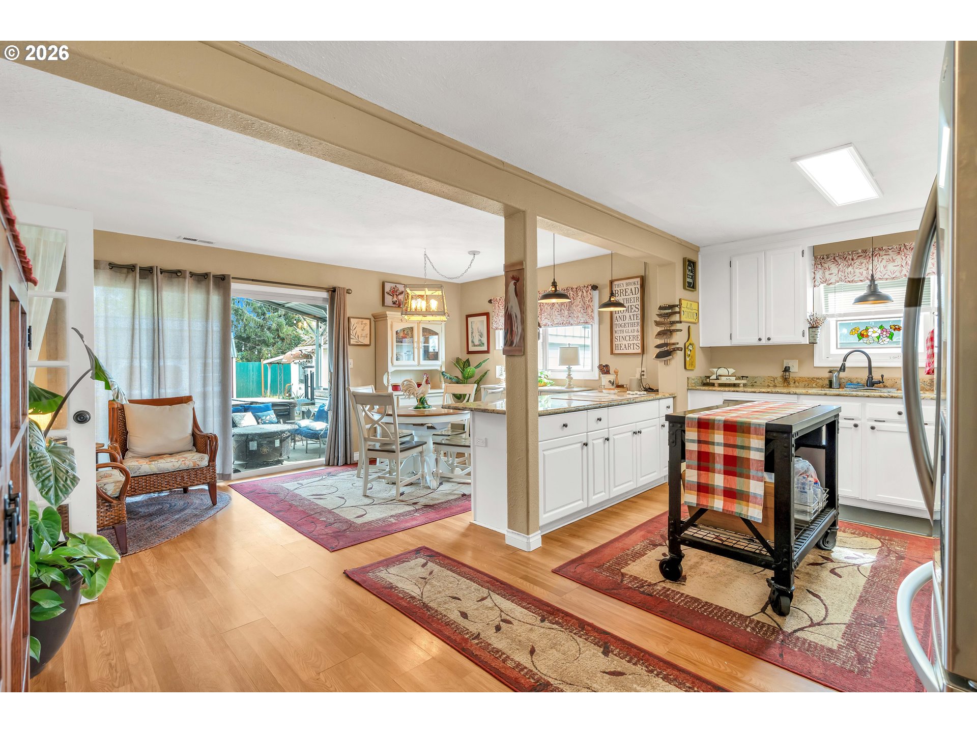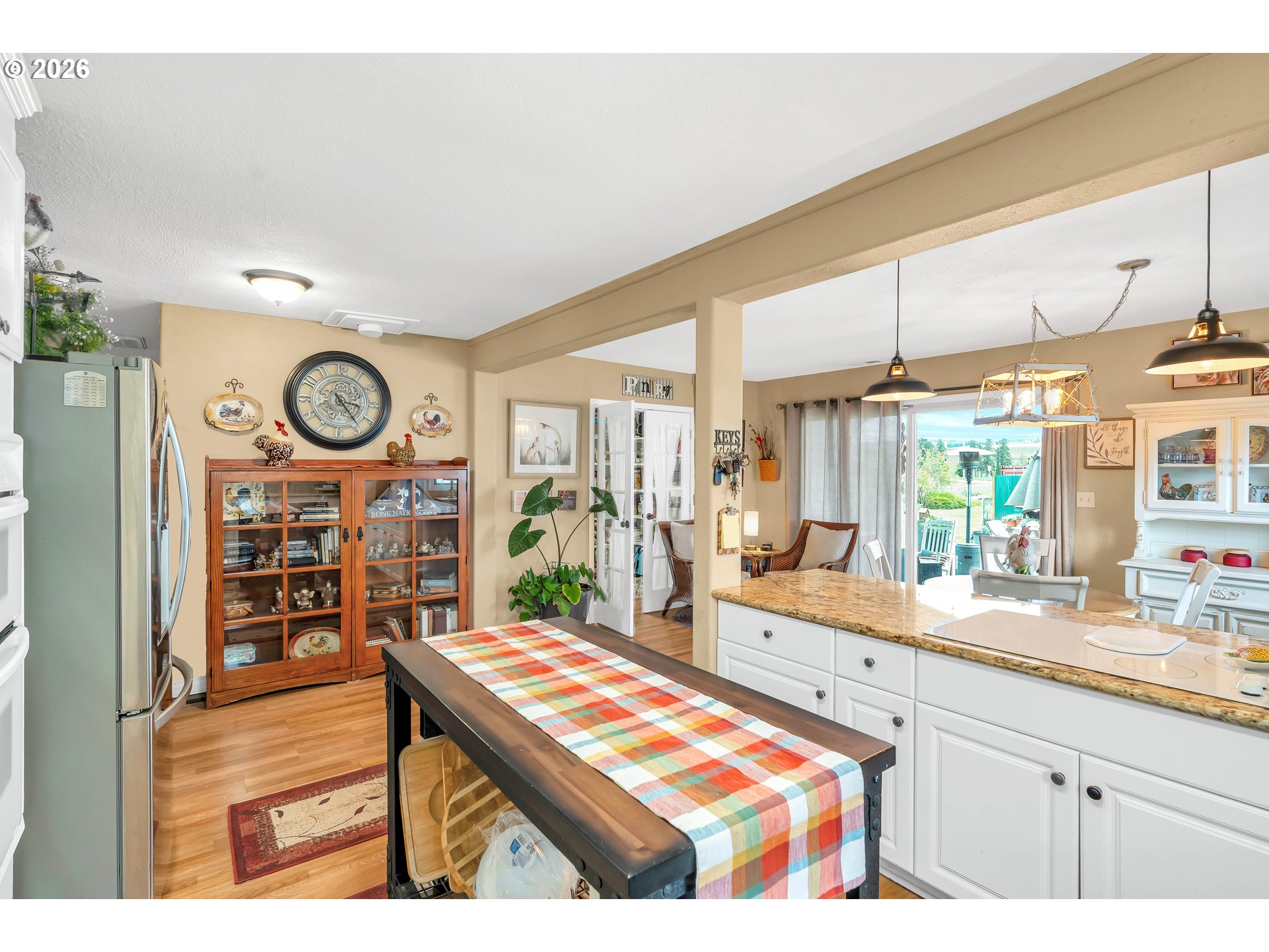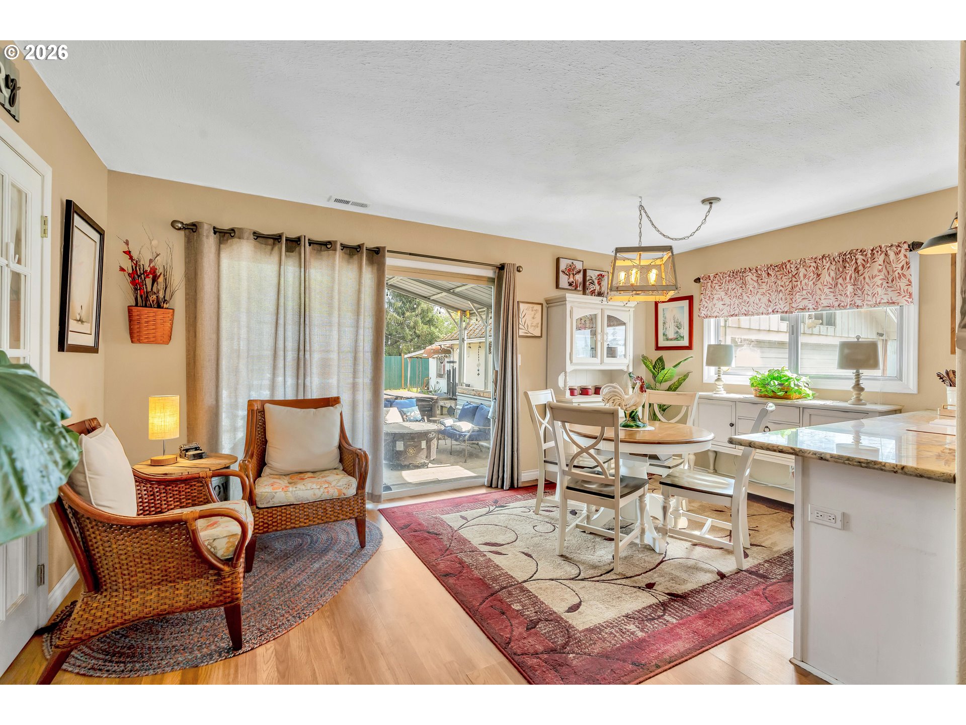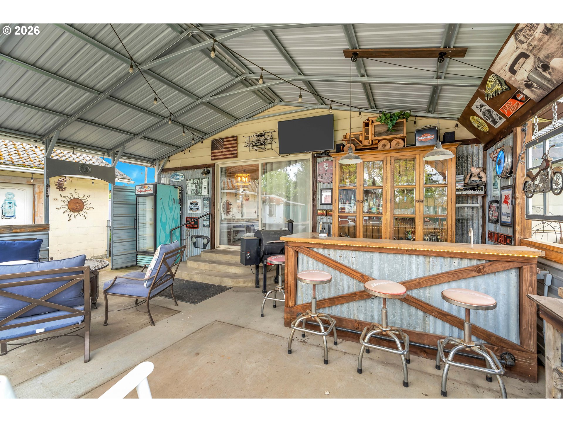 Welcome to this beautifully remodeled home on a generous Jr. acre, offering charm, functionality, and stunning territorial views of Mt. Hood and Mt. St. Helens. Built in 1920 and thoughtfully updated, this 2-bedroom, 1-bath residence spans approximately 1,442 square feet and blends classic character with modern comfort in a peaceful rural setting.Inside, you’ll find a light and bright oversized kitchen featuring an eating bar and seamless flow into the dining area. A sliding door opens to a spacious 16x25 covered patio, creating the perfect setup for effortless indoor-outdoor living and year-round entertaining. Rich hardwood floors run throughout much of the home, enhancing its warmth and timeless appeal.Comfort is ensured with central heating and air conditioning, along with a newer Harmon pellet stove that adds both efficiency and cozy ambiance. A rustic bonus room and dedicated home office space provide flexibility for work, hobbies, or relaxation.The property is exceptionally well-equipped for storage, projects, and outdoor living. A 28x21 two-car garage with 220V power and a massive 24x36 shop with concrete floors and 220V offer incredible workspace potential. RV parking is also available, making this an ideal setup for adventure enthusiasts or those needing extra room for equipment and toys.Outside, the expansive yard features mature space, outbuildings, and endless possibilities for gardening, recreation, or simply enjoying the quiet surroundings. Located just 10 minutes to Silverton or Molalla and about 20 minutes to Oregon City, this property offers the perfect balance of country living with convenient access to town.Charming, functional, and full of opportunity—this is a rare small-acreage property with room to live, work, and thrive.