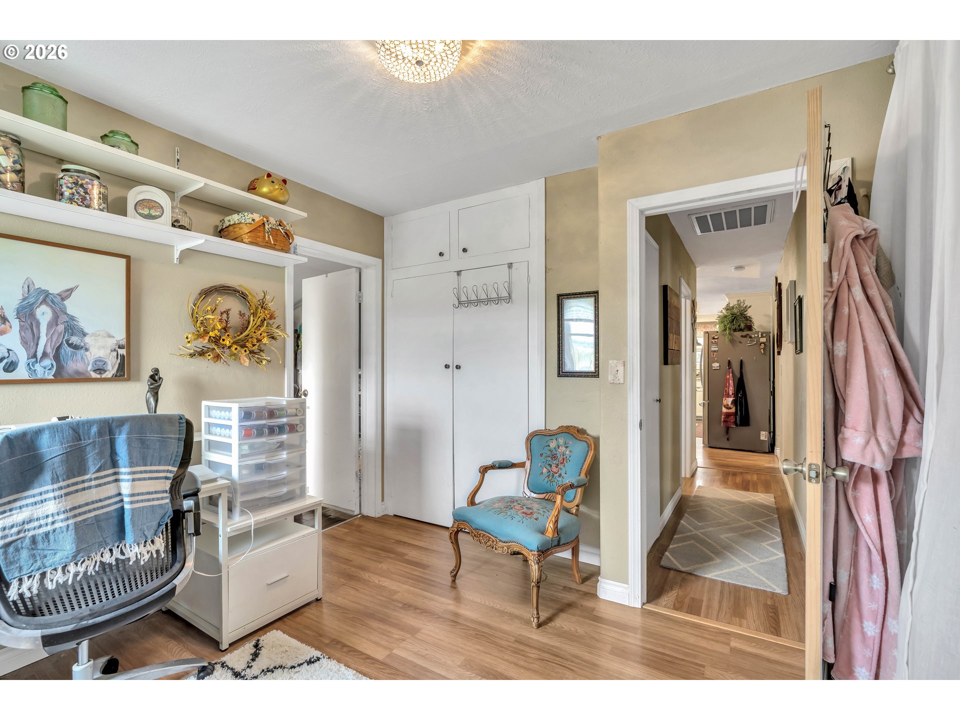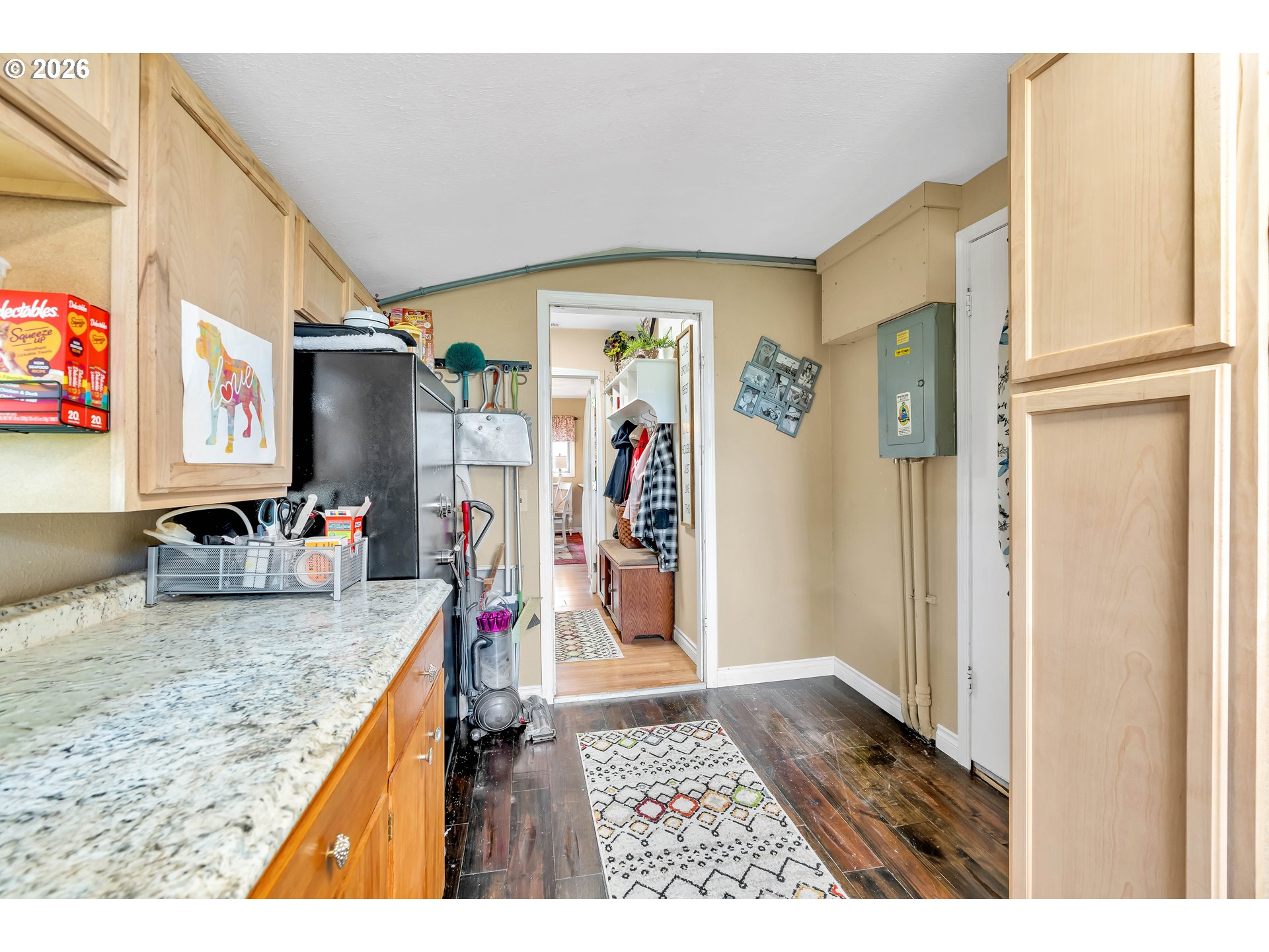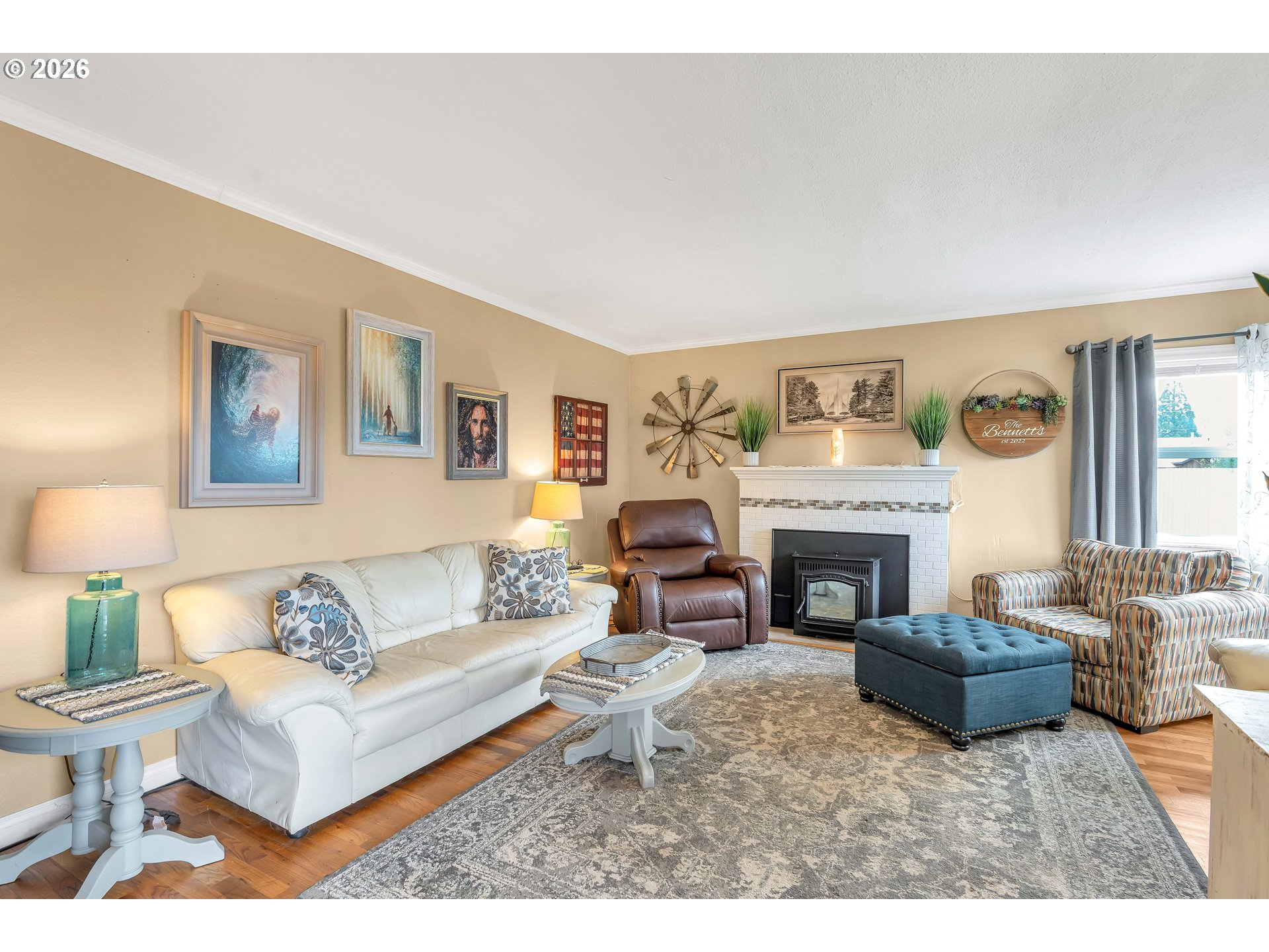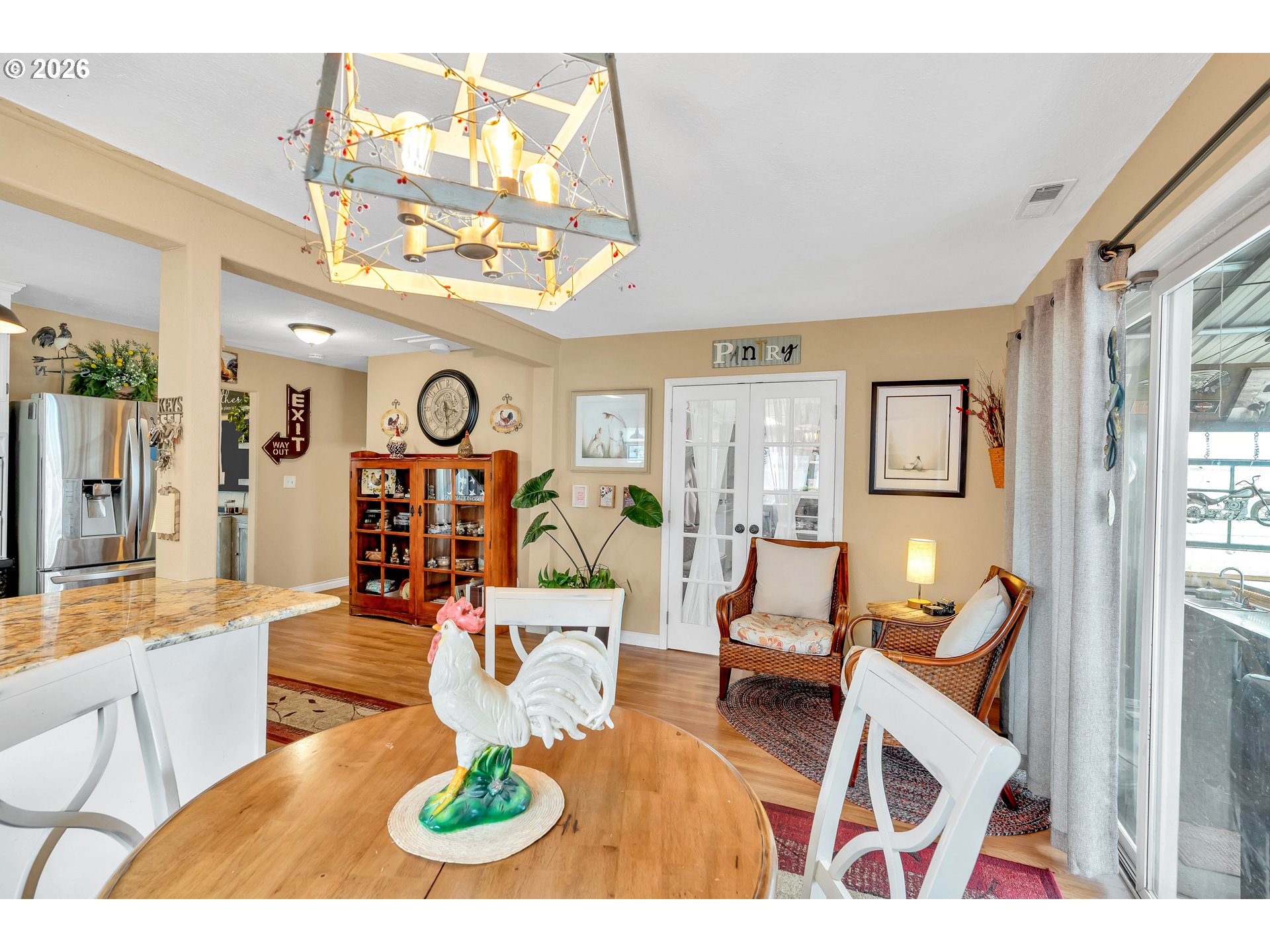Welcome to this beautifully remodeled home on a generous Jr. acre, offering charm, functionality, and stunning territorial views of Mt. Hood and Mt. St. Helens. Built in 1920 and thoughtfully updated, this 2-bedroom, 1-bath residence spans approximately 1,442 square feet and blends classic character with modern comfort in a peaceful rural setting.Inside, you’ll find a light and bright oversized kitchen featuring an eating bar and seamless flow into the dining area. A sliding door opens to a spacious 16x25 covered patio, creating the perfect setup for effortless indoor-outdoor living and year-round entertaining. Rich hardwood floors run throughout much of the home, enhancing its warmth and timeless appeal.Comfort is ensured with central heating and air conditioning, along with a newer Harmon pellet stove that adds both efficiency and cozy ambiance. A rustic bonus room and dedicated home office space provide flexibility for work, hobbies, or relaxation.The property is exceptionally well-equipped for storage, projects, and outdoor living. A 28x21 two-car garage with 220V power and a massive 24x36 shop with concrete floors and 220V offer incredible workspace potential. RV parking is also available, making this an ideal setup for adventure enthusiasts or those needing extra room for equipment and toys.Outside, the expansive yard features mature space, outbuildings, and endless possibilities for gardening, recreation, or simply enjoying the quiet surroundings. Located just 10 minutes to Silverton or Molalla and about 20 minutes to Oregon City, this property offers the perfect balance of country living with convenient access to town.Charming, functional, and full of opportunity—this is a rare small-acreage property with room to live, work, and thrive.