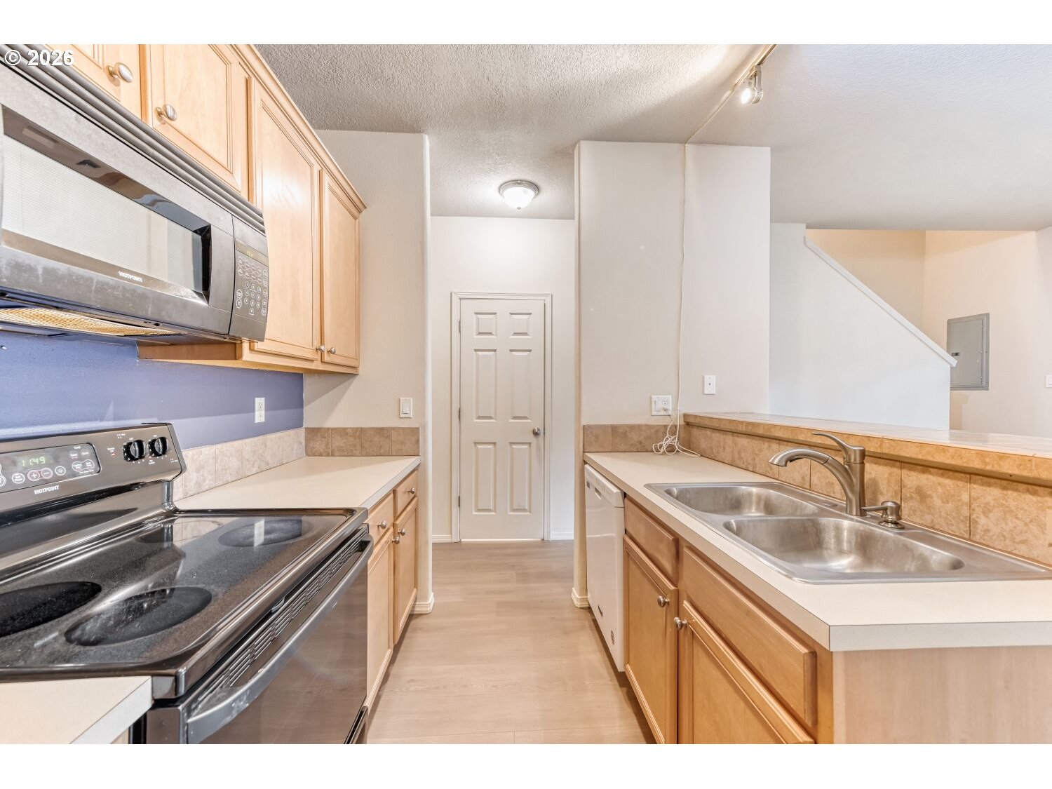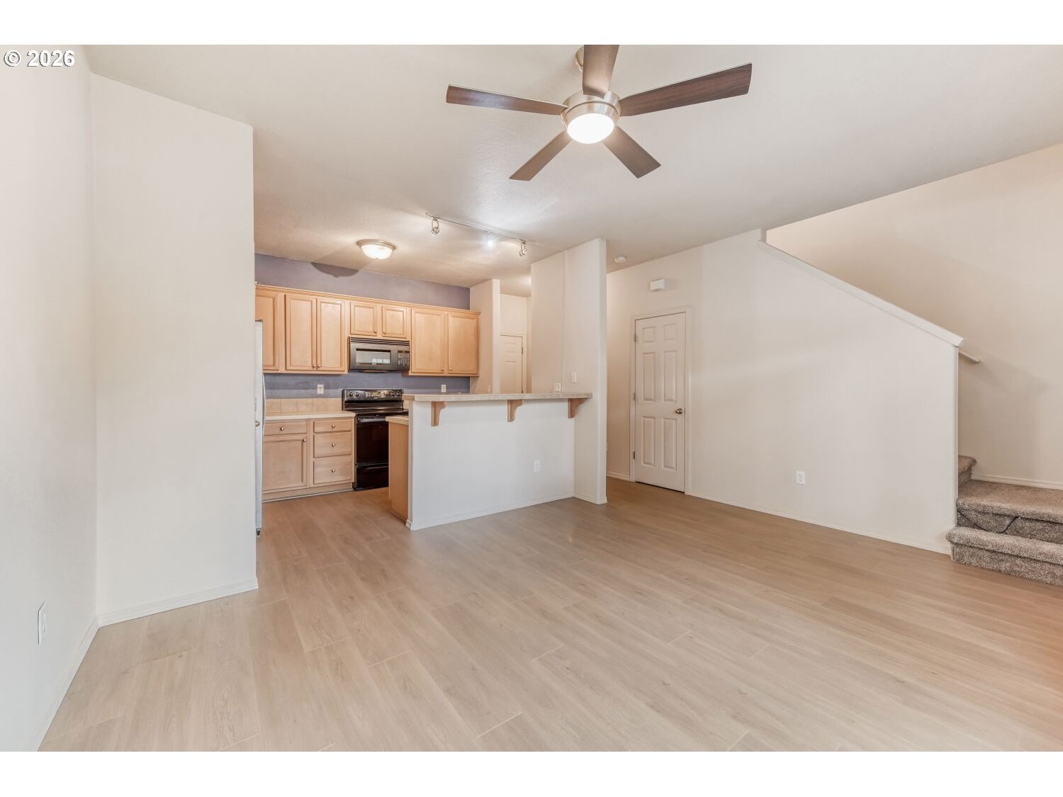 Light, Bright, Move in Ready Townhome! This low-maintenance 3 bedroom, 2 and half bath, home welcomes you with a cozy front porch, perfect for a relaxing cup of coffee or sitting and enjoying the afternoon sun. The Main level features new laminate flooring throughout, great room floor plan complete with eating bar, pantry, and 1/2 bath. The open concept living room, kitchen and dining space are waiting to be tailored to your tastes. 2 car garage provides designated parking and adds to the storage capabilities. Upstairs offers an oversized primary suite with vaulted ceilings, private bathroom and generous walk-in closet. You will also find 2 additional bedrooms, 1 additional bathroom and designated laundry area, creating a comfortable and functional space. Great location! Nearby is Bornstedt Park with splash pad, play structure, community garden, covered shelter area, open fields, picnic tables, and pathways. Multiple walking trails and fenced Off-Leash dog parks also close by. Close to schools, shopping and 30 minute drive to Mount Hood! Kitchen appliances and Washer/Dryer units are included! HOA covers exterior maintenance and landscaping.