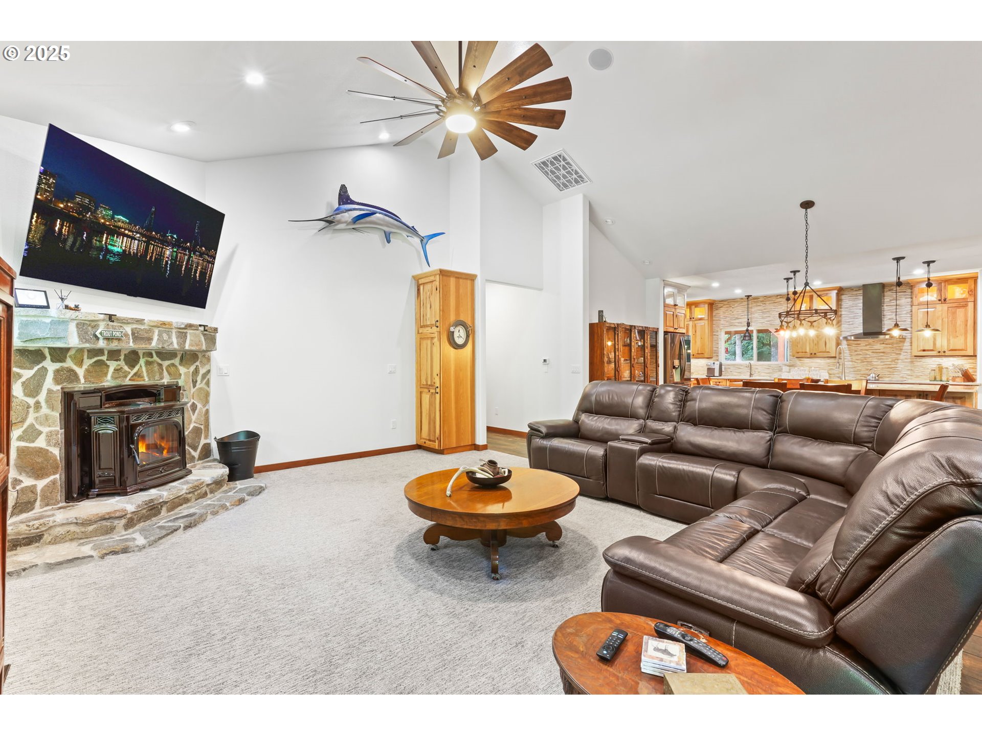 (503) 893-8874A Truly Stunning Private Retreat! Experience the perfect blend of nature, luxury, and functionality in this custom-designed single-level home, offering over 3,000 square feet of expansive living space on 10+ private acres. Tailored for nature lovers, outdoor enthusiasts, and those who enjoy entertaining, this property is a serene slice of paradise. Inside, the vaulted ceilings and oversized rooms create an airy, inviting atmosphere. Enjoy wood-look tile flooring, solid core wood doors, and stylish barn doors that separate a cozy family room from the main great room. The entertainer’s kitchen is a showstopper with knotty alder cabinets, quartz countertops, a large island, and an impressive hidden walk-in pantry. Both bathrooms are luxuriously appointed with walk-in tiled showers, including one with a polished agate rock floor for a unique, natural touch. The living area centers around a stunning natural stone fireplace and is framed by large windows that capture the breathtaking views. Custom ceiling fans and thoughtful design details elevate the comfort throughout. Step outside to expansive covered decks with outdoor lighting, perfect for gatherings or quiet evenings under the stars. The peaceful setting features a spring-fed pond with a fountain and private dock, offering a picturesque escape. A second shop space is ideal for entertaining or hobbies, while the large main shop provides ample space for RVs, multiple vehicles, and toys. It includes RV hookups, an attached art studio, and abundant storage—offering limitless possibilities. Surrounded by scenic beauty and wildlife, this one-of-a-kind home offers unmatched privacy, comfort, and lifestyle. Too many features to list—schedule your private showing today!