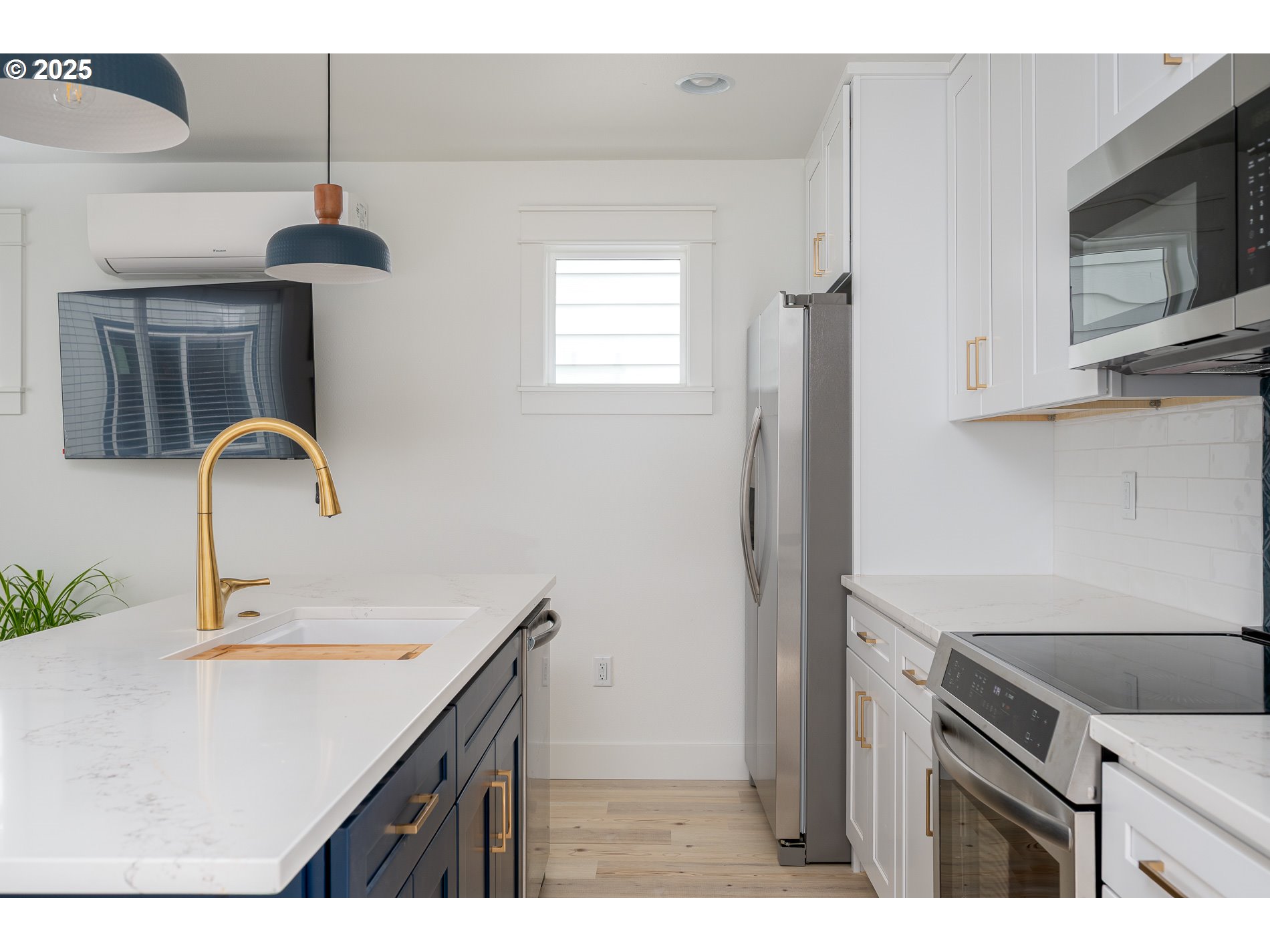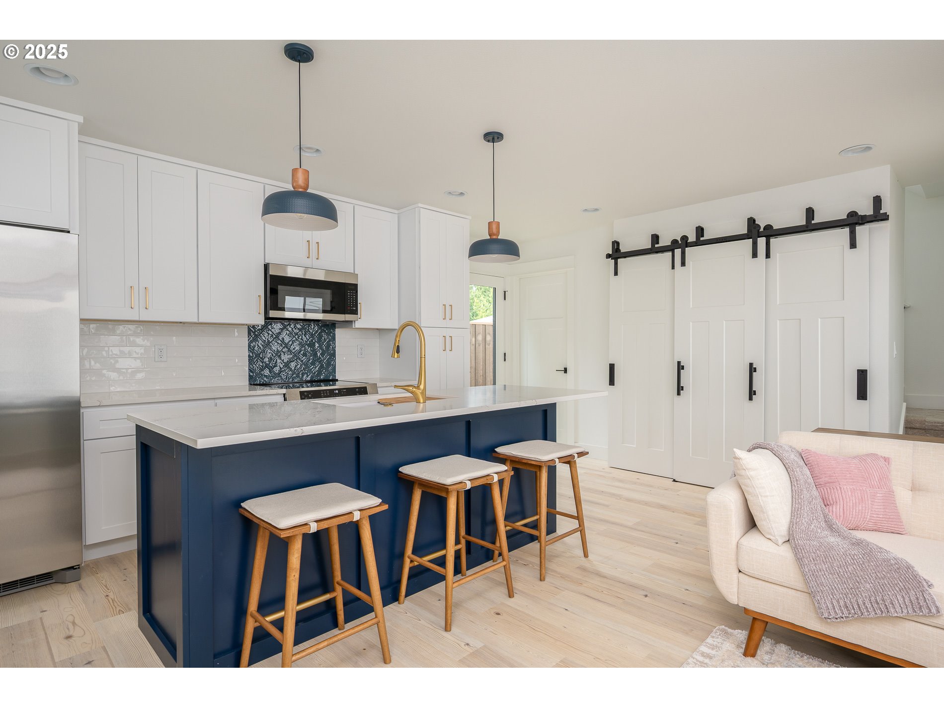Step into style with this brand-new detached condo, offering 816 square feet of beautifully finished living space in a boutique 8-home community. Perfectly sized and thoughtfully designed, this home is big on character and quality. Highlights Include: Airy, open floor plan with a seamless living + kitchen space. Striking blue and white two-toned cabinetry for a fresh, modern feel. Elegant gold fixtures and hardware that add warmth and sophistication. Sleek granite countertops and stainless steel appliances. Durable luxury vinyl plank flooring throughout. Convenient main-level half bath. Upstairs: a bright primary suite, full bathroom, and a second bedroom. Private fenced patio space—perfect for relaxing or entertaining. Includes washer, dryer, and refrigerator. Each home in this newly developed community offers a distinct look and feel—no two are the same! Added Bonus: On-site EV Charging Station. ***** PARKING SPACE INCLUDED WITH THE FIRST 6 SALES*****ZERO DOWN FINANCING AVAILABLE!