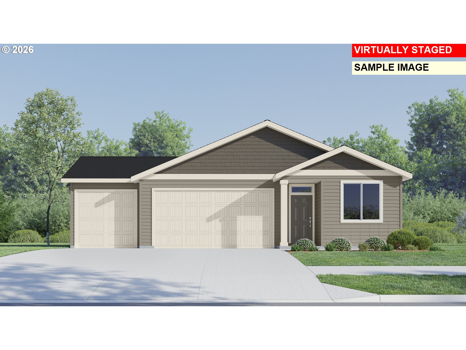 Thoughtfully designed for comfort and modern living, The William at Bonnie Meadows is a new single-story home currently under construction in the desirable Bonnie Meadows community in Estacada, OR. Ideally located near parks, scenic trails, and local amenities, with convenient access to Portland, this thoughtfully designed home blends comfort, style, and functionality. Offering approximately 1,574 square feet of well-planned living space, the home features 3 bedrooms, 2 bathrooms, and a spacious 3-car garage. The open-concept layout creates a natural flow between the kitchen, dining area, and great room, making it perfect for both everyday living and entertaining. The private owner’s suite is tucked toward the back of the home for added tranquility, while two additional bedrooms are positioned near the front, offering flexible space for guests, a home office, or hobbies. Quality finishes throughout include quartz kitchen countertops, stainless steel appliances, luxury vinyl plank flooring, designer trim and colors, and pre-wired connectivity. A covered patio extends the living space outdoors, creating the perfect spot to relax or entertain. Renderings are artist conceptions only. Grand Opening Special - Flex credit/closing cost incentive available when financing with preferred lender! Use towards rate buydown and closing costs. Homesite #41, Estimated completion Summer 2026.