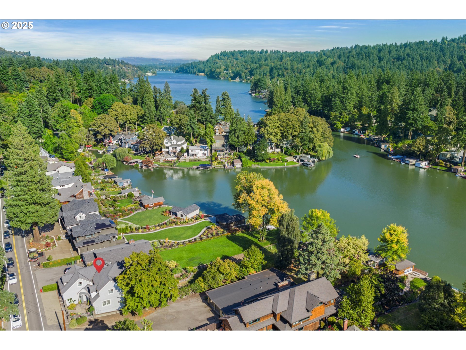 (503) 893-8874An Autumn Oswego Lake opportunity! Located on the calm and serene Oswego Lake's West Bay with commanding southern exposure. This warm and comfortable traditional lives very easily with a flexible floor plan and a large, flat waterfront lot. For the price, this home offers a lot of square footage; large gourmet kitchen with Sub Zero, Viking and Miele appliances, great room, flexible formal or informal dining areas, four gas fireplaces including two enormous wood burning stone fireplaces from the original structure, large main floor multi use office with beautiful built-in bookcases and cabinets. Oversized Owner's Suite with walk in closet, sauna, vaulted ceilings, fire place, patio and optional gym or office area; recreation room with walk in wine cellar, 2 guest rooms and a potting room or flexible space with a roll up door to access the back yard. Long, level, backyard, raised garden beds, waterfront patio and boat house. Live that Lake Life all year long! This home provides close proximity to Zupan's, a variety of restaurants, coffee shops and services.