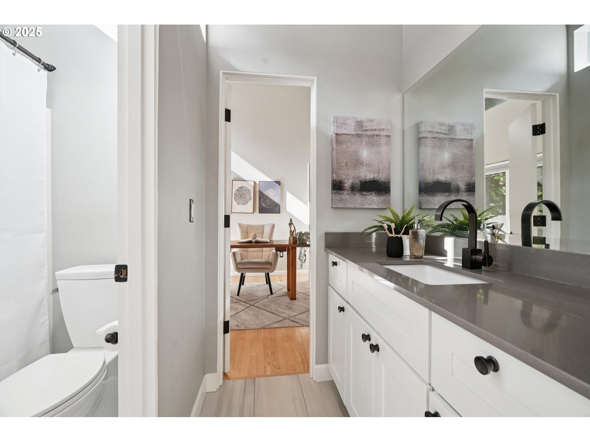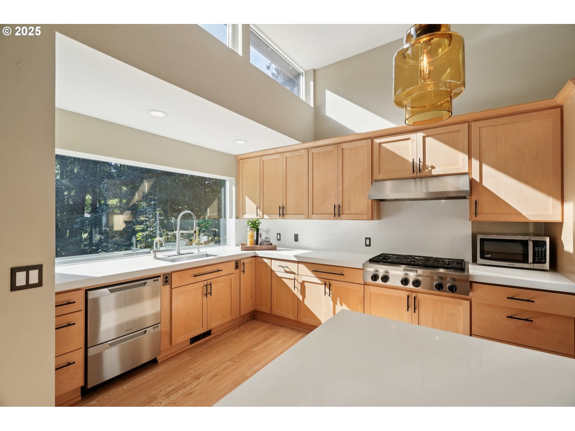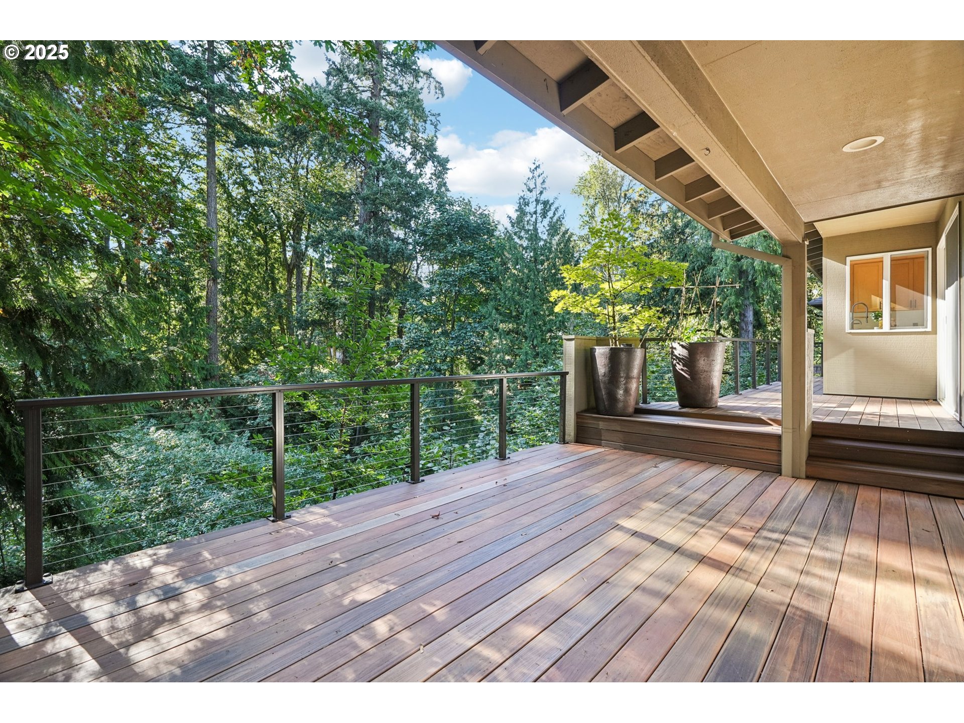 Main-level living light filled home with a daylight basement! This exquisite contemporary home sits on a private, wooded half-acre and welcomes you with a private gated courtyard entrance. Inside you’ll find hardwood floors, soaring 12-foot ceilings, and walls of windows that flood the home with natural light. Sliding doors on both sides of the sunken living room open seamlessly to a TimberTech deck that spans the length of the home, offering sweeping views of the surrounding trees and effortless indoor-outdoor living. The open chef’s kitchen features a quartz island with built-in wine cooler, professional-grade appliances, and a walk-in pantry, all overlooking the tree-lined backyard. The luxurious primary suite offers its own gas fireplace, double closets plus a walk-in, a spa-inspired ensuite with custom cabinetry and stone step-in shower, and direct deck access to surrounding greenery. Enjoy the uninterrupted view with sliding doors in each bedroom, plus automatic blinds in every room. Downstairs, the daylight, fully finished basement includes an expansive media room, family room, and climate-controlled wine cellar. Outside, manicured gardens, a tranquil water feature, and sophisticated exterior lighting elevate the serene setting. Located minutes from top-rated schools, parks, and amenities, this home blends tranquility, privacy, and nature— an entertainer’s dream and a true West Linn gem.
