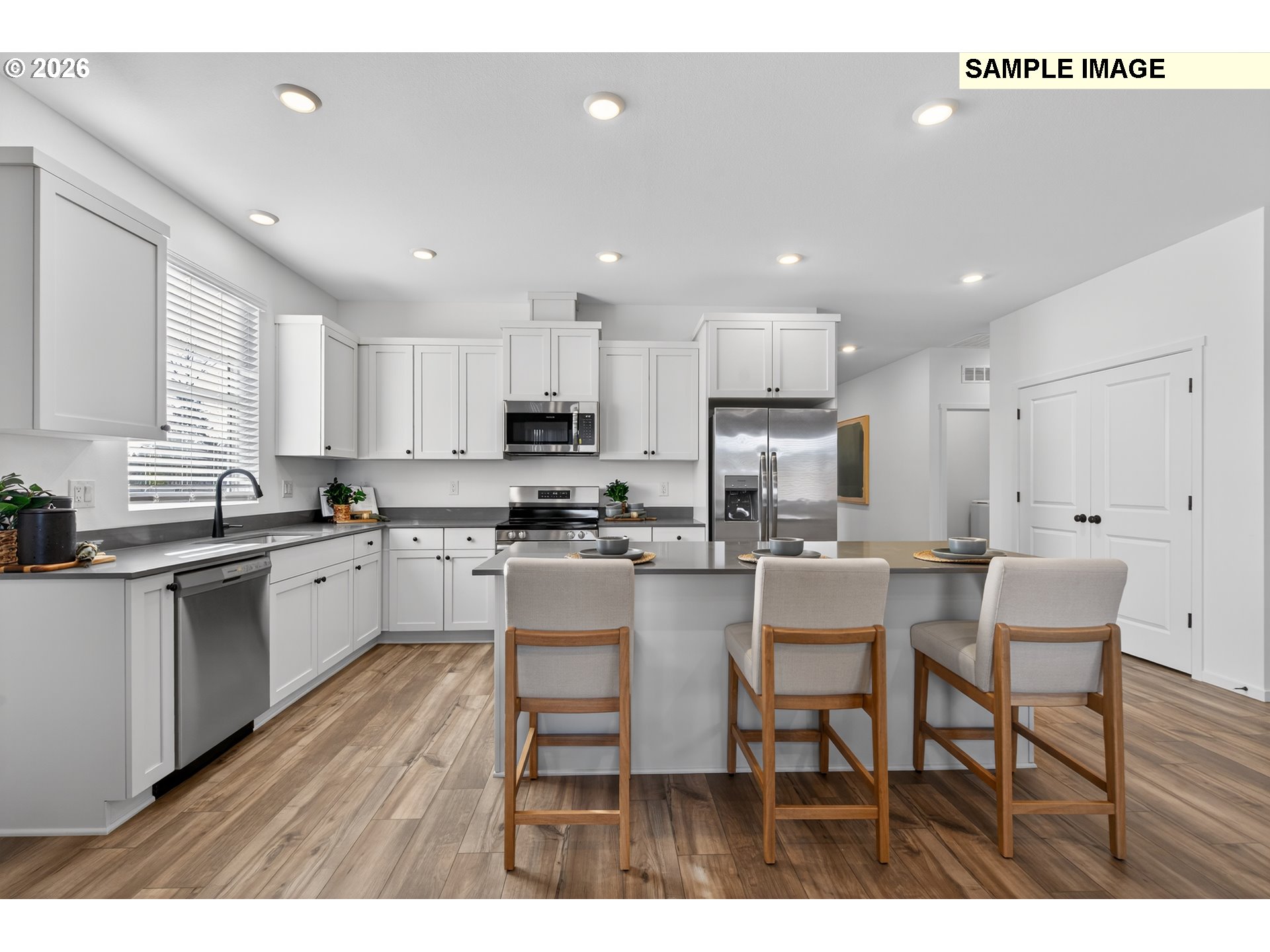 Welcome to the brand-new Everett floorplan by Lennar in the highly anticipated Bonnie Meadows community in Estacada—where modern comfort, thoughtful design and everyday functionality come together in one beautifully crafted single-story home. Step inside this beautifully designed home of thoughtfully crafted living space. The open-concept layout seamlessly connects the great room, dining area and kitchen—creating the perfect setting for both daily living and entertaining. The kitchen shines with quartz countertops complemented by a full stainless steel appliance package that includes a refrigerator, along with elegant finishes designed for both style and convenience. Designer-selected features enhance the home throughout, including luxury vinyl plank flooring in the main living areas, plush designer carpet in the bedrooms, horizontal faux wood blinds and coordinated exterior color schemes for added curb appeal. The private owner’s suite offers a relaxing retreat with its own ensuite bath, while three additional bedrooms provide flexibility for guests, hobbies or a home office. A spacious two-car garage adds everyday practicality and ample storage. Enjoy indoor-outdoor living with a patio just off the main living space—ideal for morning coffee or evening gatherings. Located in serene Estacada with easy access to outdoor recreation, nearby amenities and urban conveniences, Bonnie Meadows offers a peaceful lifestyle without sacrificing convenience. Homes with this level of style and value are in high demand—schedule your tour before it’s gone! Front photo is an artist's rendering. Interior photos are of a similar/model home - finishes & features may vary. Homesite #50, estimated Summer completion. Grand opening special - Flex credit/closing cost incentive available when financing with preferred lender! Use towards rate buydown and closing costs.